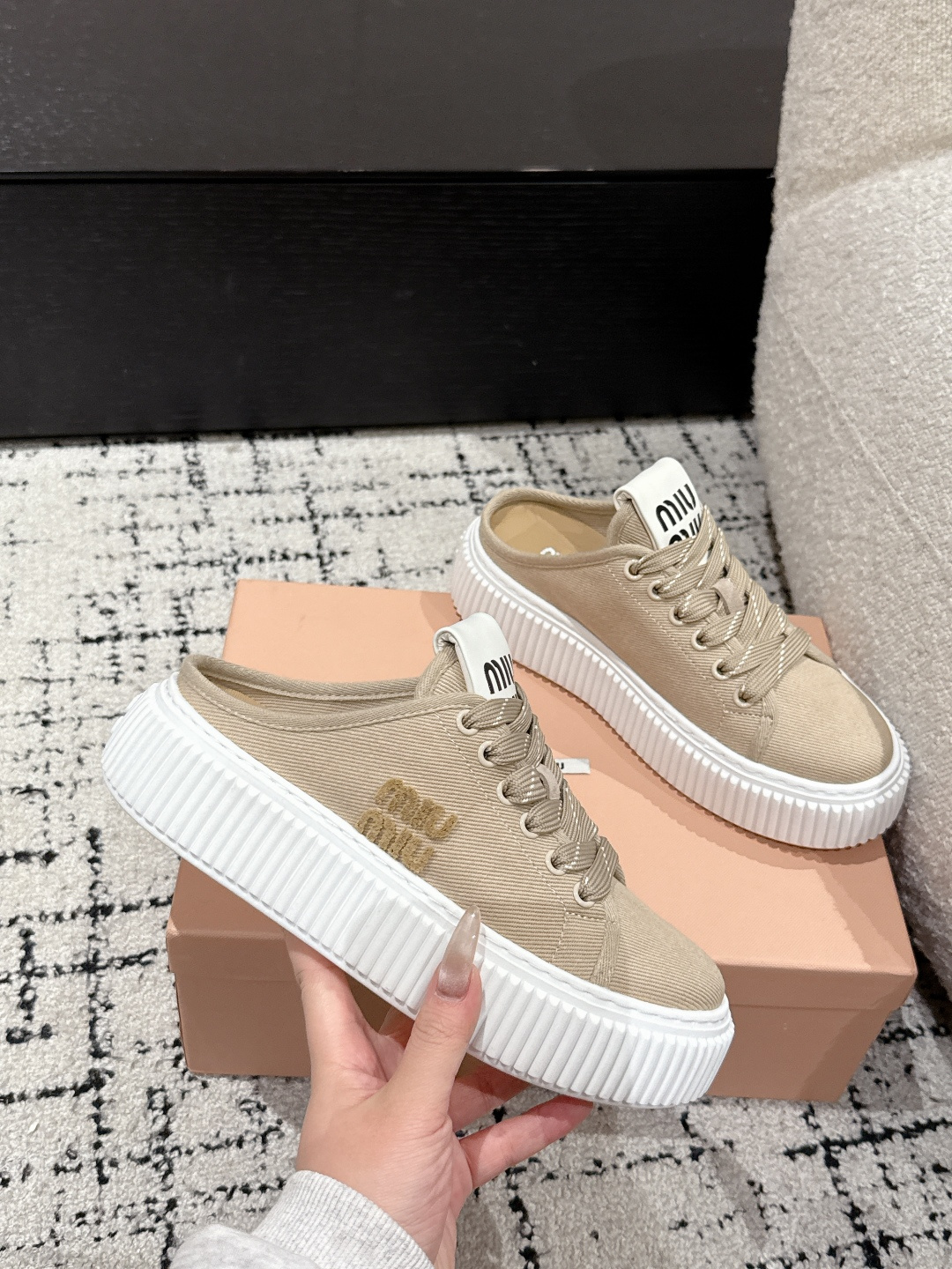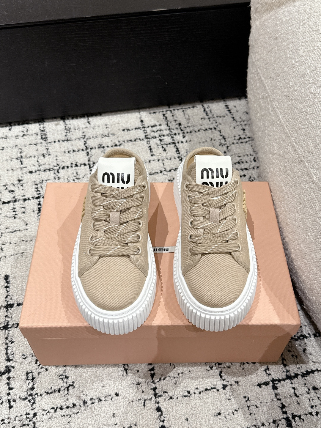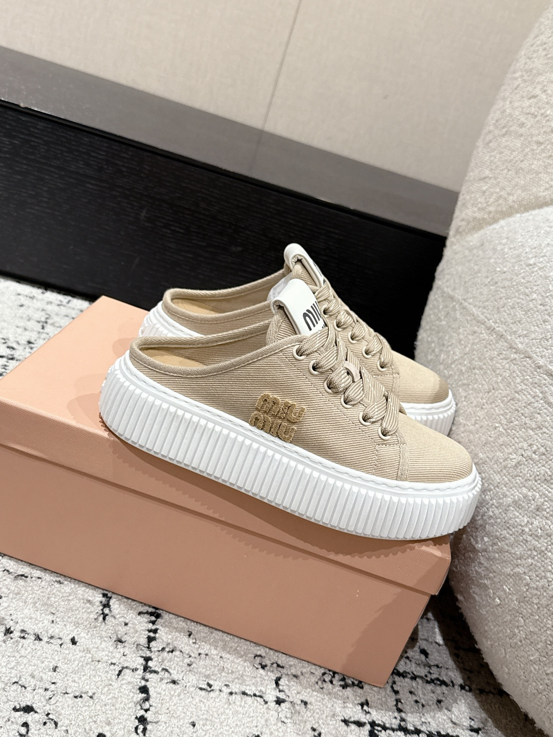 这款鞋子是AAAAA 1:1 质量 (非常棒). 使用了和原版一模一样的材料. 商标部分也保持了和缪缪/Miu Miu一样. 图片拍摄是实物鞋子拍摄, 您所收到的实物保证和我们图片一模一样.