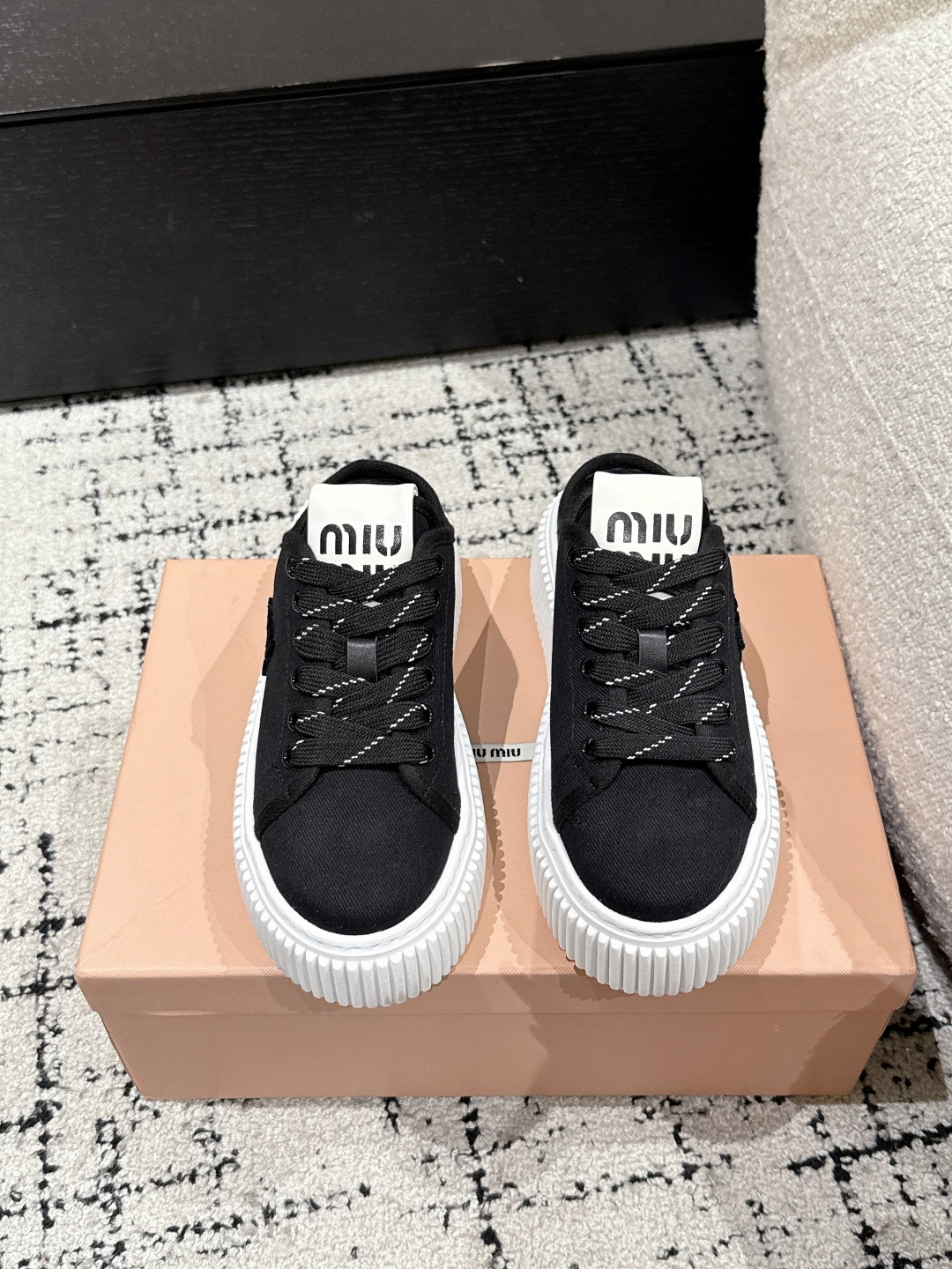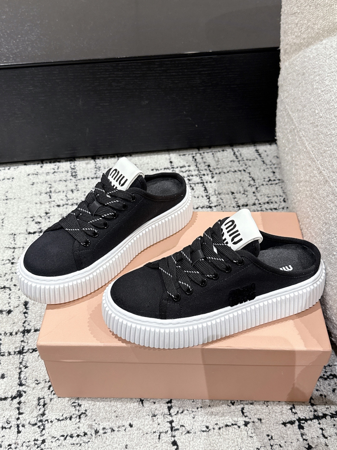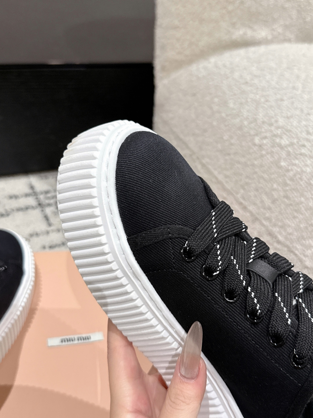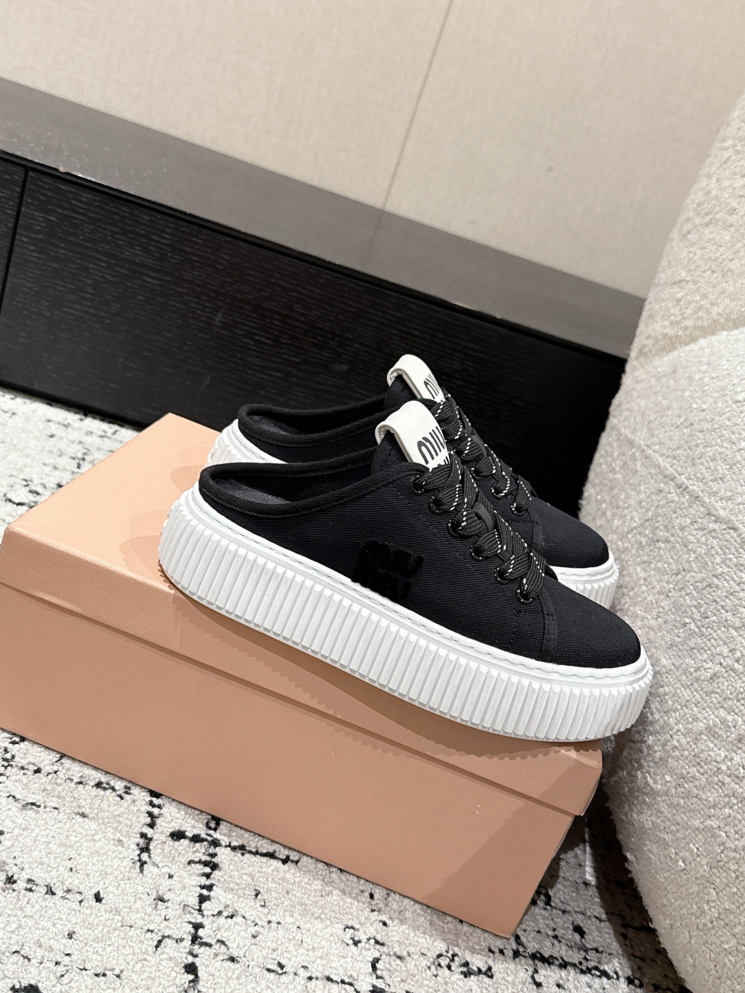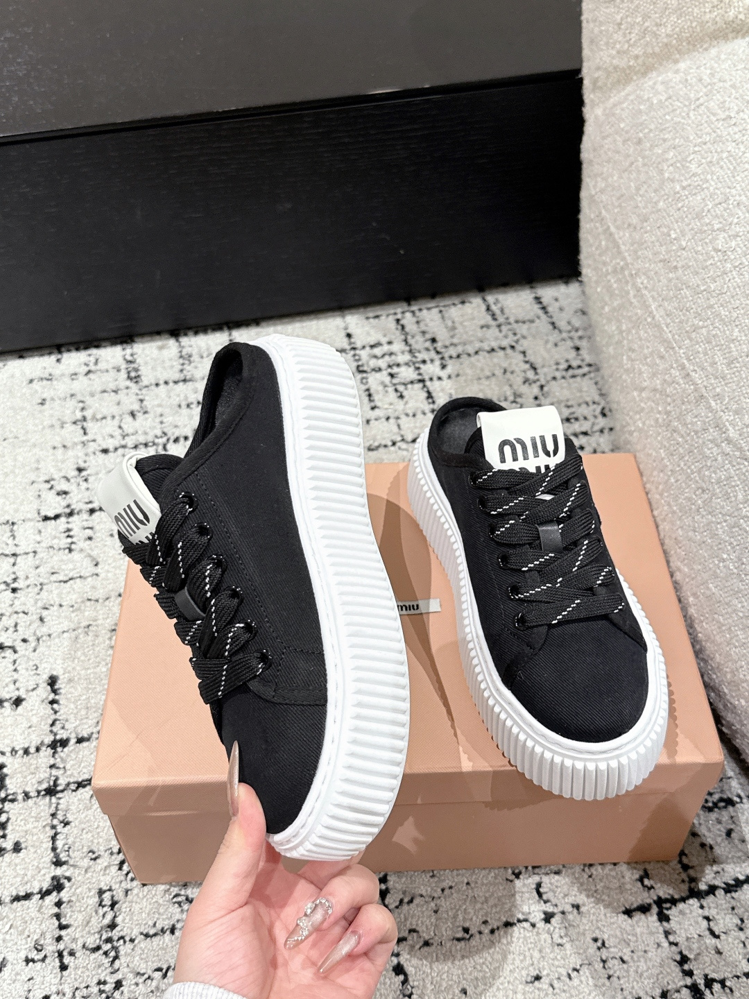 这款鞋子是AAAAA 1:1 质量 (非常棒). 使用了和原版一模一样的材料. 商标部分也保持了和缪缪/Miu Miu一样. 图片拍摄是实物鞋子拍摄, 您所收到的实物保证和我们图片一模一样.
