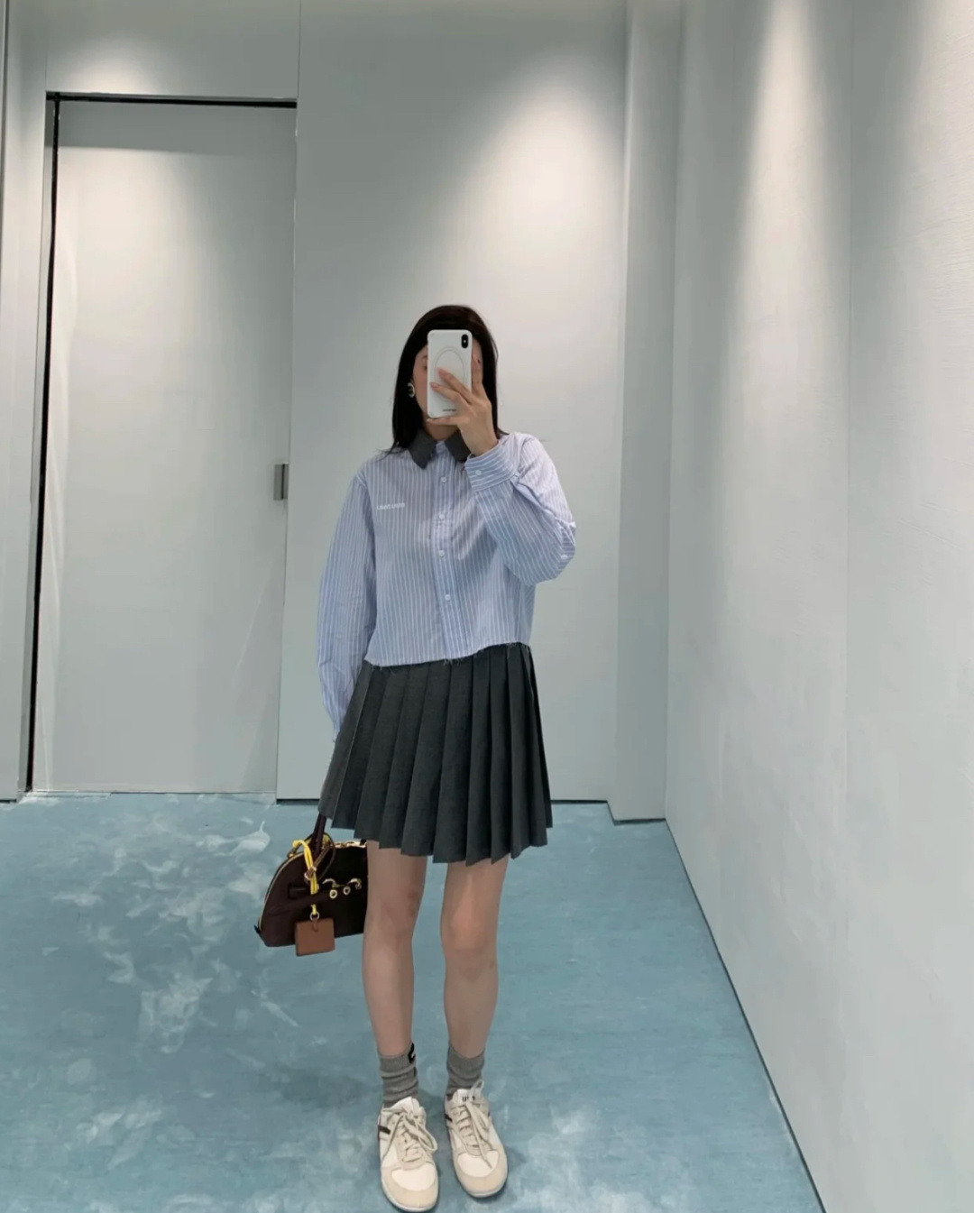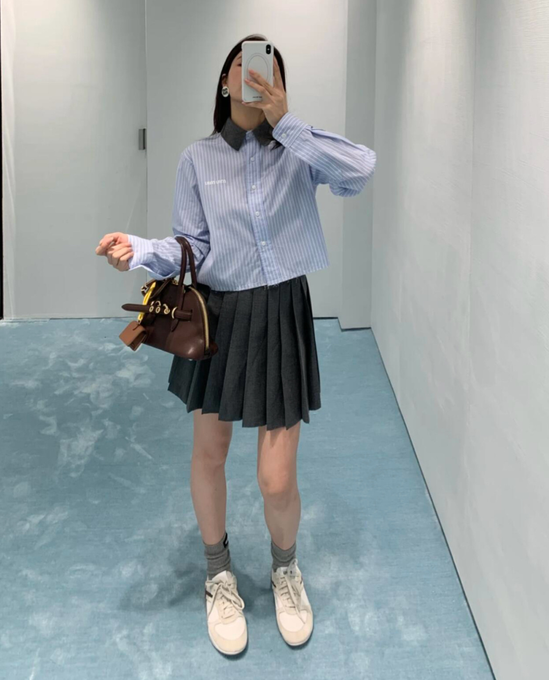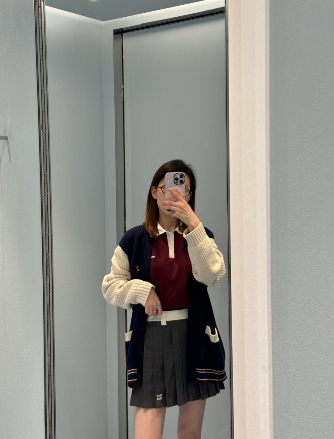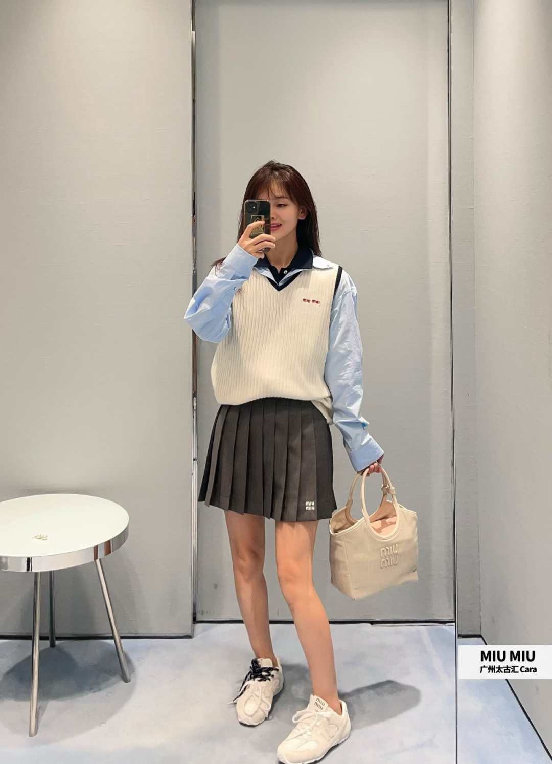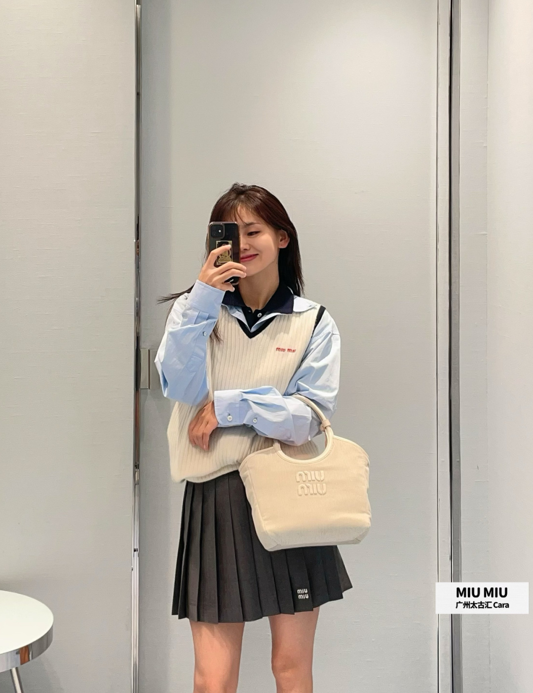 这款衣服是AAAAA 1:1 质量 (非常棒). 使用了和原版一模一样的材料. 商标部分也保持了和缪缪/Miu Miu一样. 图片拍摄是实物衣服拍摄, 您所收到的实物保证和我们图片一模一样.