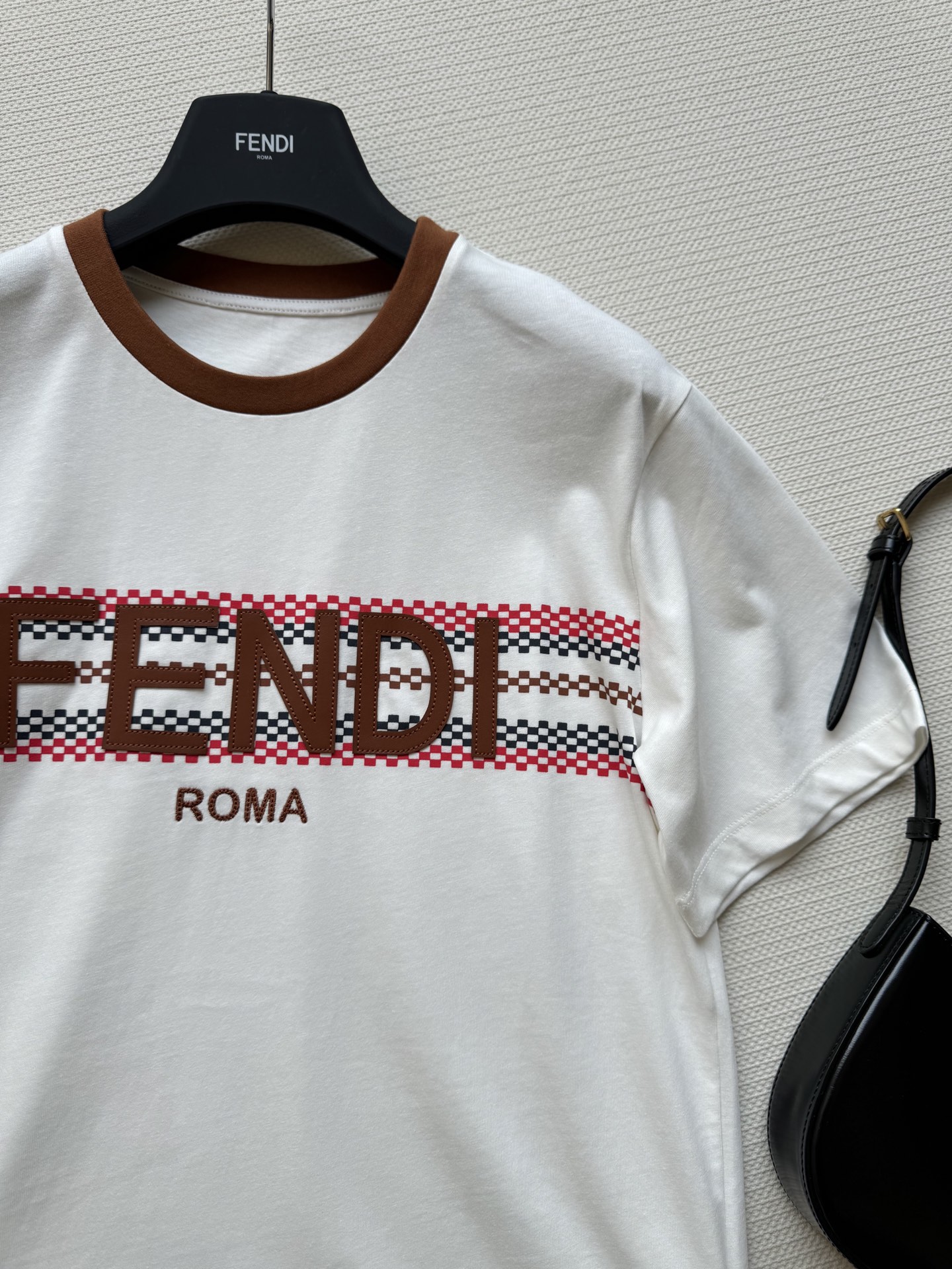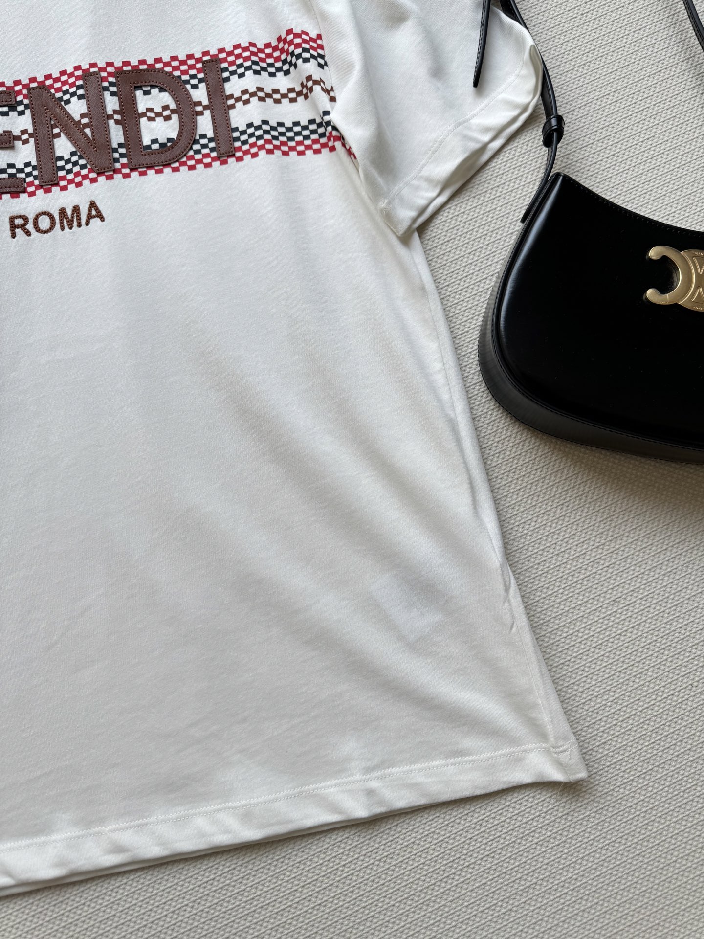 这款衣服是AAAAA 1:1 质量 (非常棒). 使用了和原版一模一样的材料. 商标部分也保持了和芬迪/Fendi一样. 图片拍摄是实物衣服拍摄, 您所收到的实物保证和我们图片一模一样.