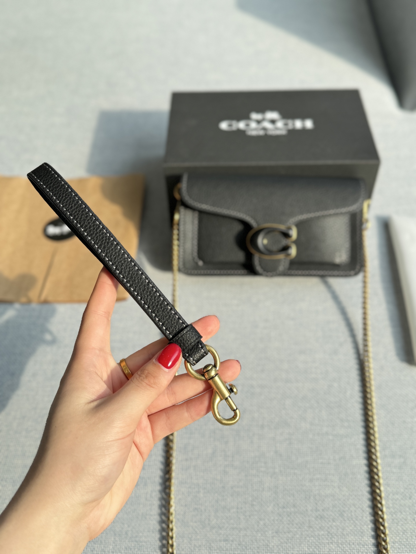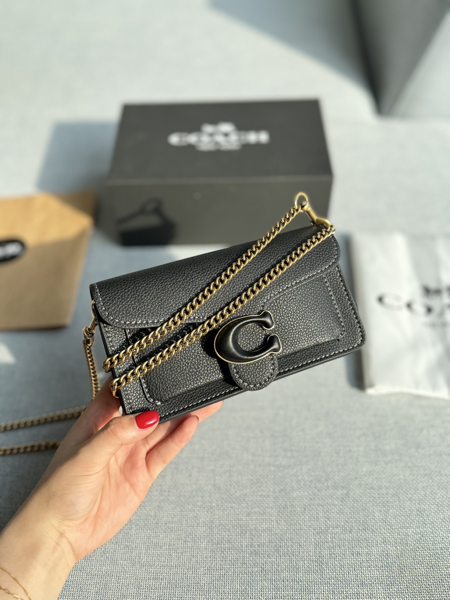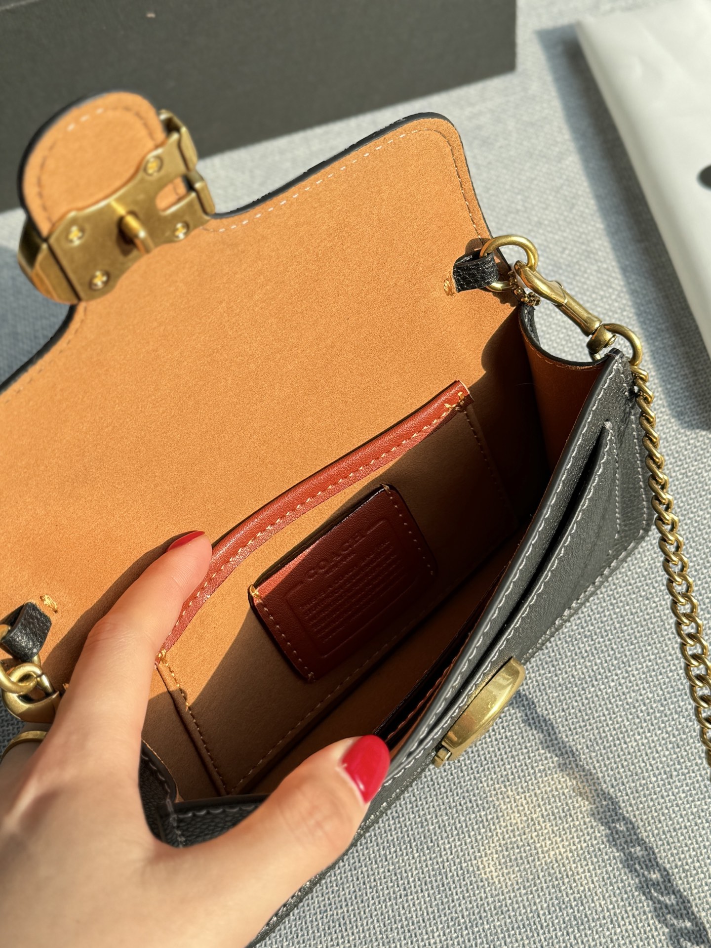 这款包包是AAAAA 1:1 质量 (非常棒). 使用了和原版一模一样的材料. 商标部分也保持了和蔻驰/Coach一样. 图片拍摄是实物包包拍摄, 您所收到的实物保证和我们图片一模一样.