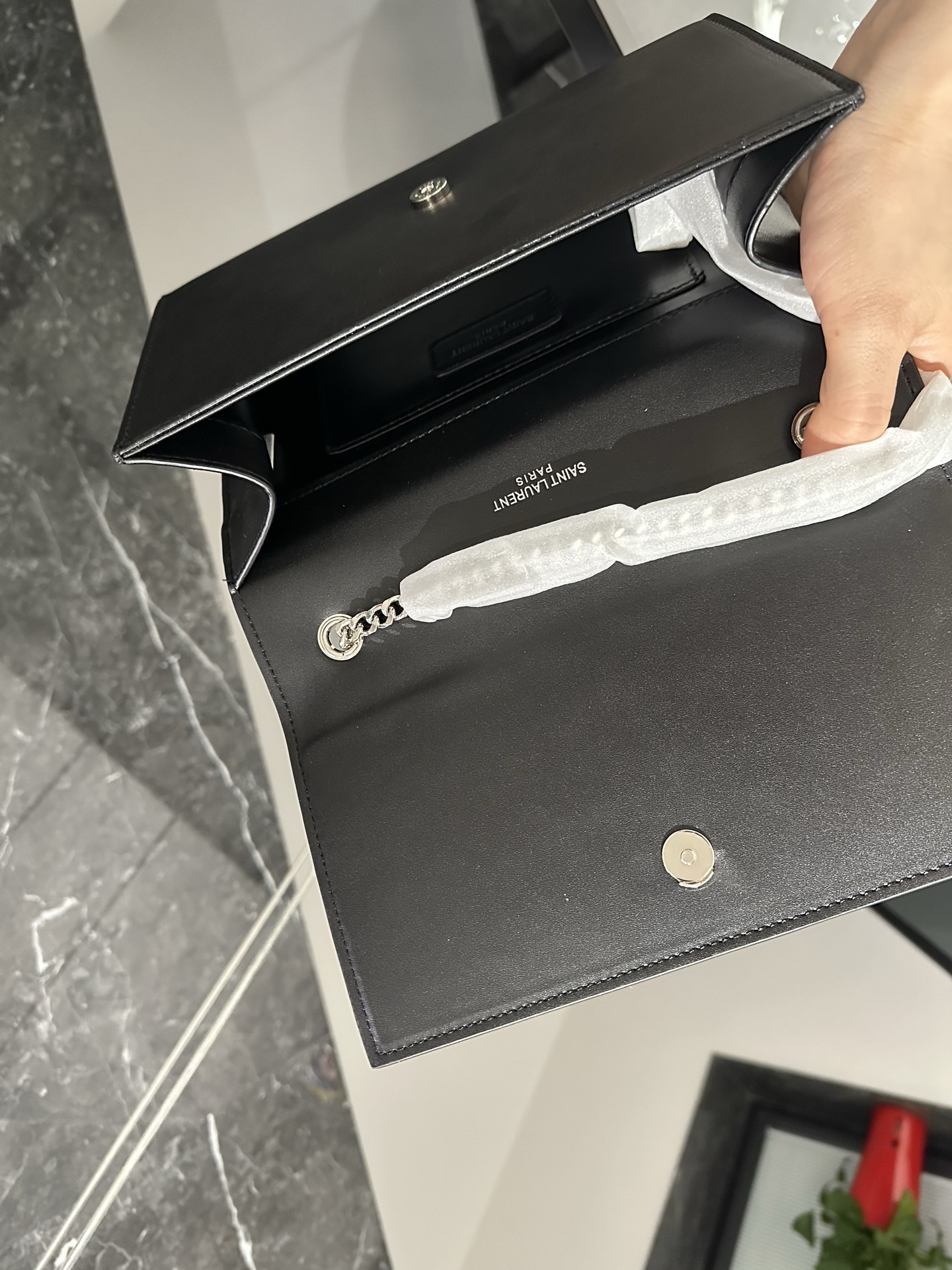 这款鞋子是AAAAA 1:1 质量 (非常棒). 使用了和原版一模一样的材料. 商标部分也保持了和圣罗兰/Saint Laurent一样. 图片拍摄是实物鞋子拍摄, 您所收到的实物保证和我们图片一模一样.