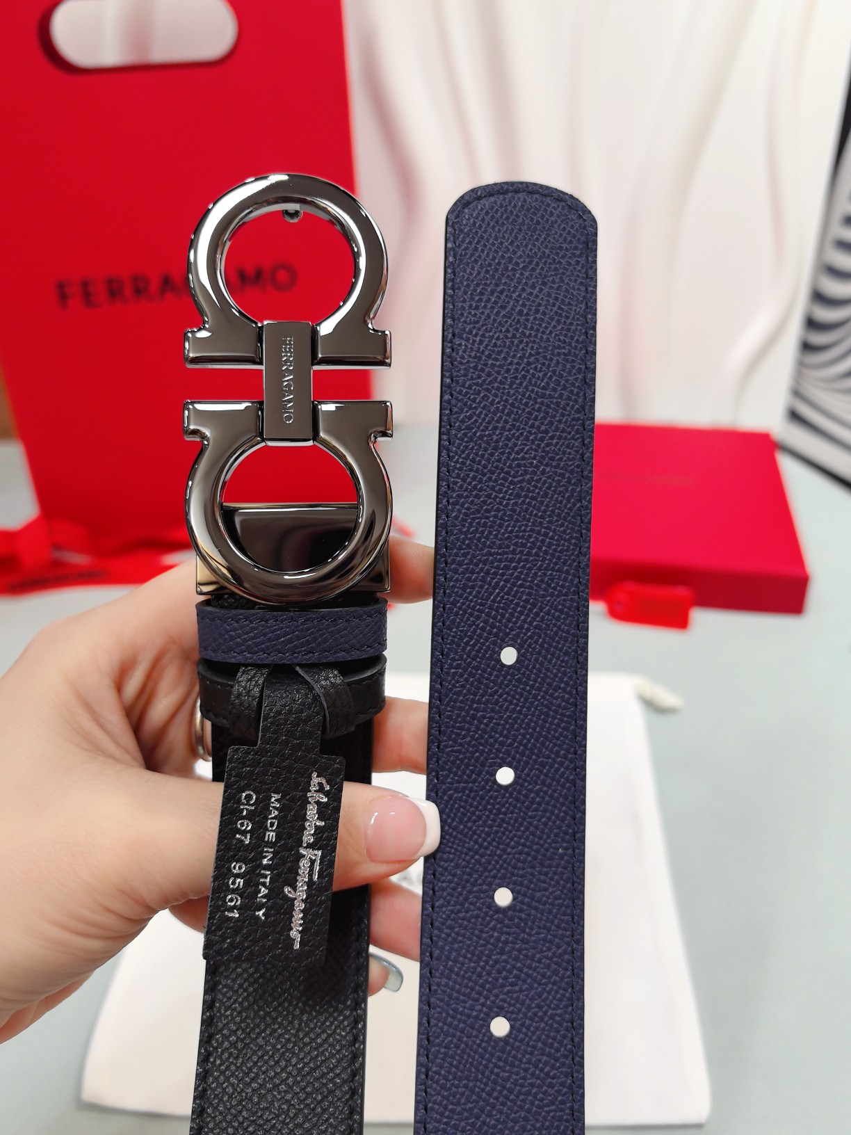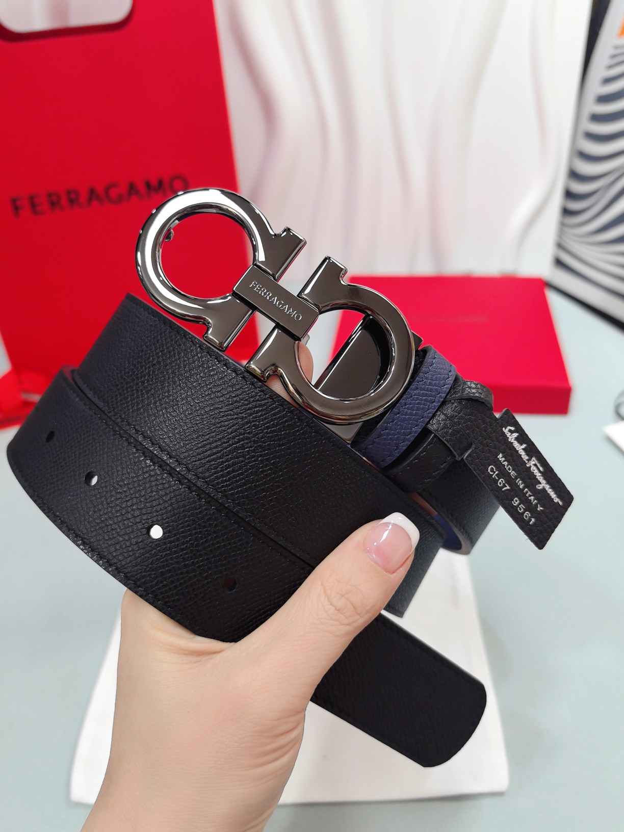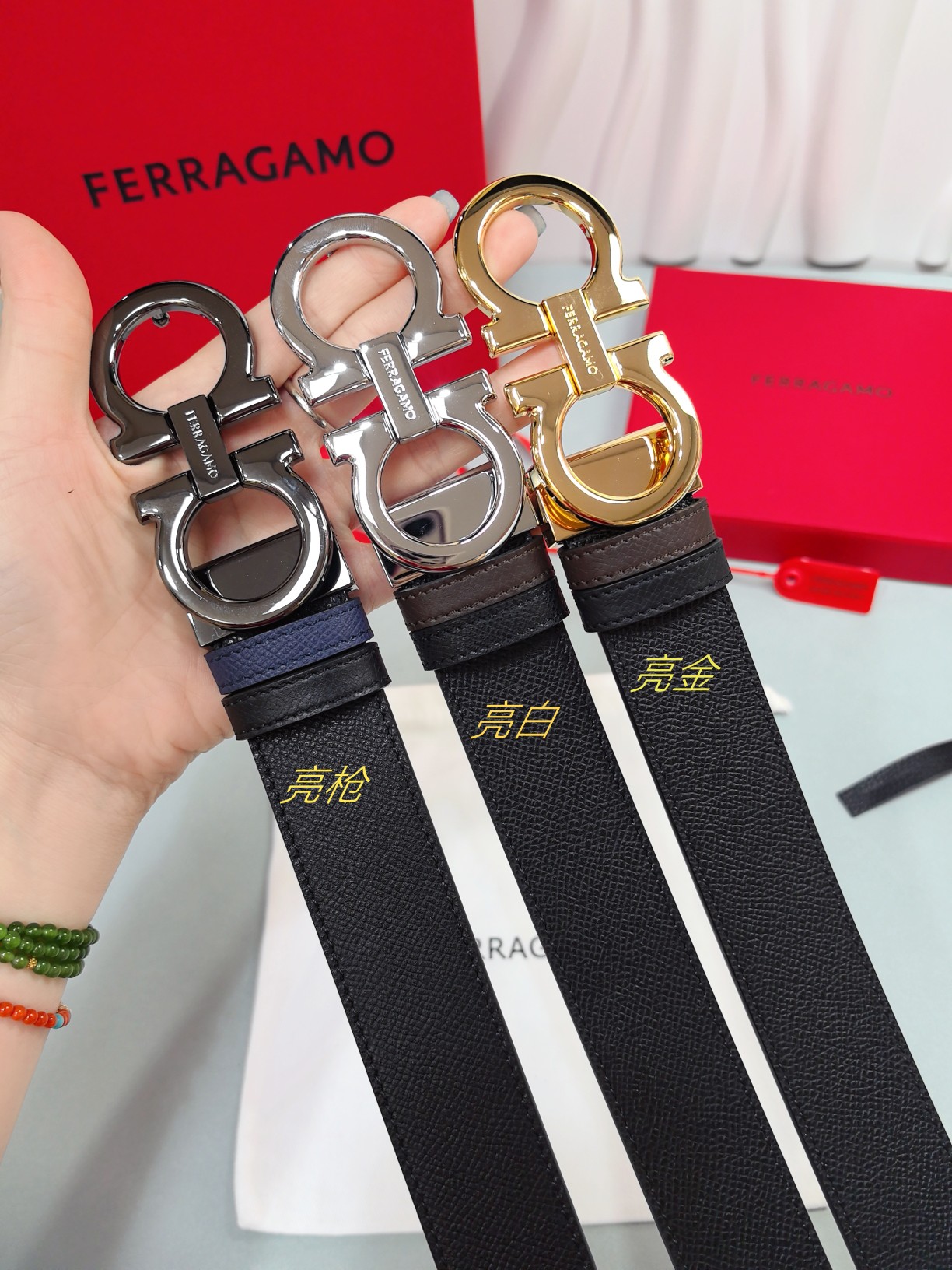 这款皮带是AAAAA 1:1 质量 (非常棒). 使用了和原版一模一样的材料. 商标部分也保持了和菲拉格慕/Salvatore Ferragamo一样. 图片拍摄是实物皮带拍摄, 您所收到的实物保证和我们图片一模一样.
