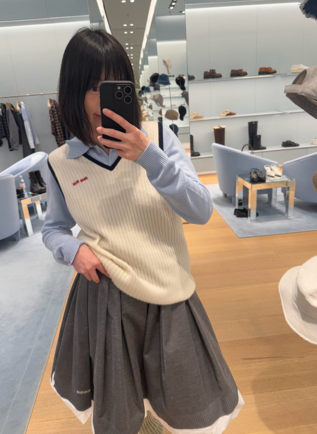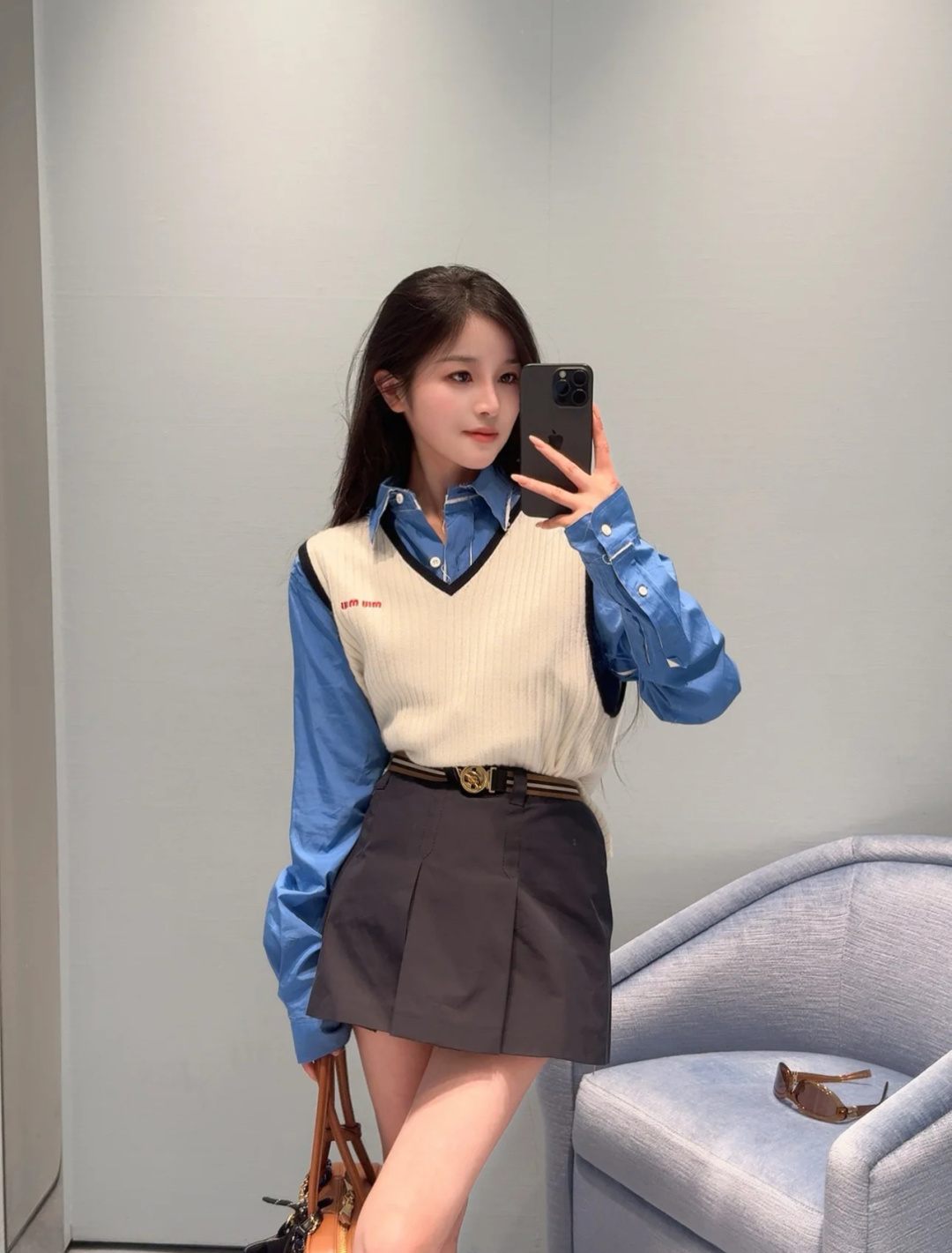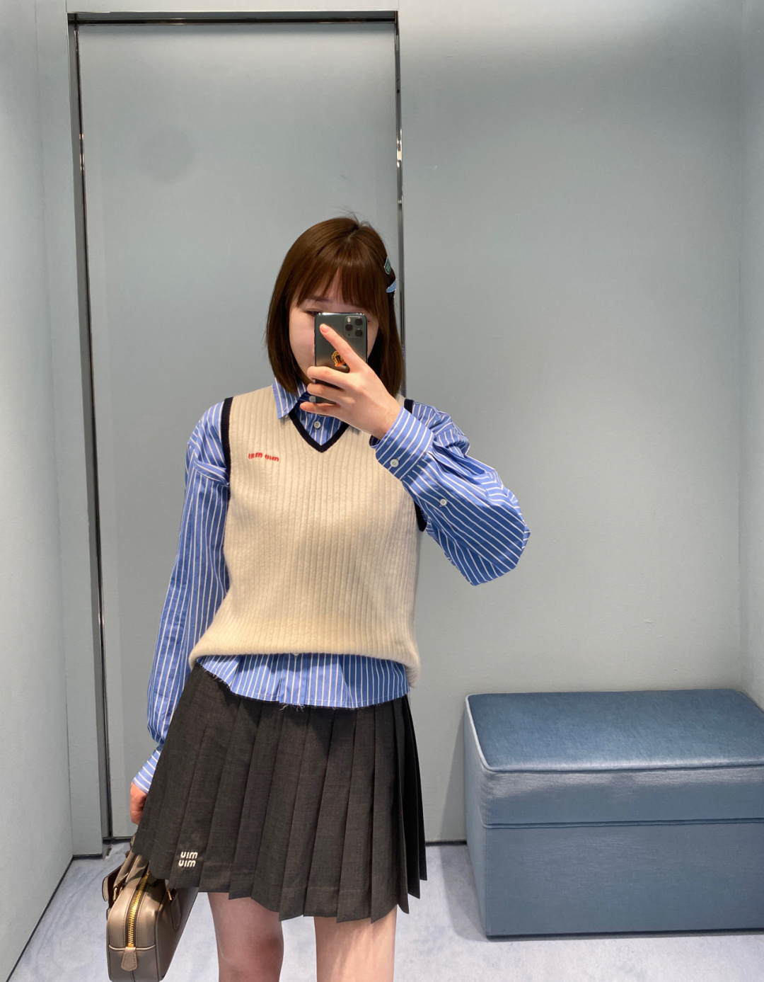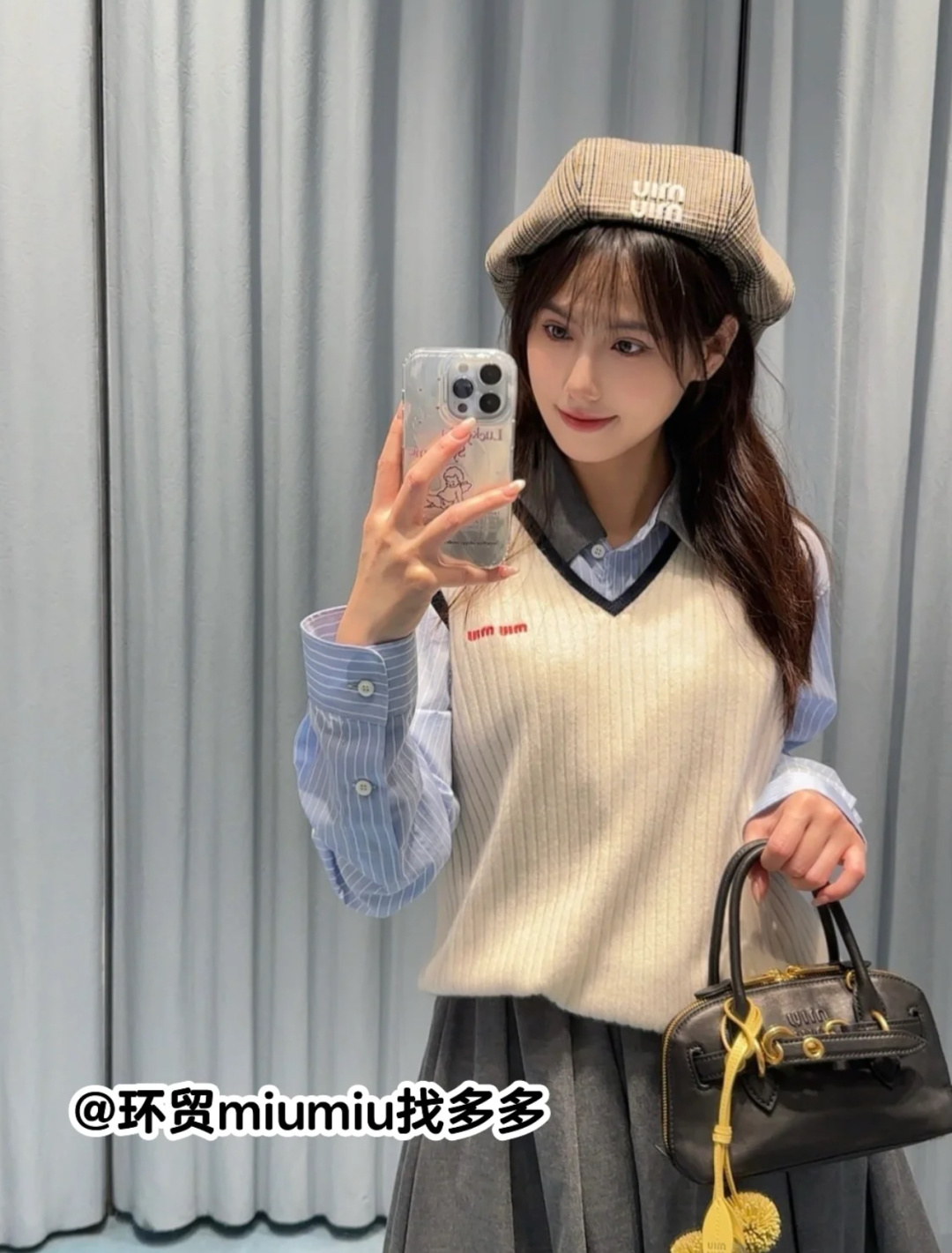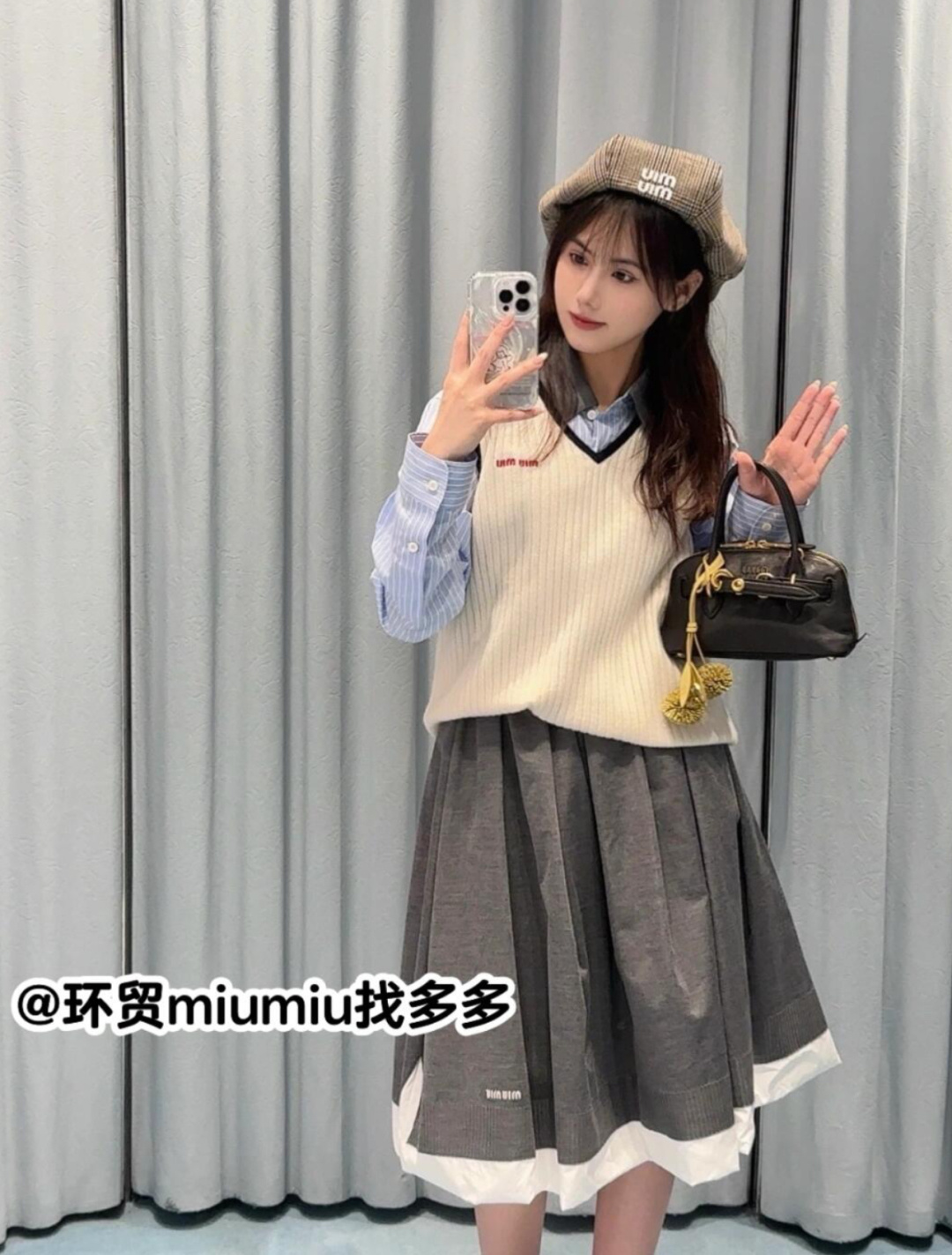 这款衣服是AAAAA 1:1 质量 (非常棒). 使用了和原版一模一样的材料. 商标部分也保持了和缪缪/Miu Miu一样. 图片拍摄是实物衣服拍摄, 您所收到的实物保证和我们图片一模一样.