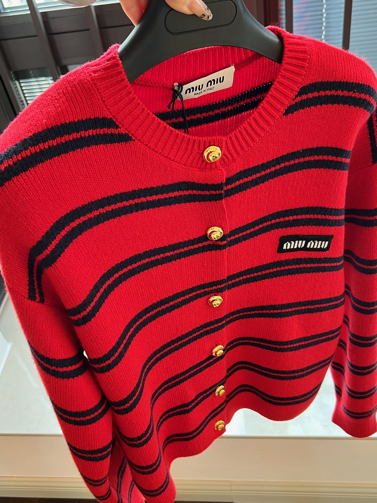 这款衣服是AAAAA 1:1 质量 (非常棒). 使用了和原版一模一样的材料. 商标部分也保持了和缪缪/Miu Miu一样. 图片拍摄是实物衣服拍摄, 您所收到的实物保证和我们图片一模一样.