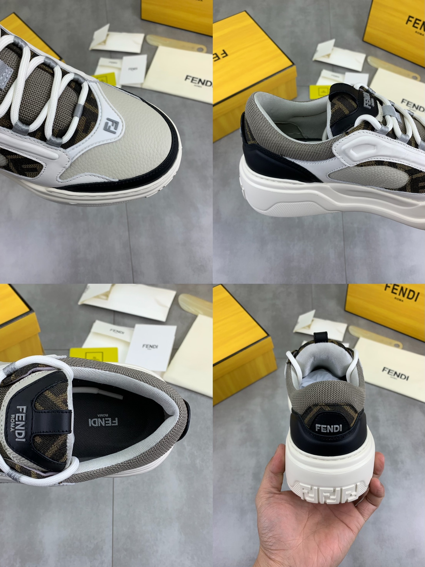这款鞋子是AAAAA 1:1 质量 (非常棒). 使用了和原版一模一样的材料. 商标部分也保持了和芬迪/Fendi一样. 图片拍摄是实物鞋子拍摄, 您所收到的实物保证和我们图片一模一样.