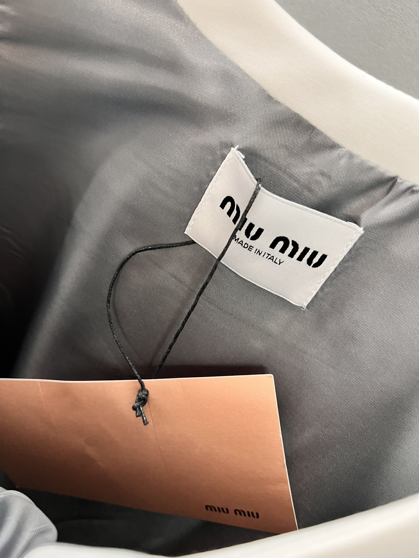 这款衣服是AAAAA 1:1 质量 (非常棒). 使用了和原版一模一样的材料. 商标部分也保持了和缪缪/Miu Miu一样. 图片拍摄是实物衣服拍摄, 您所收到的实物保证和我们图片一模一样.