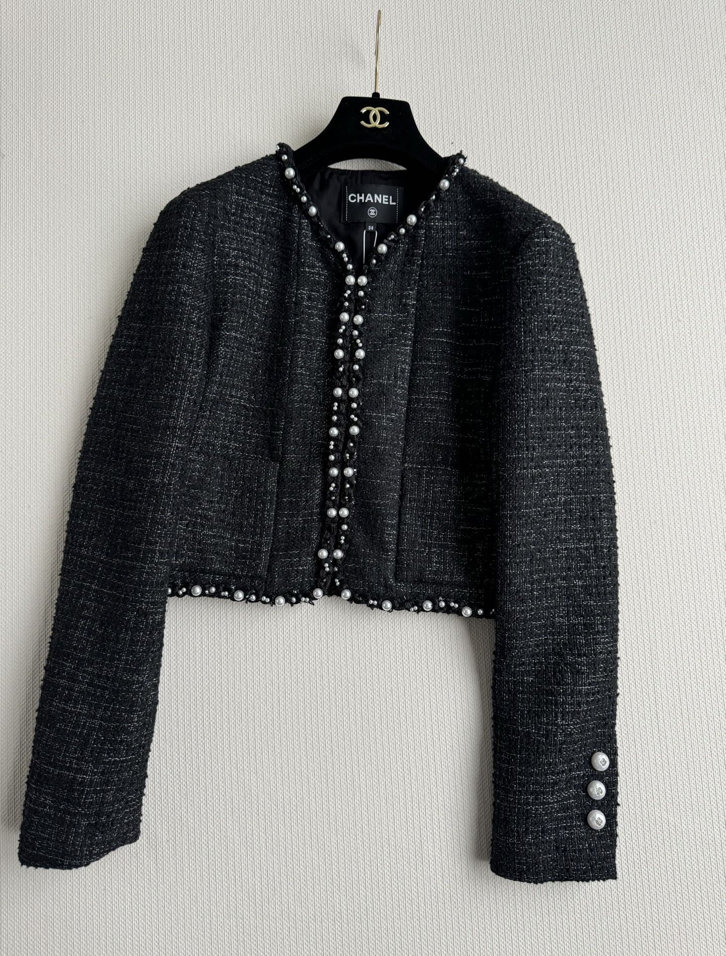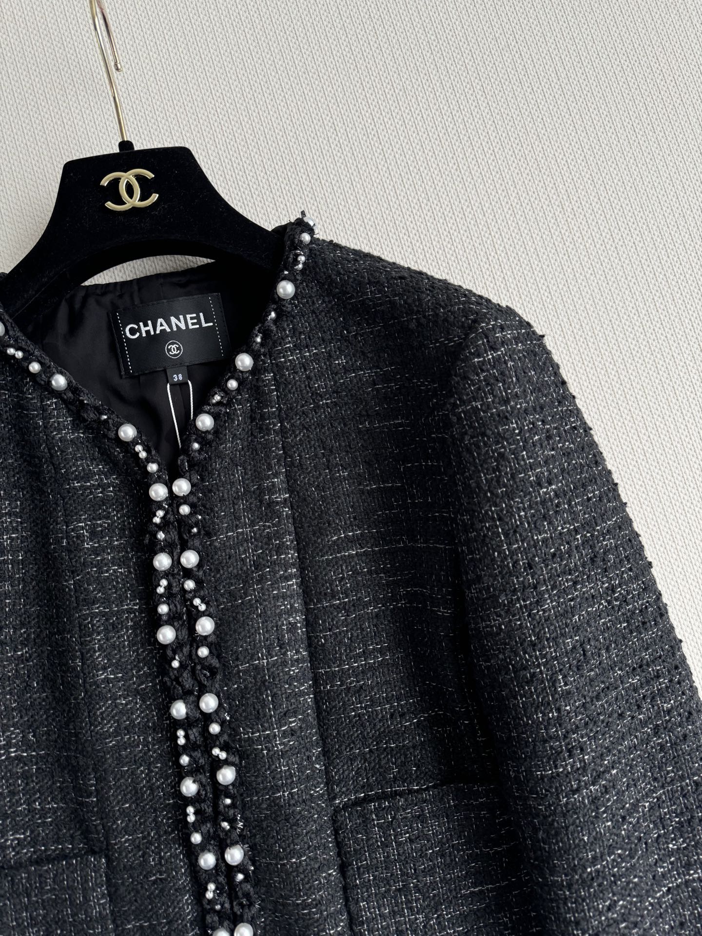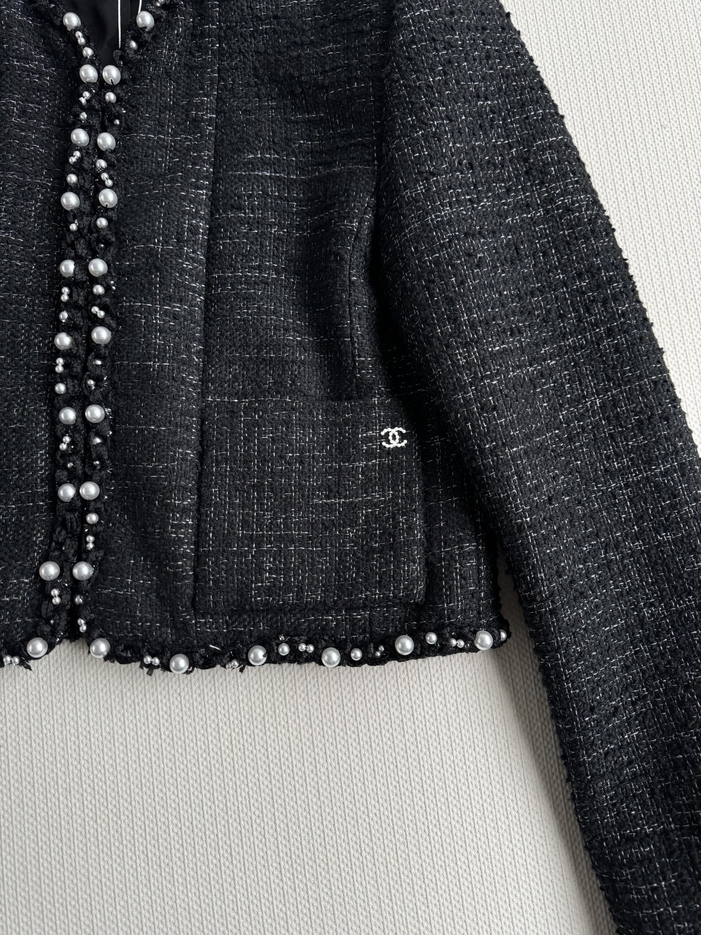 这款衣服是AAAAA 1:1 质量 (非常棒). 使用了和原版一模一样的材料. 商标部分也保持了和香奈儿/Chanel一样. 图片拍摄是实物衣服拍摄, 您所收到的实物保证和我们图片一模一样.