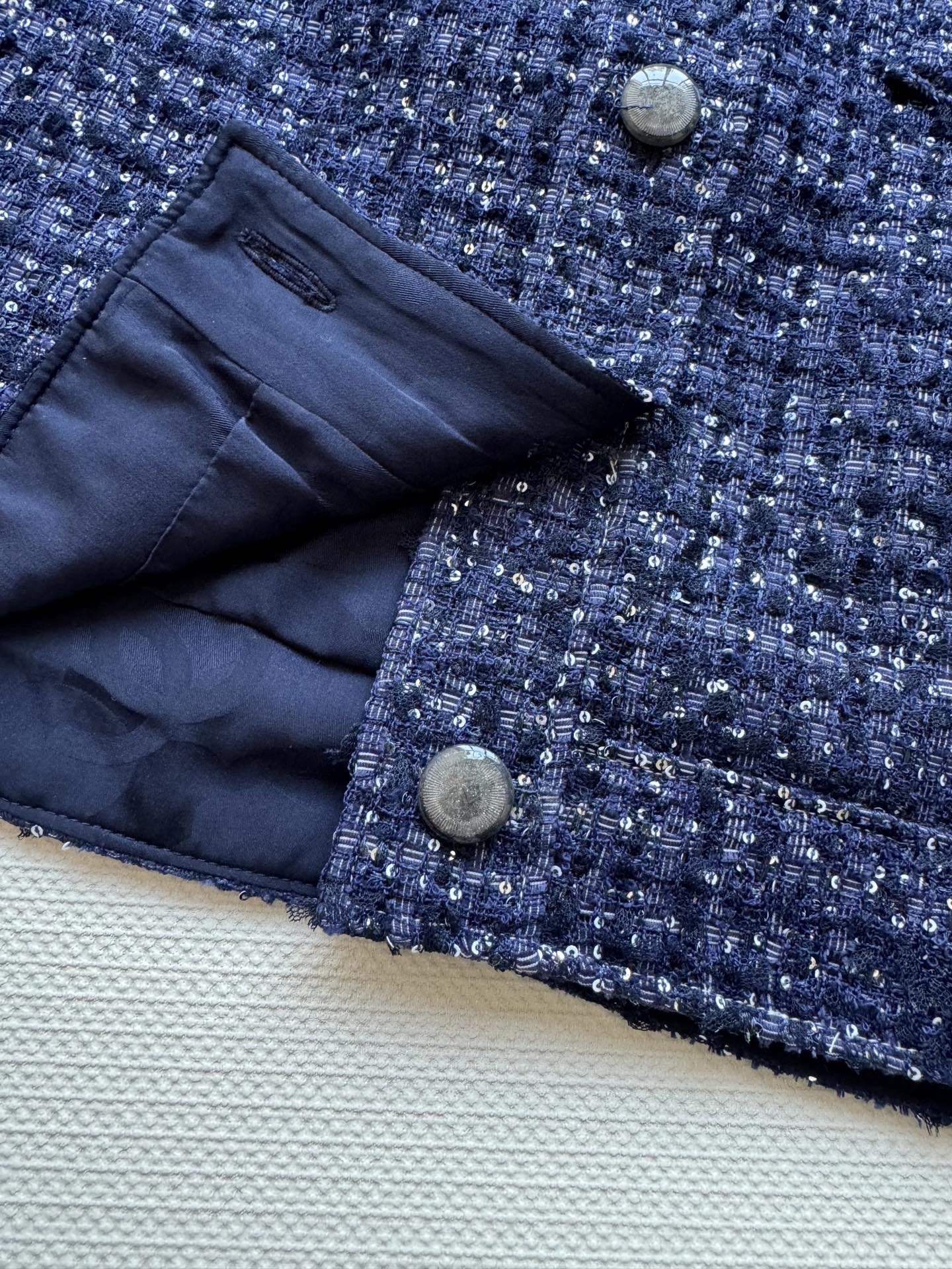 这款衣服是AAAAA 1:1 质量 (非常棒). 使用了和原版一模一样的材料. 商标部分也保持了和香奈儿/Chanel一样. 图片拍摄是实物衣服拍摄, 您所收到的实物保证和我们图片一模一样.