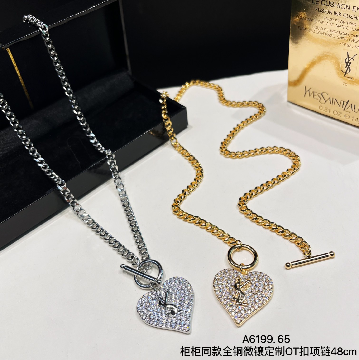 这款首饰是AAAAA 1:1 质量 (非常棒). 使用了和原版一模一样的材料. 商标部分也保持了和圣罗兰/Saint Laurent一样. 图片拍摄是实物首饰拍摄, 您所收到的实物保证和我们图片一模一样.