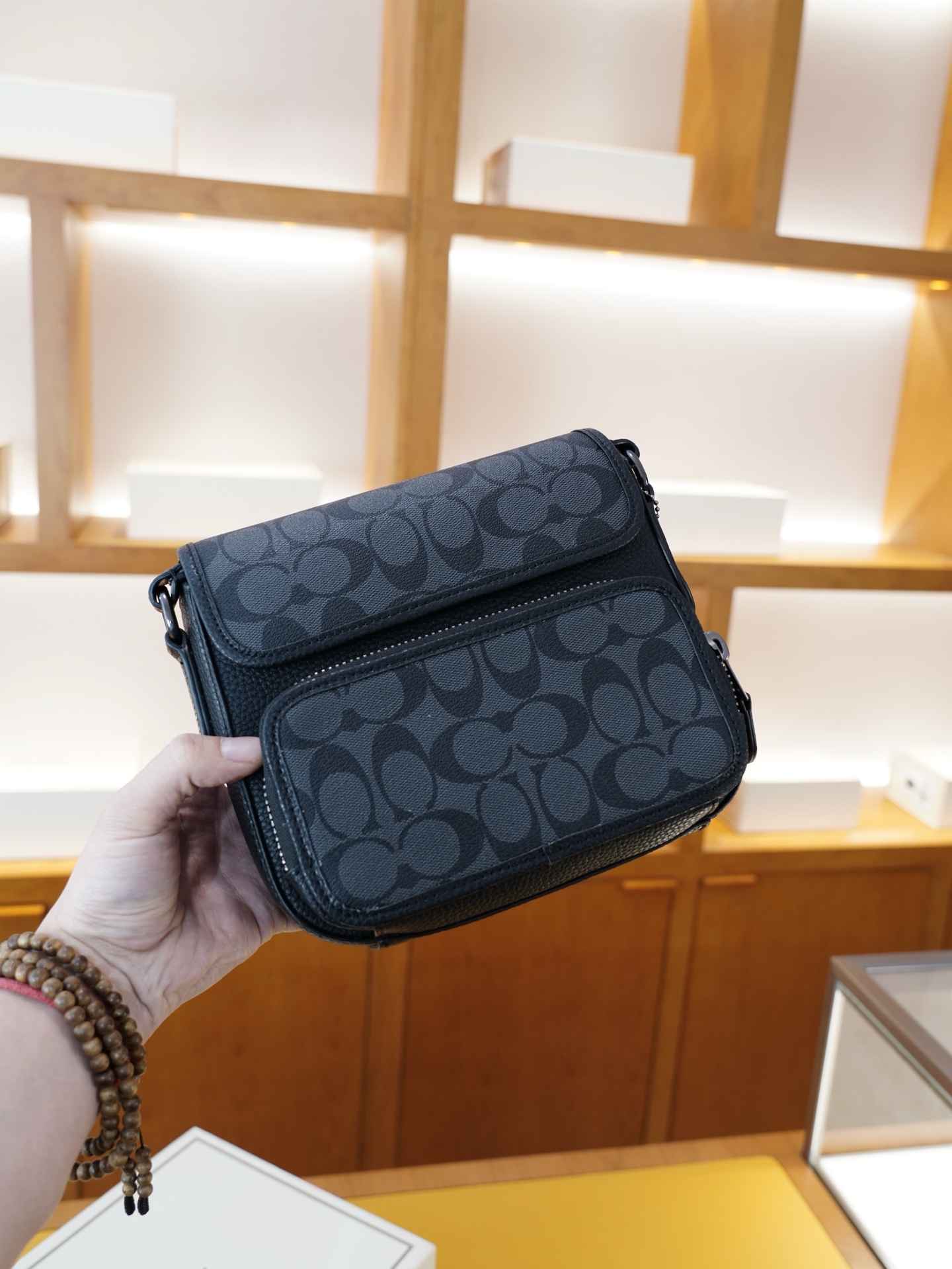 这款包包是AAAAA 1:1 质量 (非常棒). 使用了和原版一模一样的材料. 商标部分也保持了和蔻驰/Coach一样. 图片拍摄是实物包包拍摄, 您所收到的实物保证和我们图片一模一样.