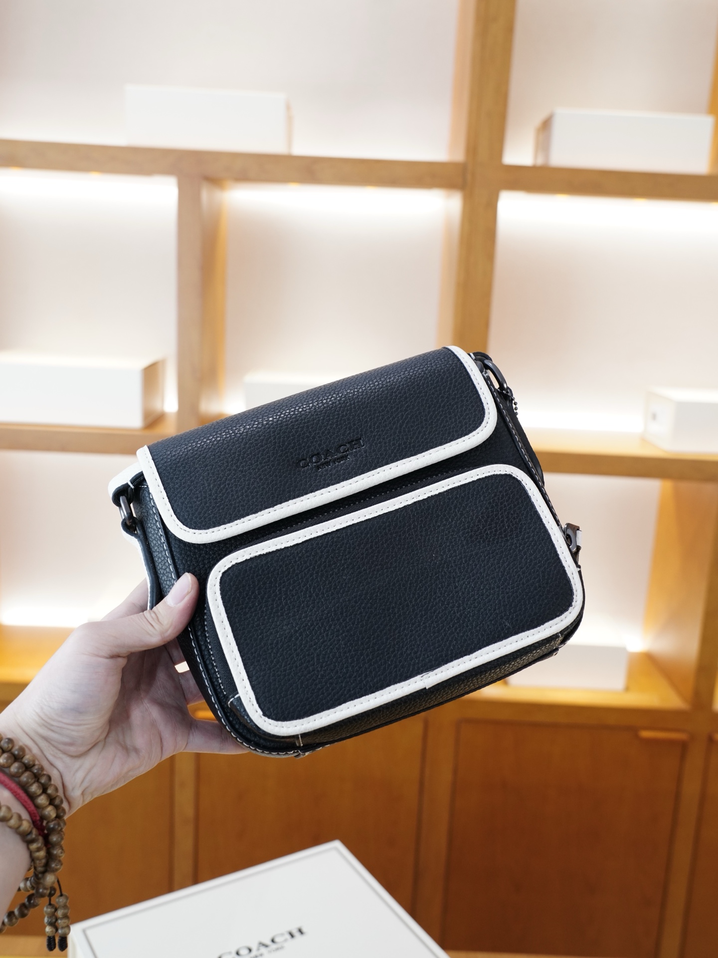 这款包包是AAAAA 1:1 质量 (非常棒). 使用了和原版一模一样的材料. 商标部分也保持了和蔻驰/Coach一样. 图片拍摄是实物包包拍摄, 您所收到的实物保证和我们图片一模一样.