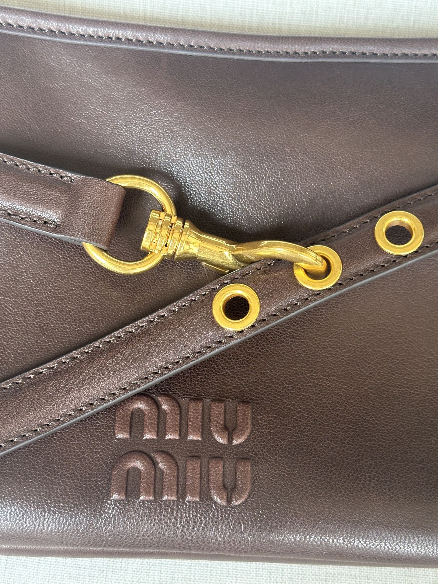 这款包包是AAAAA 1:1 质量 (非常棒). 使用了和原版一模一样的材料. 商标部分也保持了和缪缪/Miu Miu一样. 图片拍摄是实物包包拍摄, 您所收到的实物保证和我们图片一模一样.