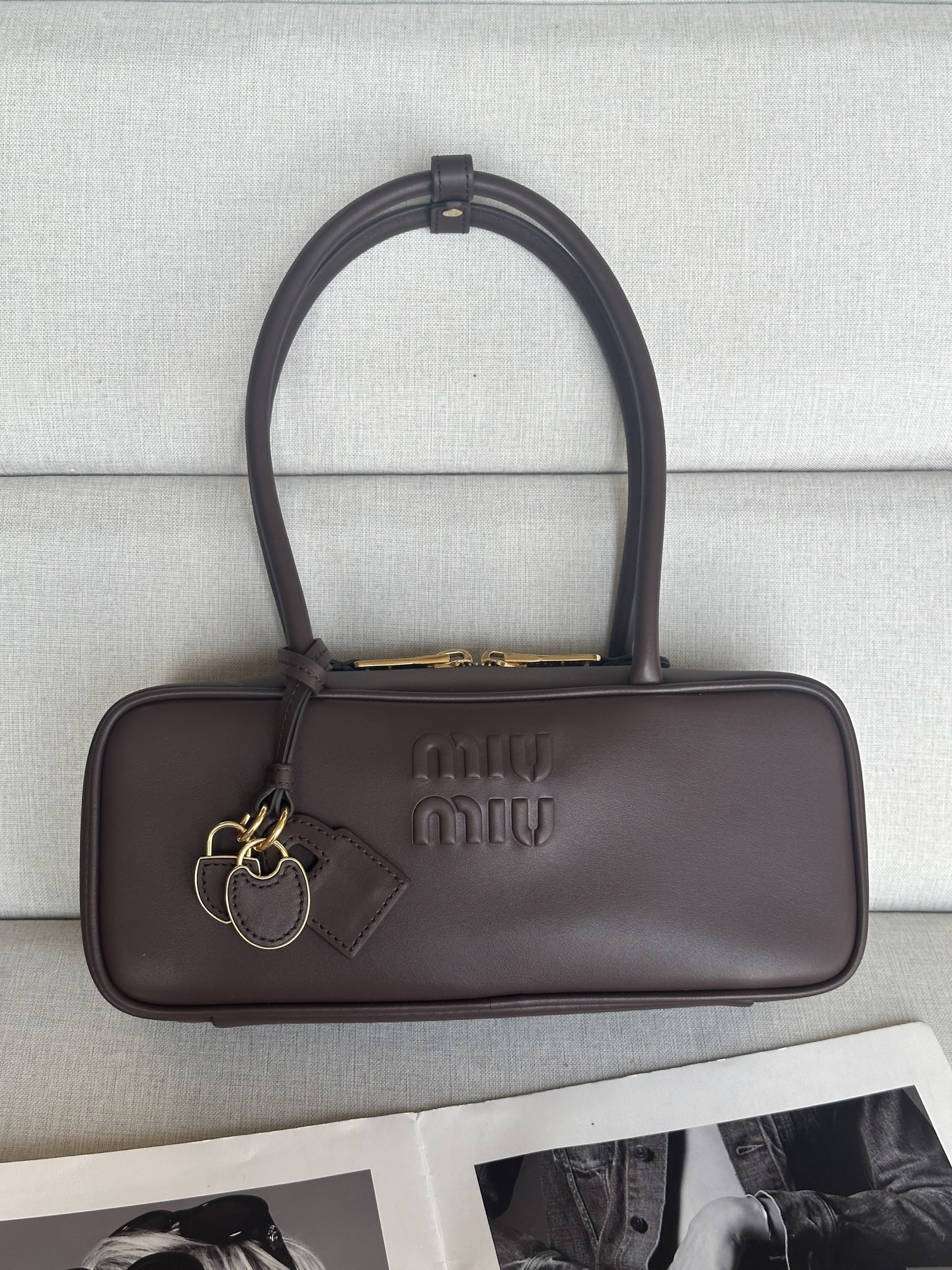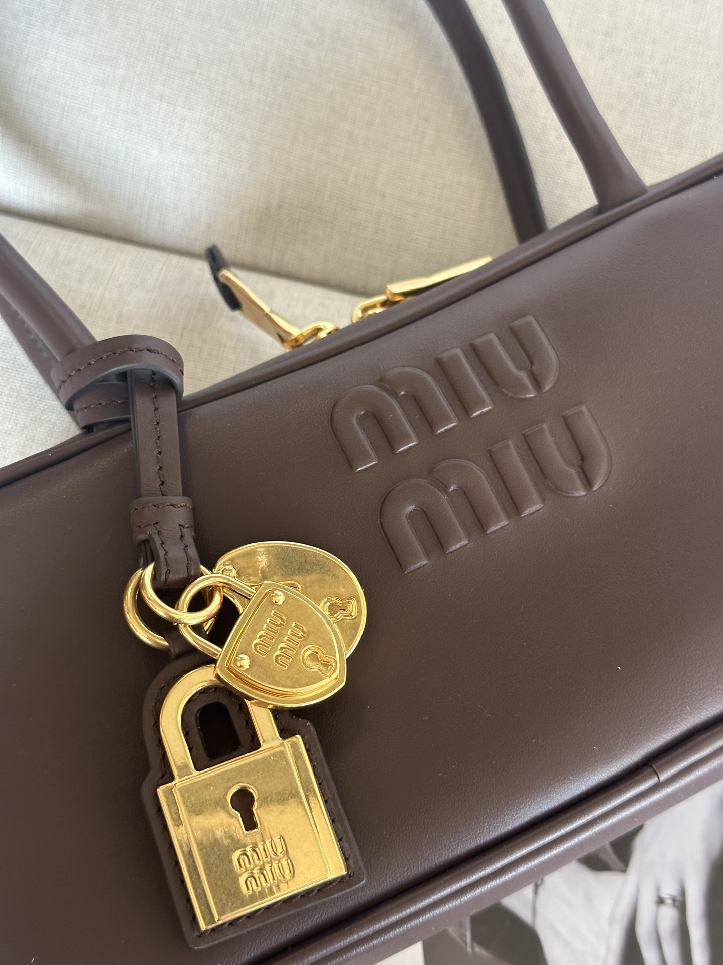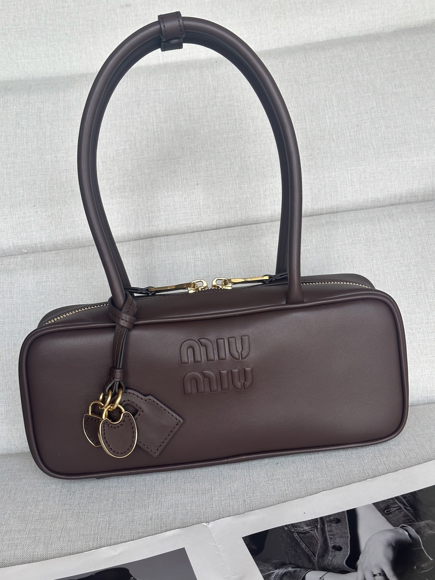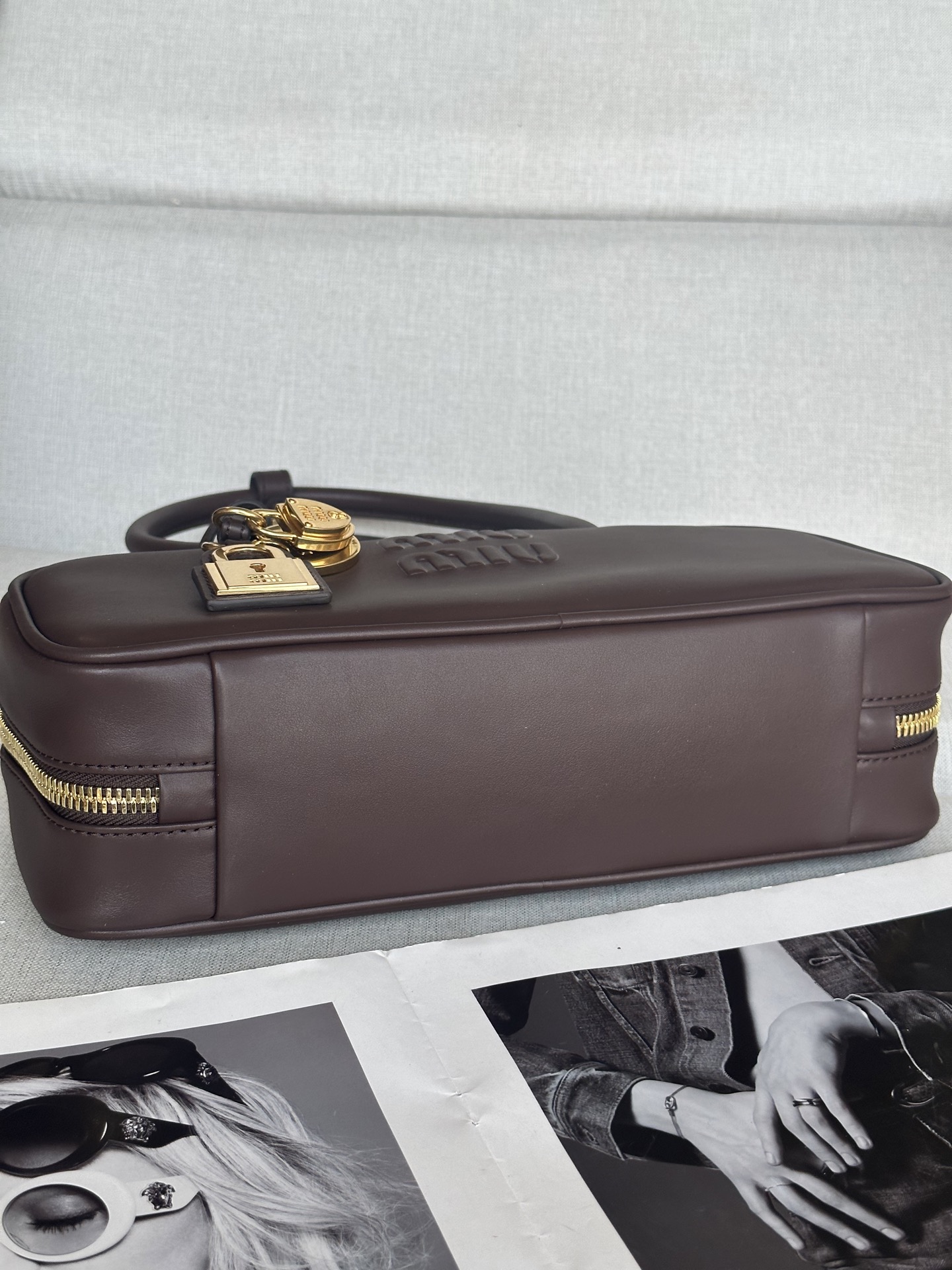 这款包包是AAAAA 1:1 质量 (非常棒). 使用了和原版一模一样的材料. 商标部分也保持了和缪缪/Miu Miu一样. 图片拍摄是实物包包拍摄, 您所收到的实物保证和我们图片一模一样.