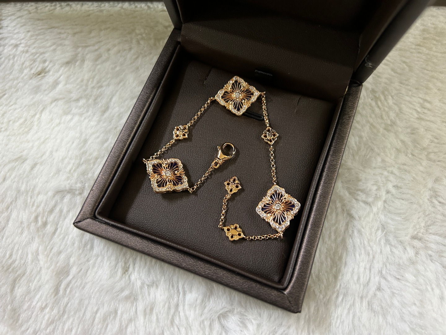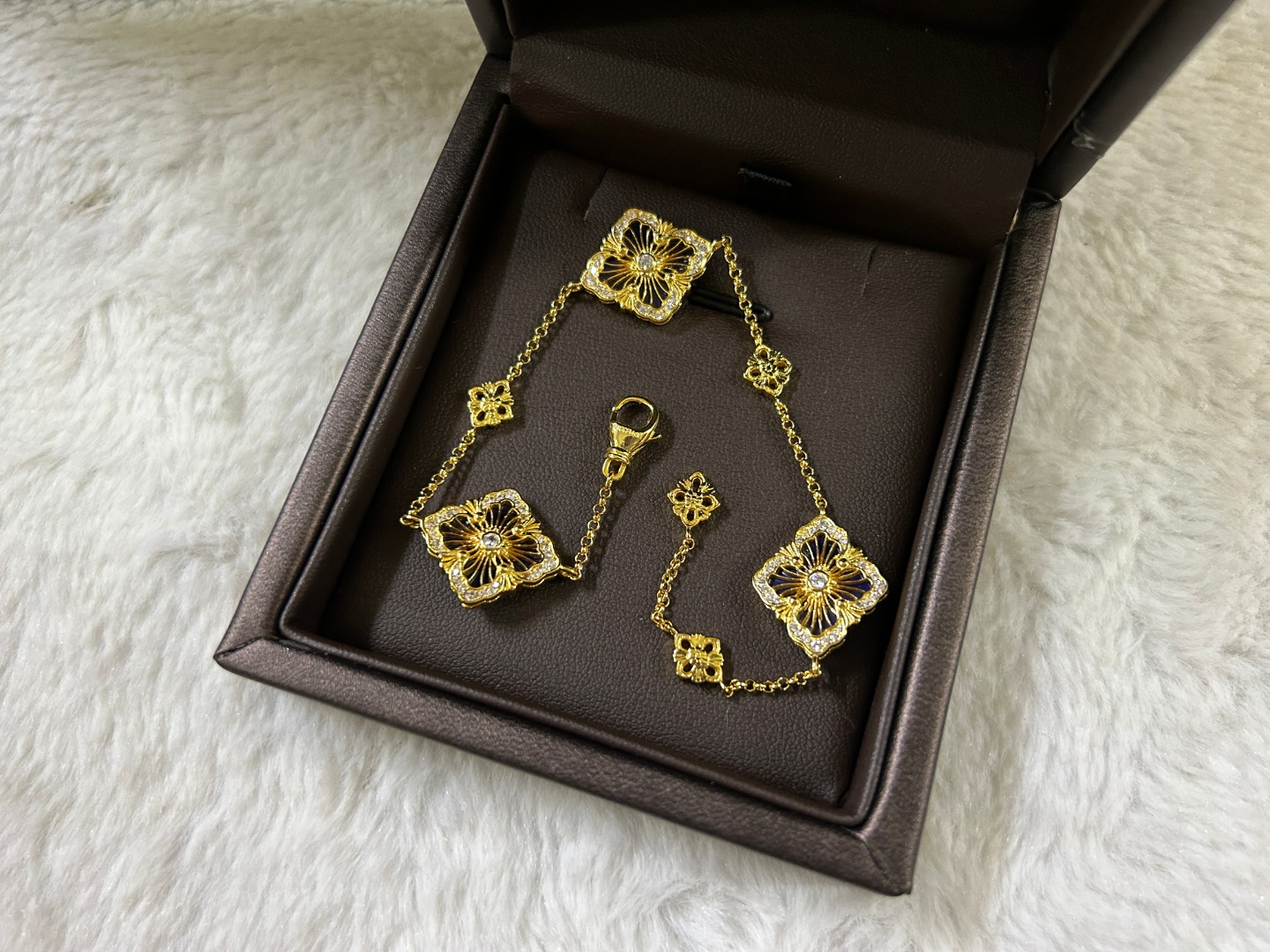 这款首饰是AAAAA 1:1 质量 (非常棒). 使用了和原版一模一样的材料. 商标部分也保持了和Buccellati一样. 图片拍摄是实物首饰拍摄, 您所收到的实物保证和我们图片一模一样.