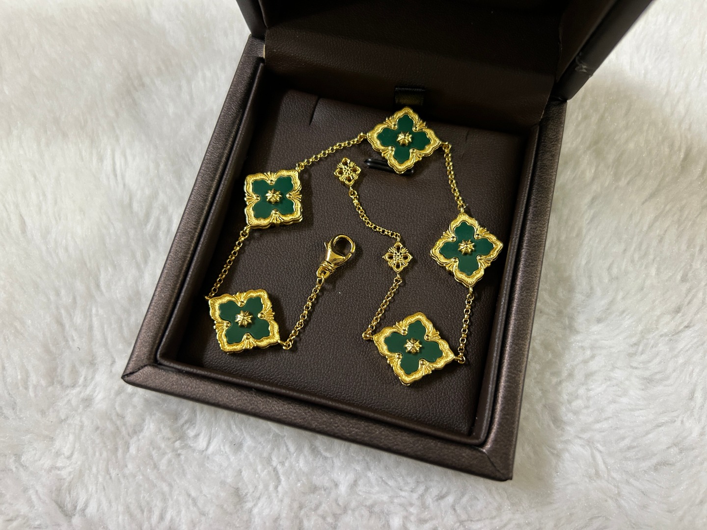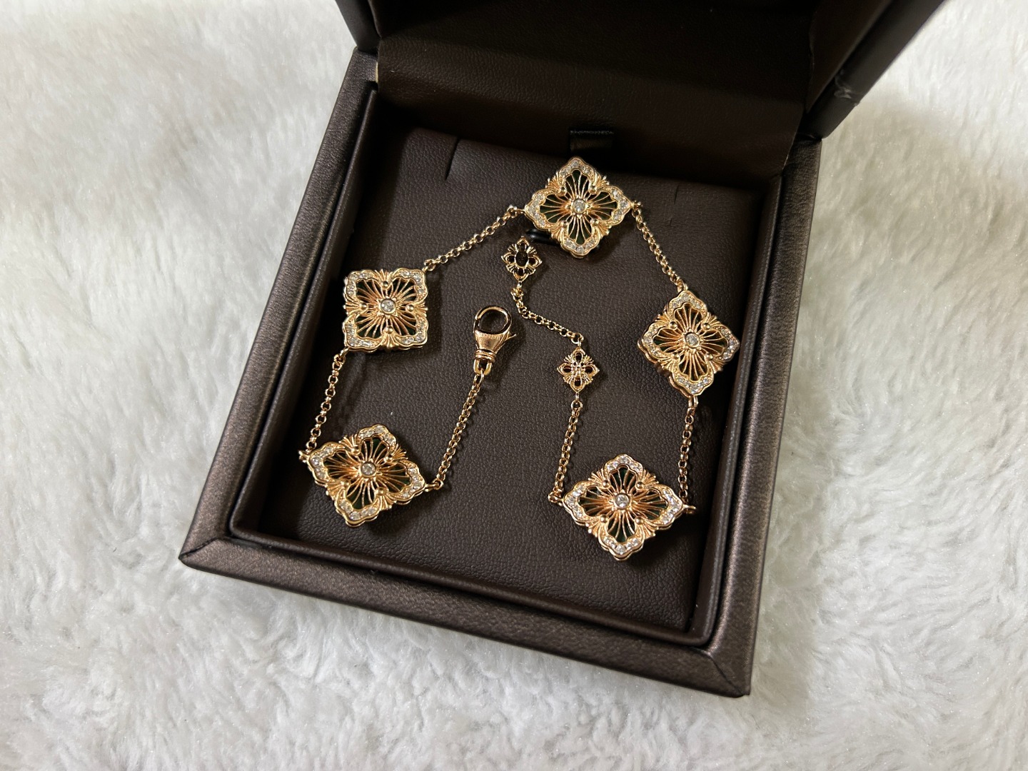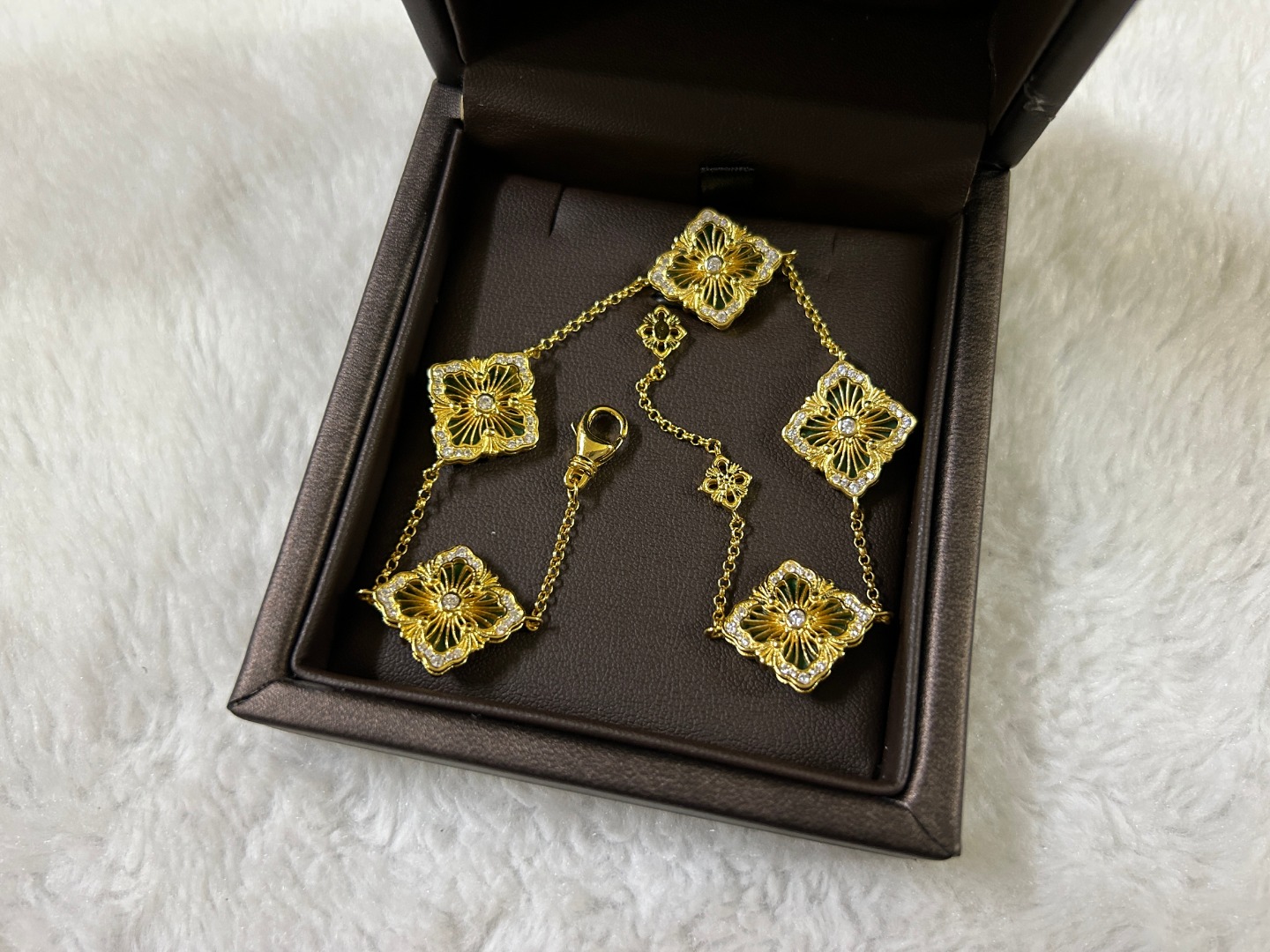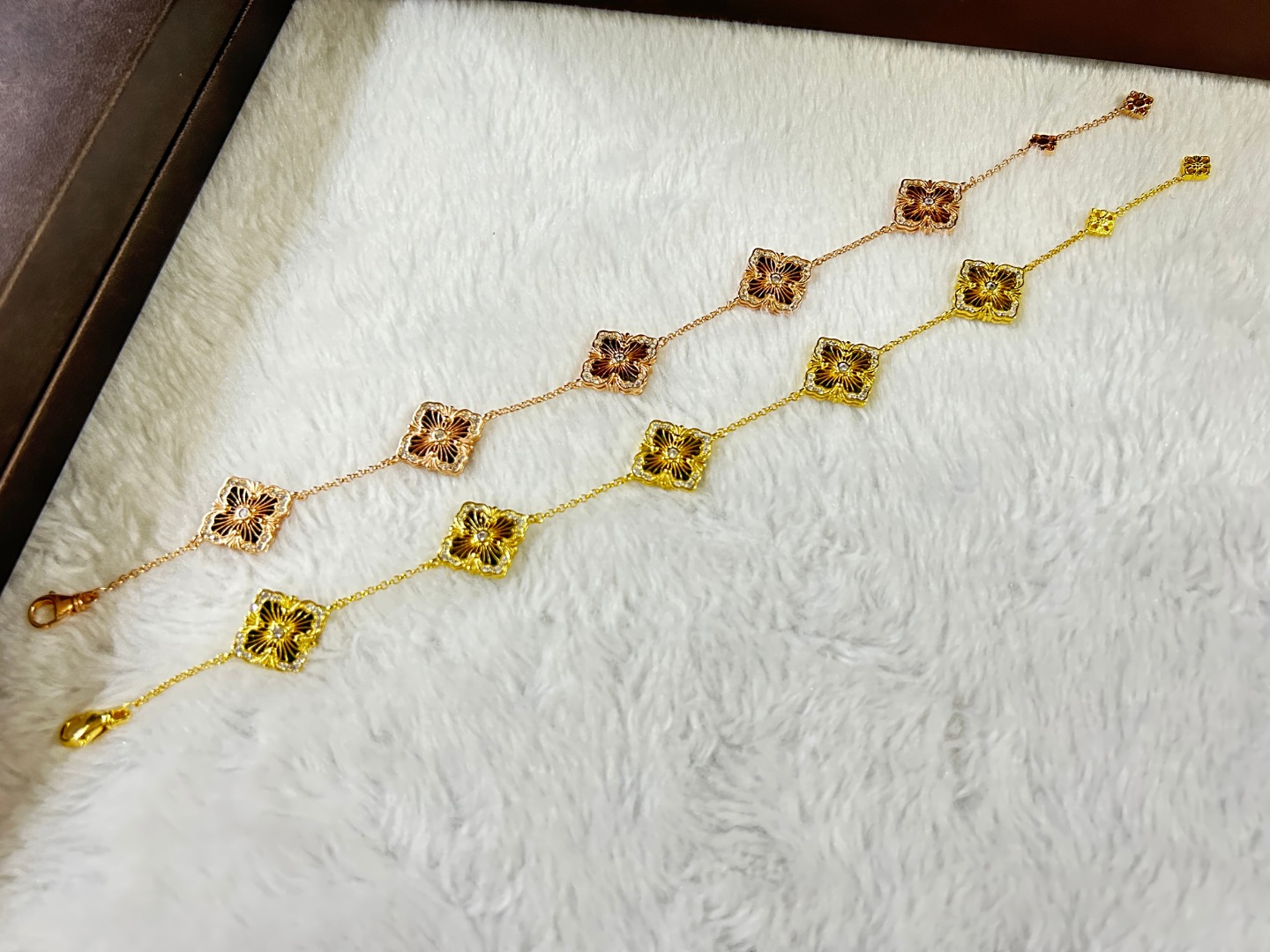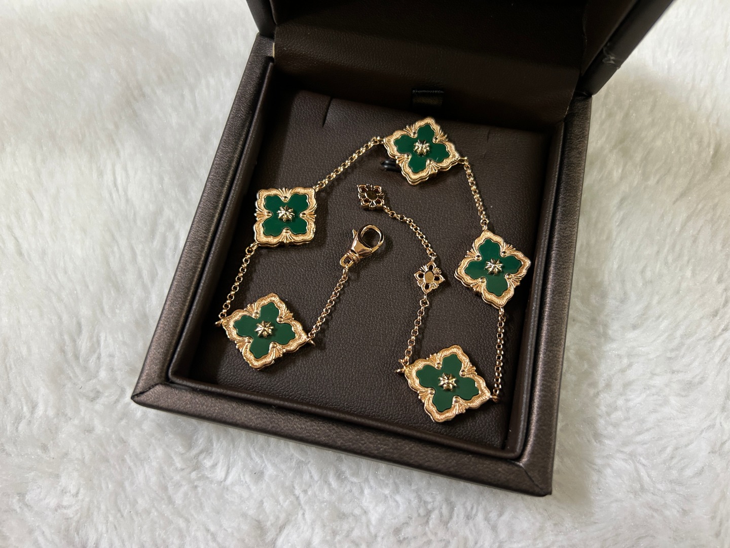 这款首饰是AAAAA 1:1 质量 (非常棒). 使用了和原版一模一样的材料. 商标部分也保持了和Buccellati一样. 图片拍摄是实物首饰拍摄, 您所收到的实物保证和我们图片一模一样.