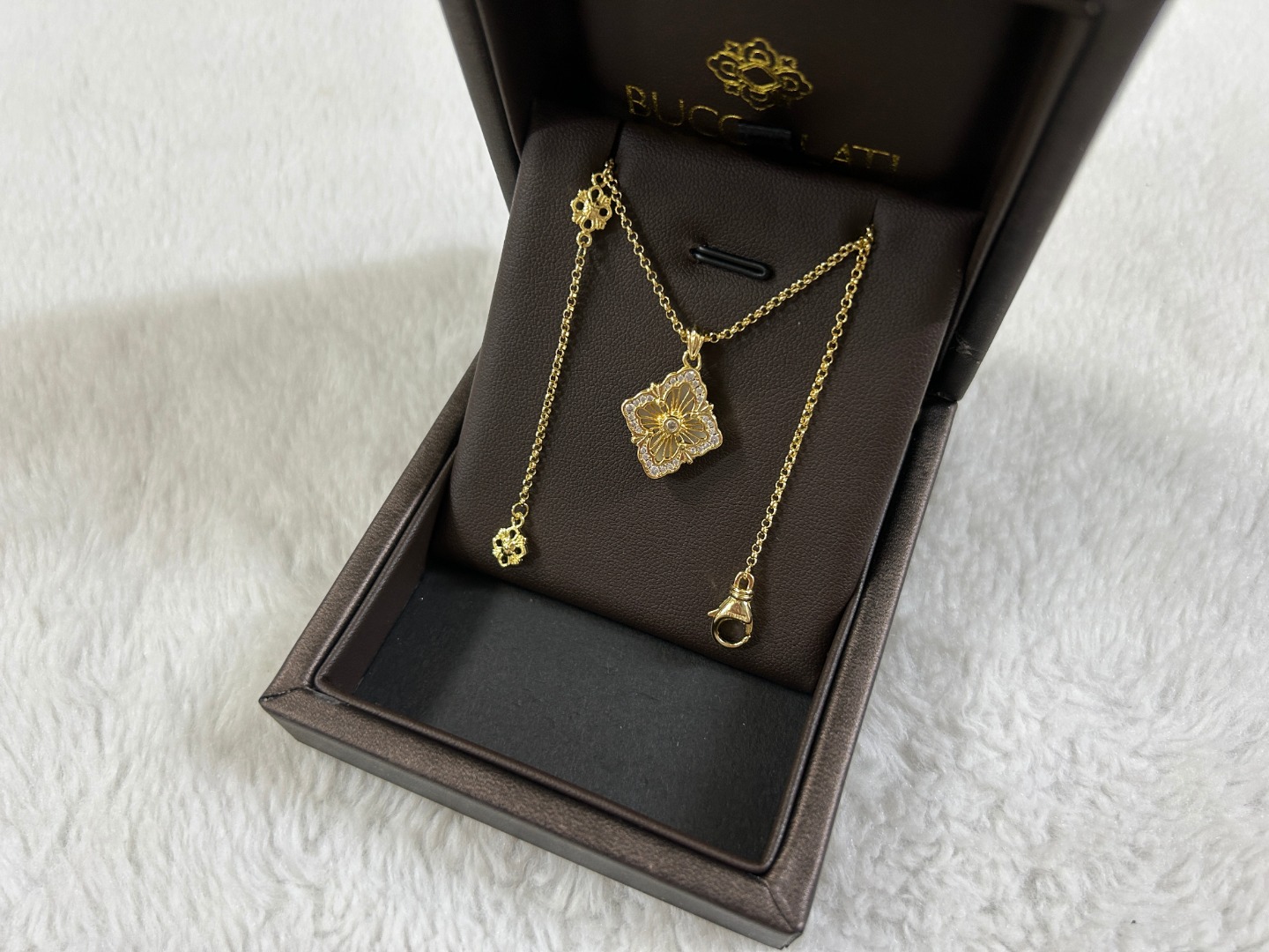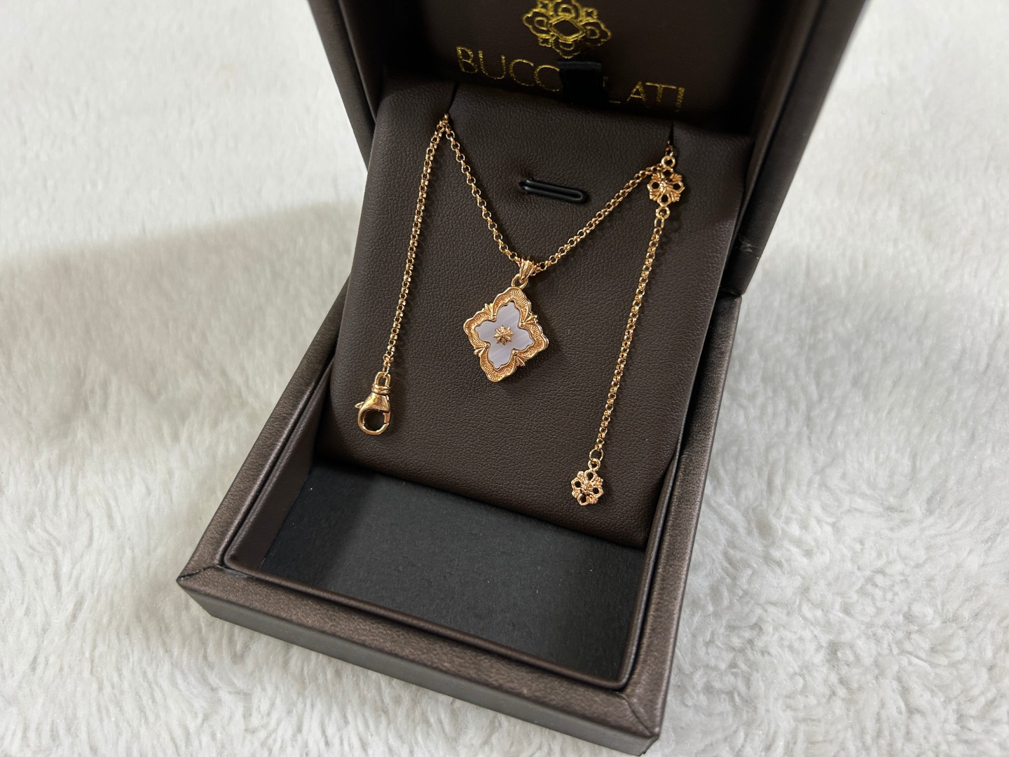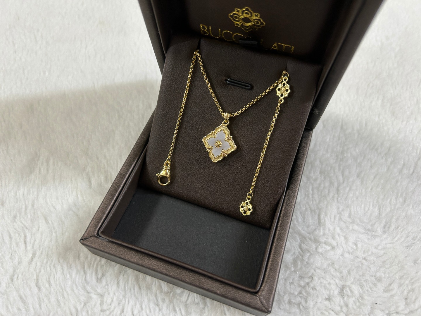 这款首饰是AAAAA 1:1 质量 (非常棒). 使用了和原版一模一样的材料. 商标部分也保持了和Buccellati一样. 图片拍摄是实物首饰拍摄, 您所收到的实物保证和我们图片一模一样.