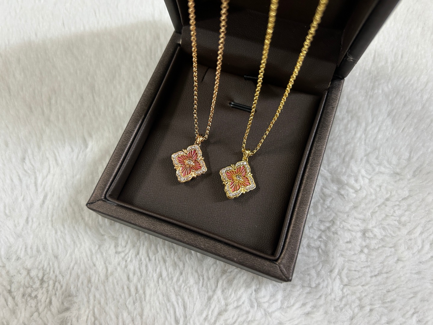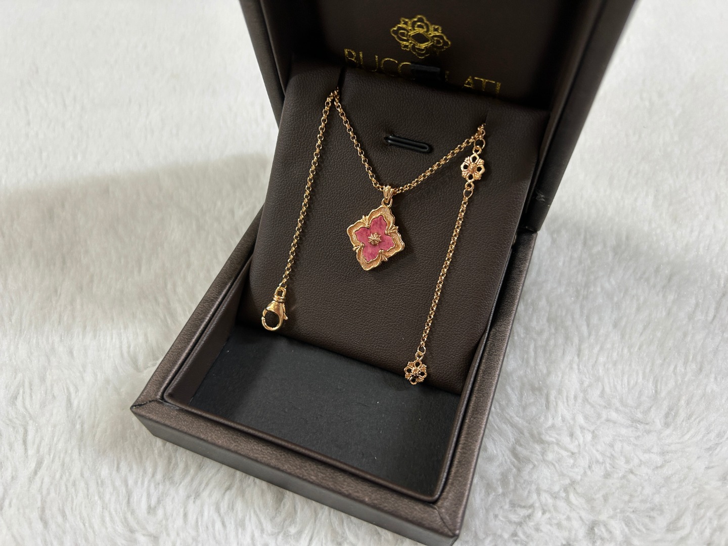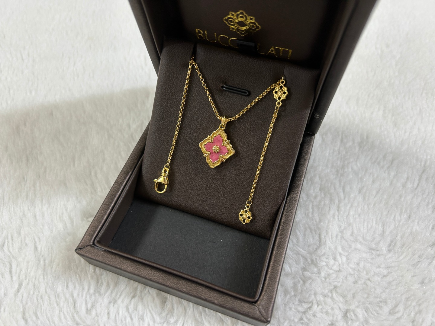 这款首饰是AAAAA 1:1 质量 (非常棒). 使用了和原版一模一样的材料. 商标部分也保持了和Buccellati一样. 图片拍摄是实物首饰拍摄, 您所收到的实物保证和我们图片一模一样.