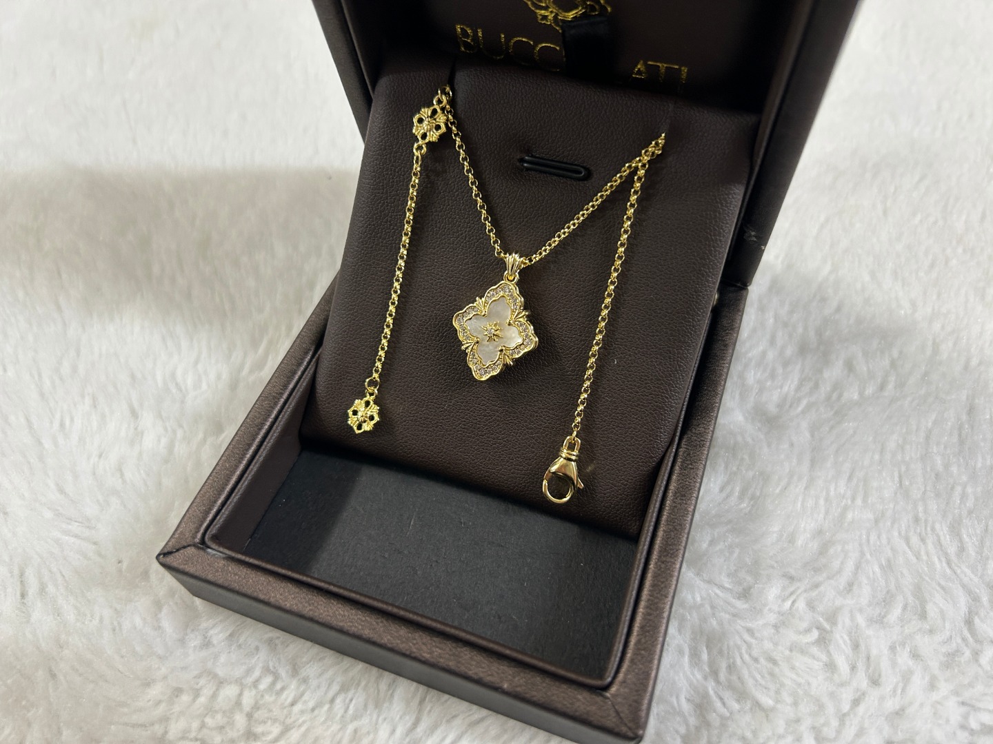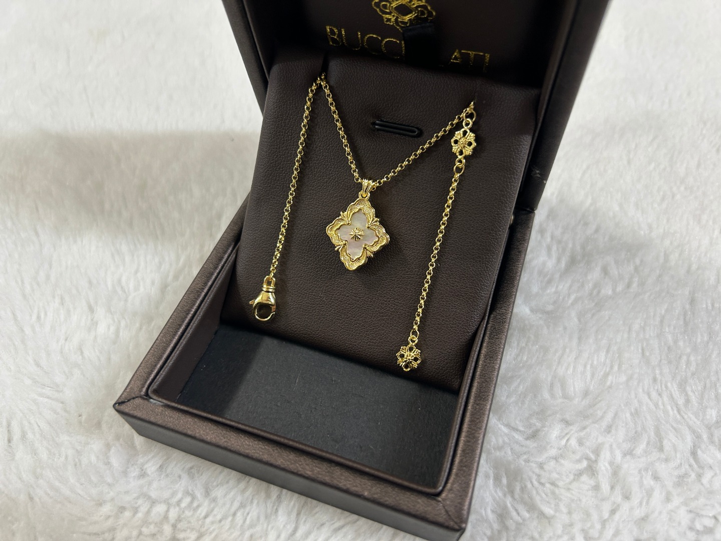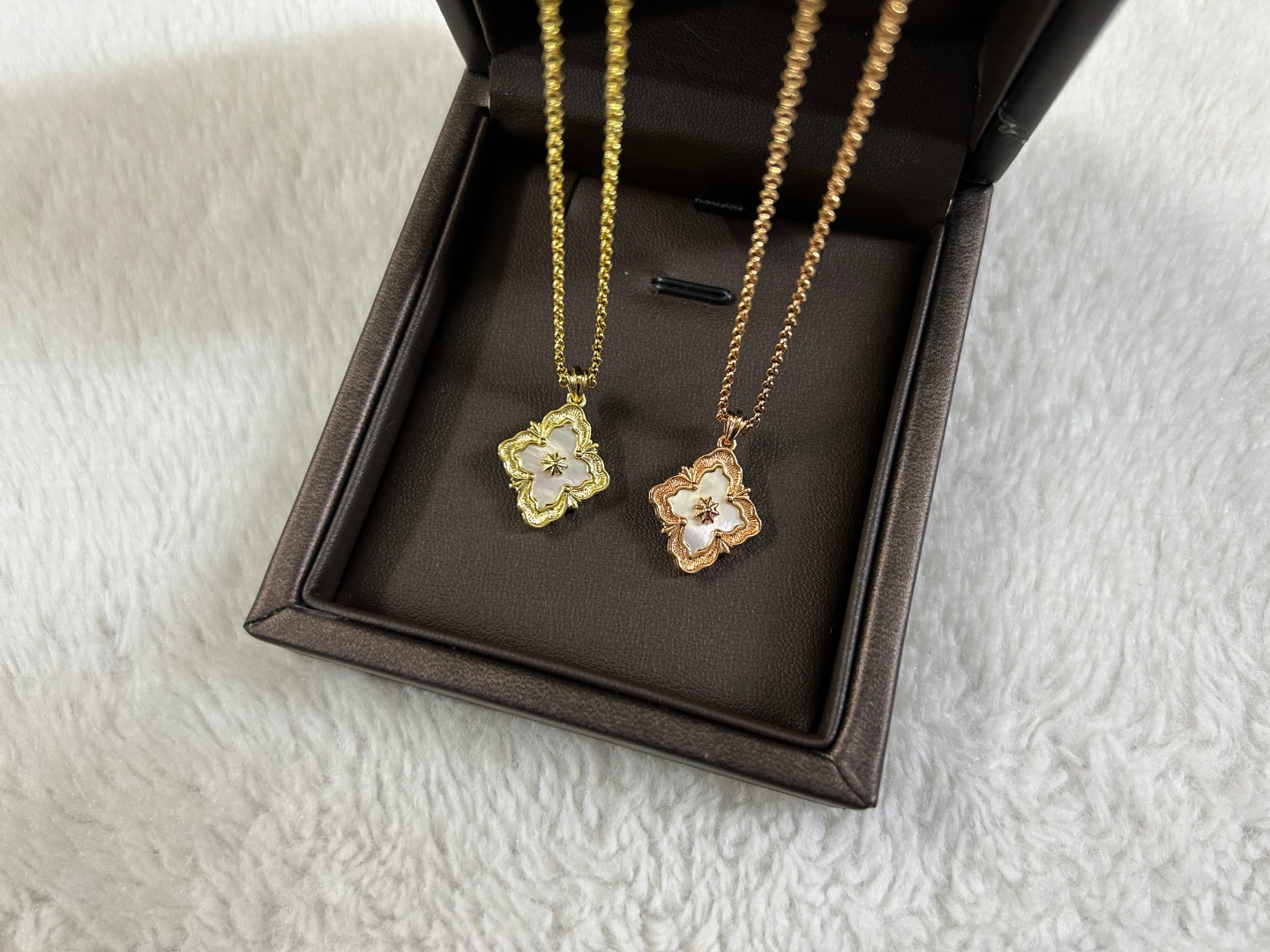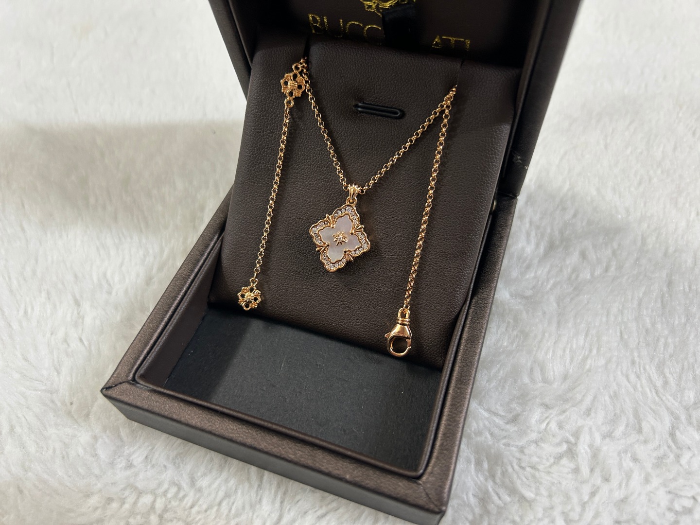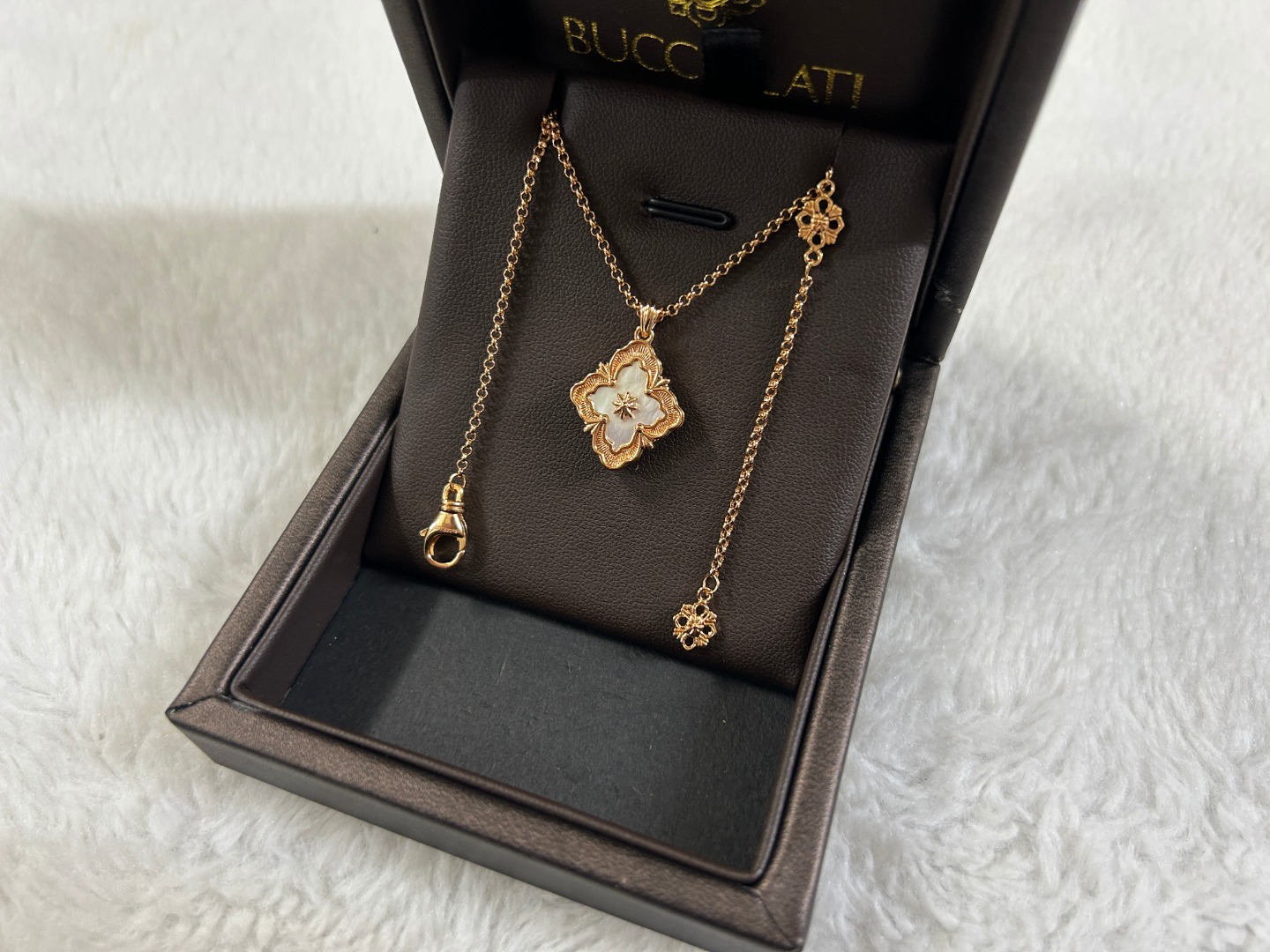 这款首饰是AAAAA 1:1 质量 (非常棒). 使用了和原版一模一样的材料. 商标部分也保持了和Buccellati一样. 图片拍摄是实物首饰拍摄, 您所收到的实物保证和我们图片一模一样.