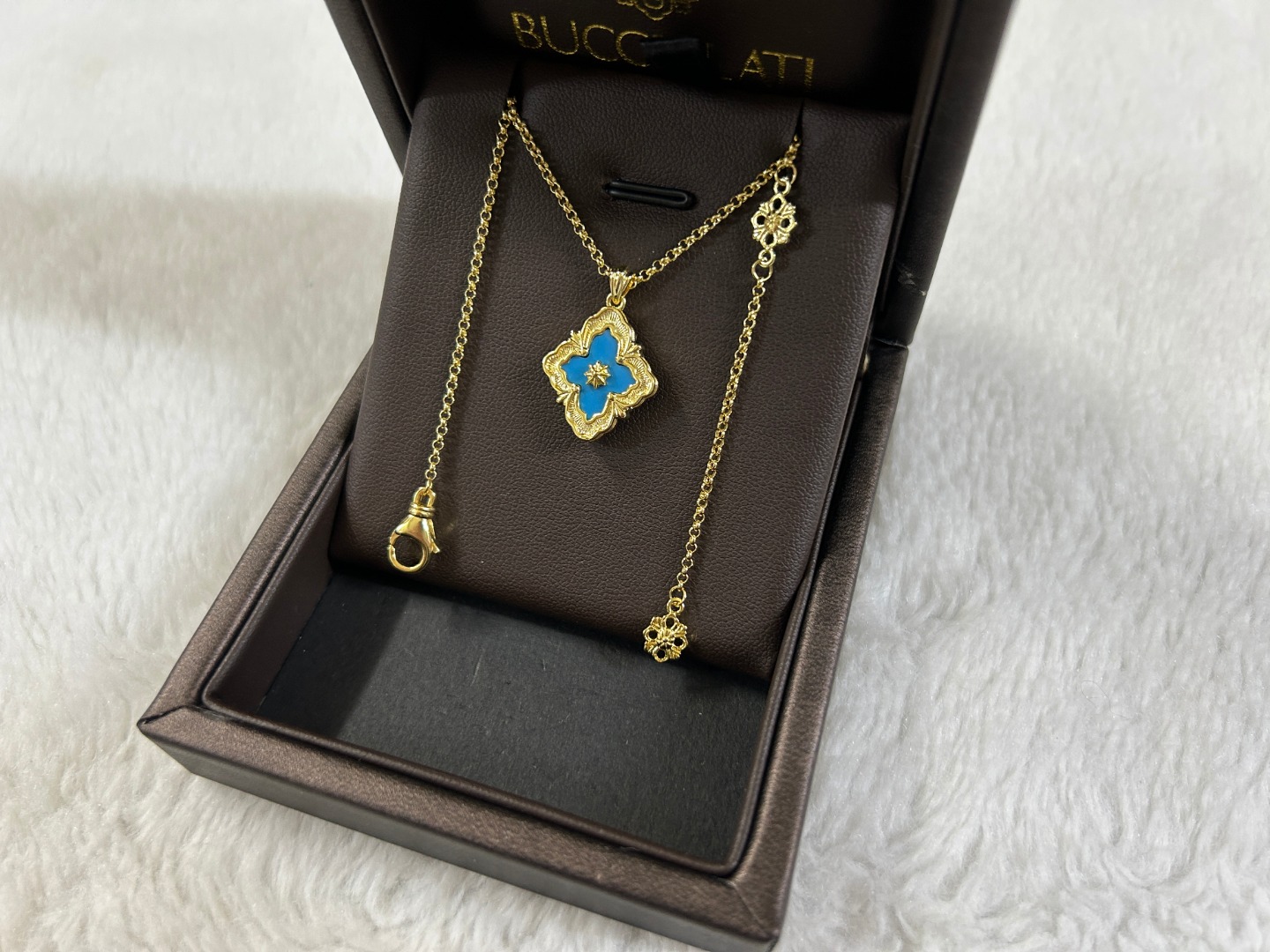 这款首饰是AAAAA 1:1 质量 (非常棒). 使用了和原版一模一样的材料. 商标部分也保持了和Buccellati一样. 图片拍摄是实物首饰拍摄, 您所收到的实物保证和我们图片一模一样.