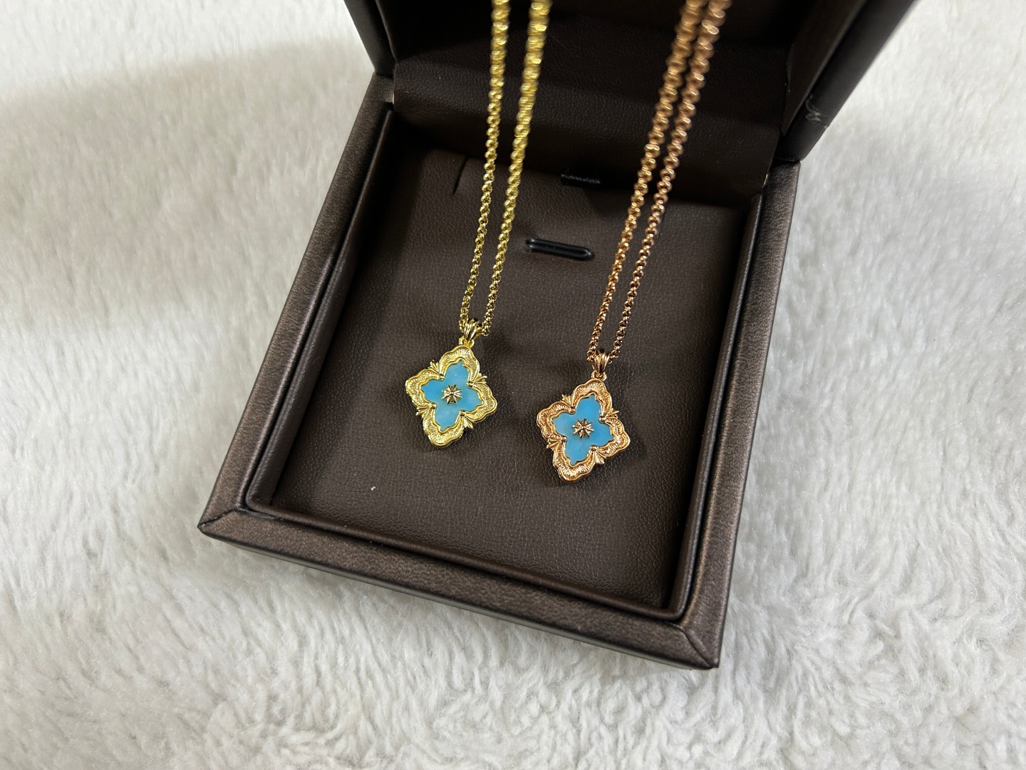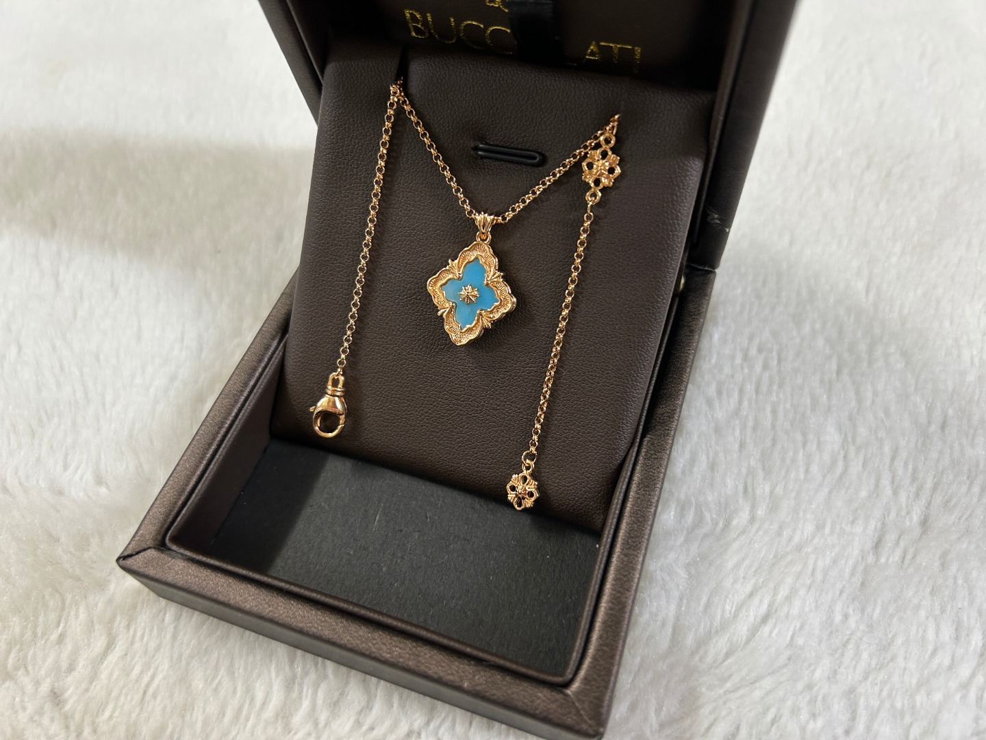 这款首饰是AAAAA 1:1 质量 (非常棒). 使用了和原版一模一样的材料. 商标部分也保持了和Buccellati一样. 图片拍摄是实物首饰拍摄, 您所收到的实物保证和我们图片一模一样.