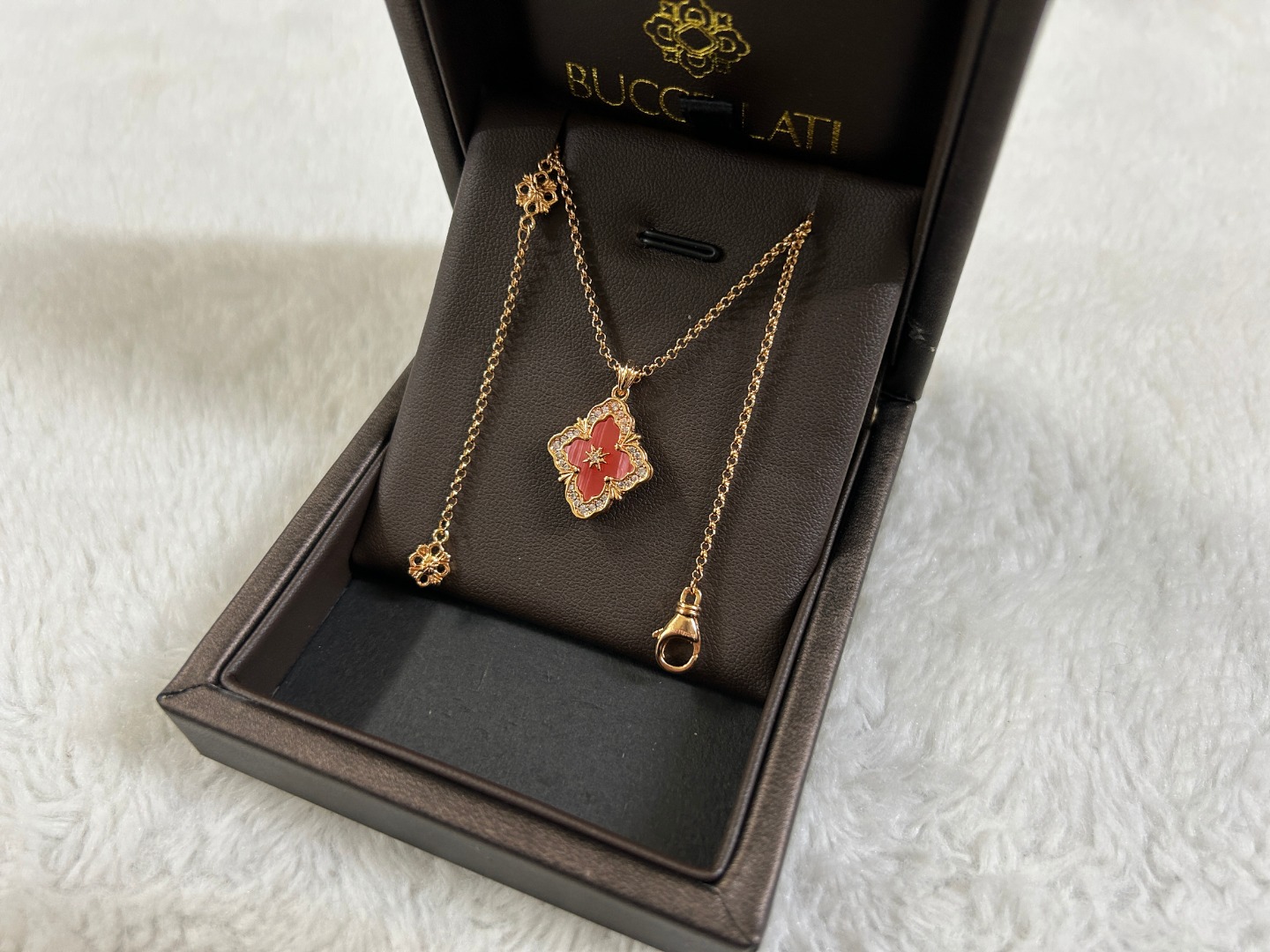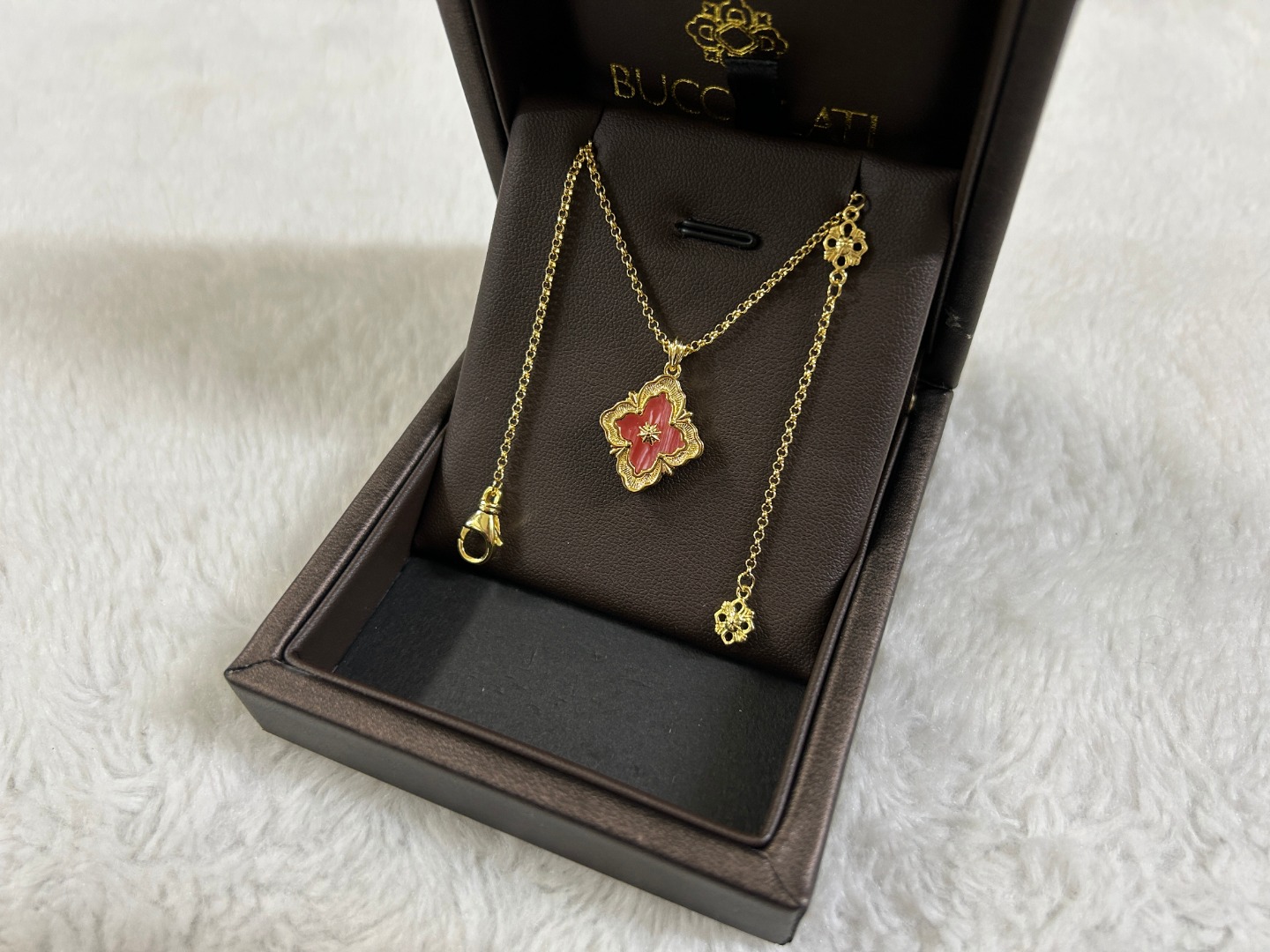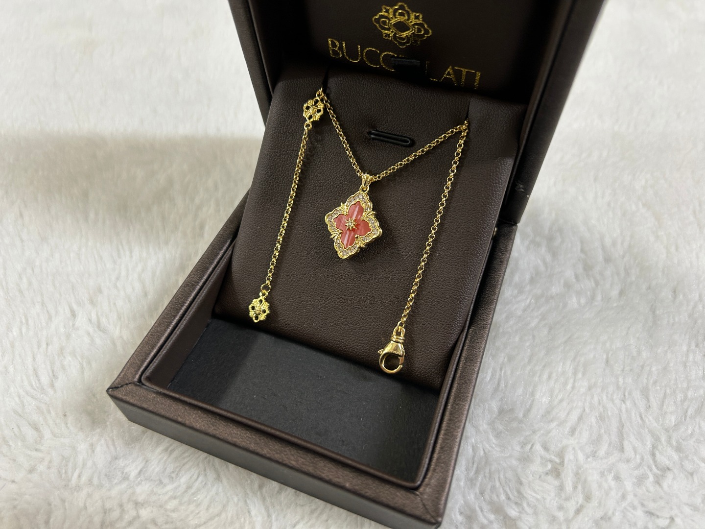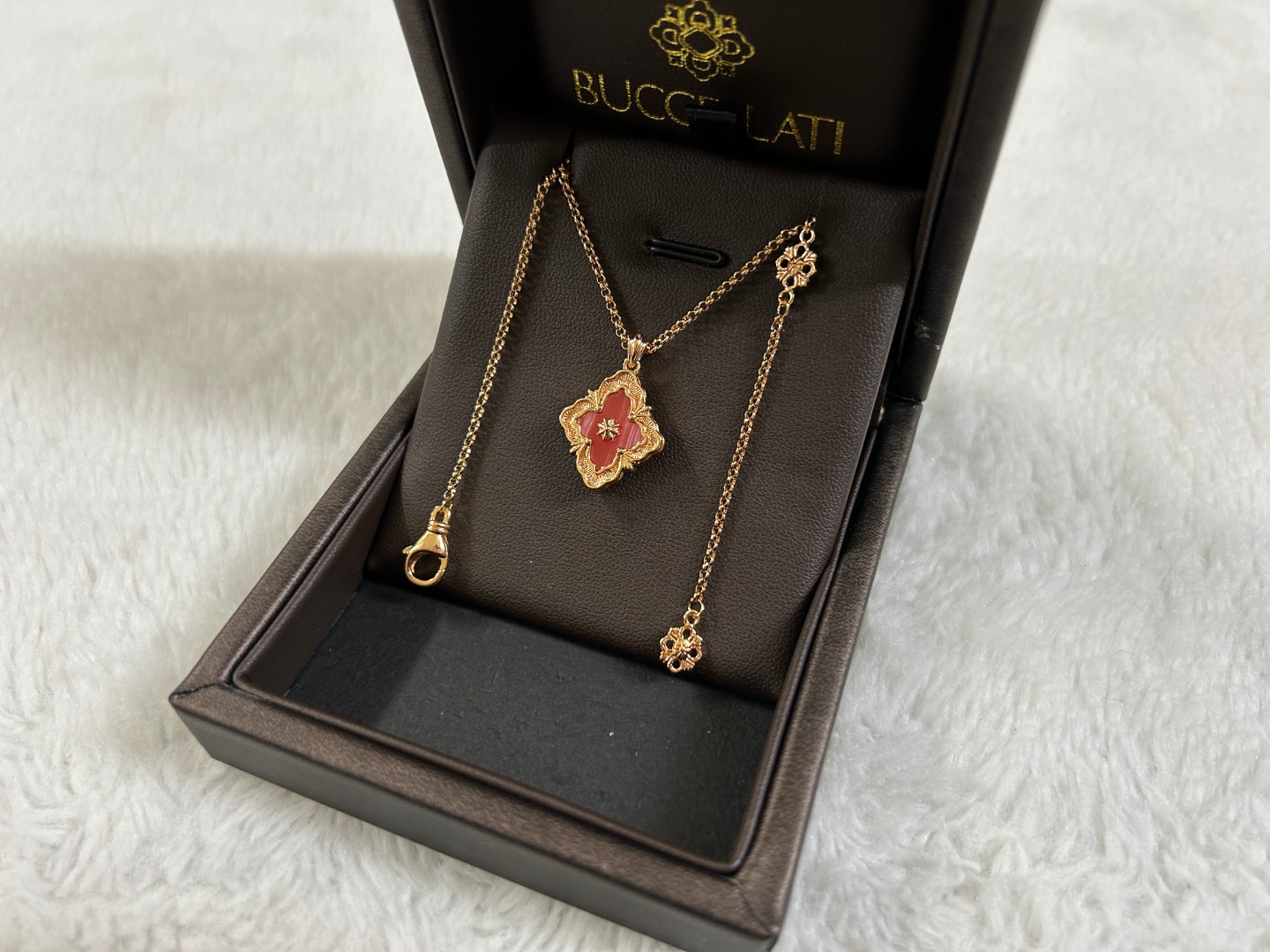 这款首饰是AAAAA 1:1 质量 (非常棒). 使用了和原版一模一样的材料. 商标部分也保持了和Buccellati一样. 图片拍摄是实物首饰拍摄, 您所收到的实物保证和我们图片一模一样.