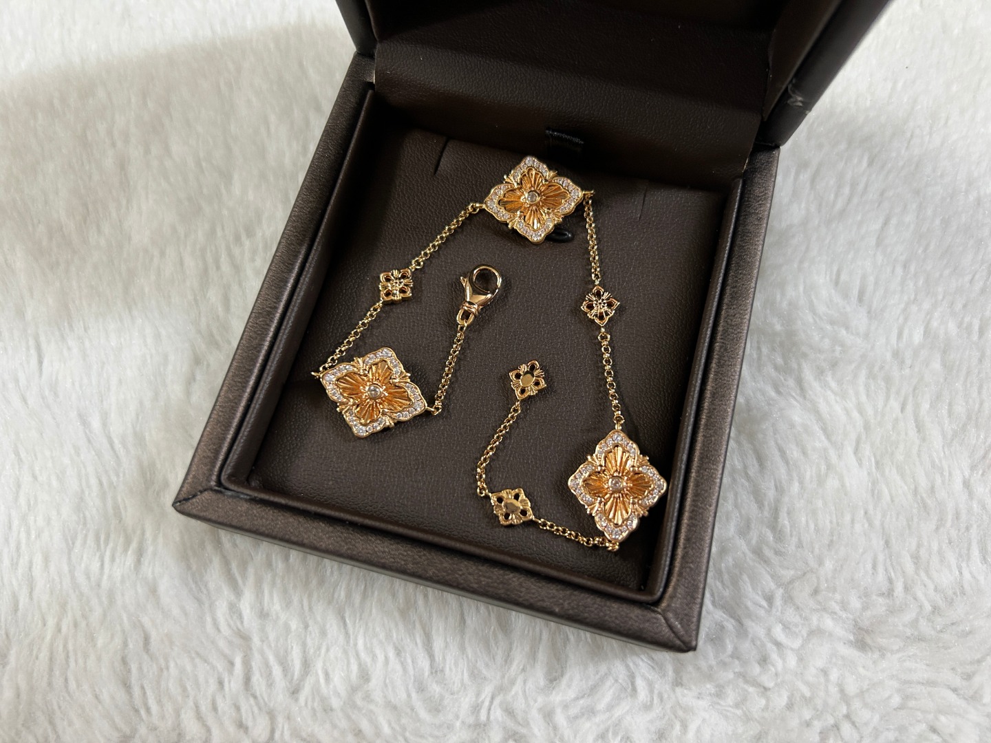 这款首饰是AAAAA 1:1 质量 (非常棒). 使用了和原版一模一样的材料. 商标部分也保持了和Buccellati一样. 图片拍摄是实物首饰拍摄, 您所收到的实物保证和我们图片一模一样.