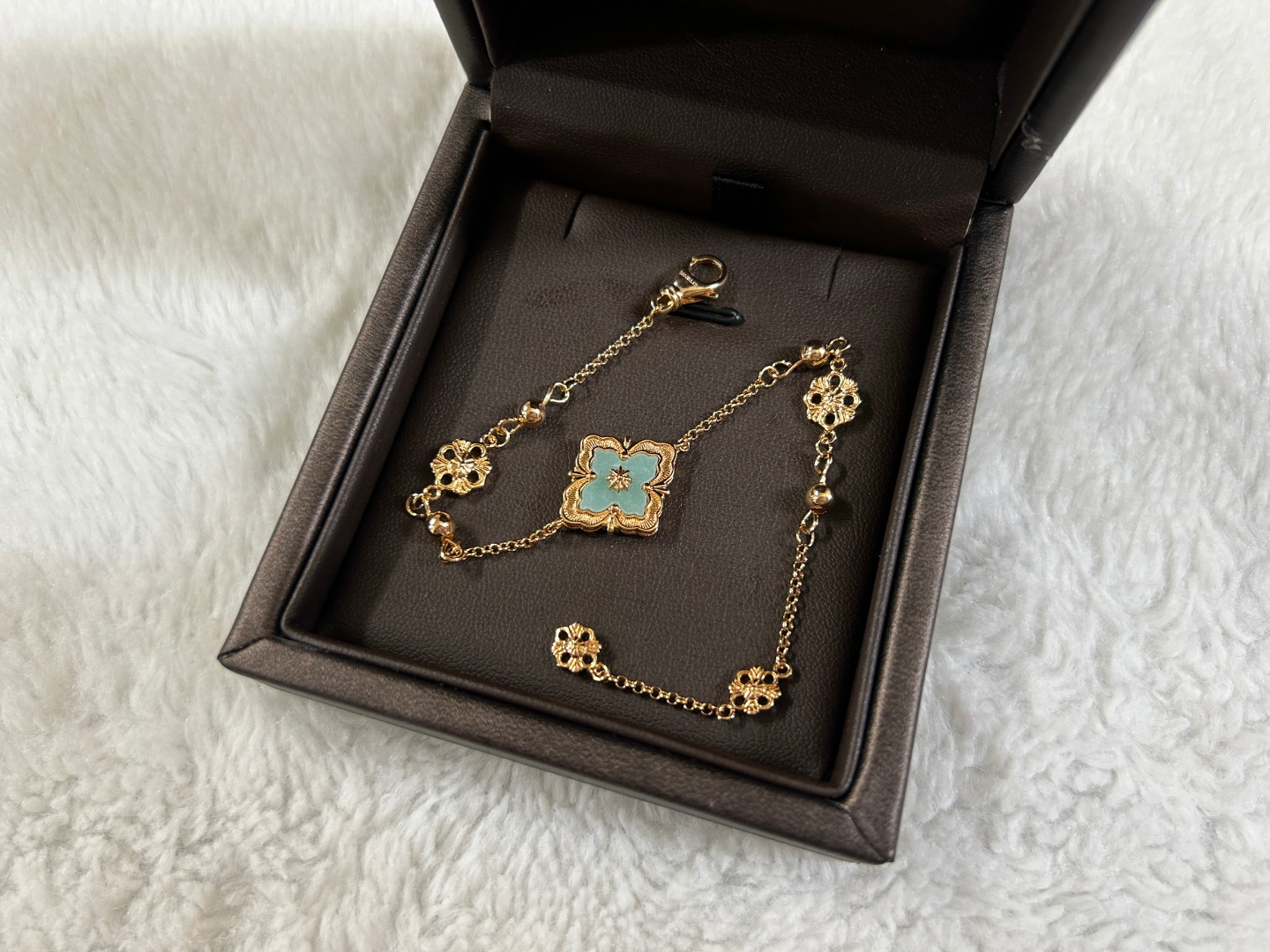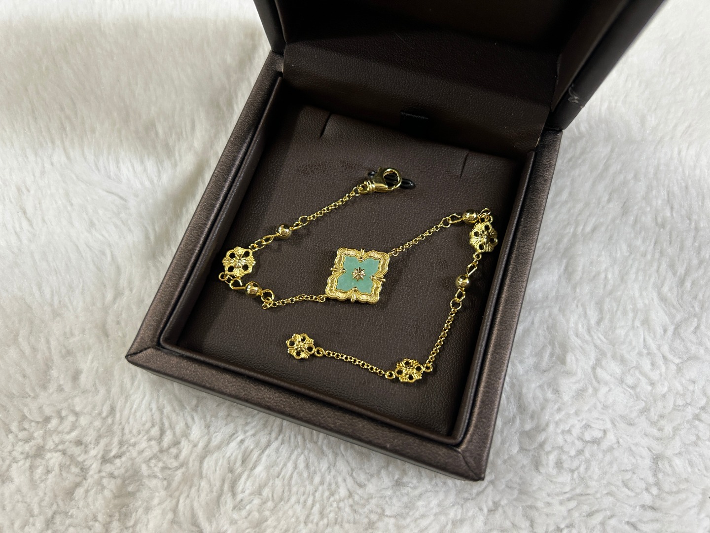 这款首饰是AAAAA 1:1 质量 (非常棒). 使用了和原版一模一样的材料. 商标部分也保持了和Buccellati一样. 图片拍摄是实物首饰拍摄, 您所收到的实物保证和我们图片一模一样.
