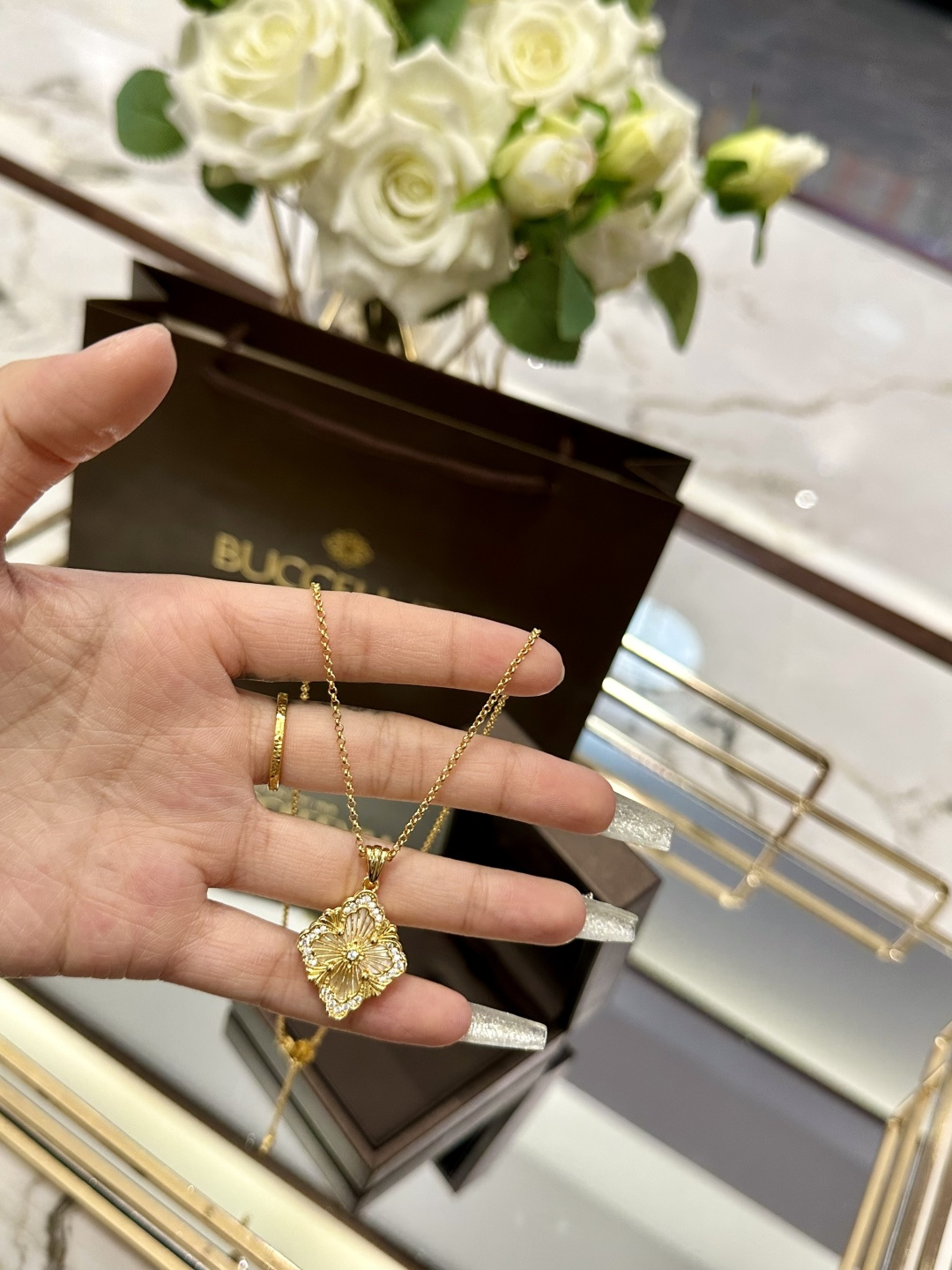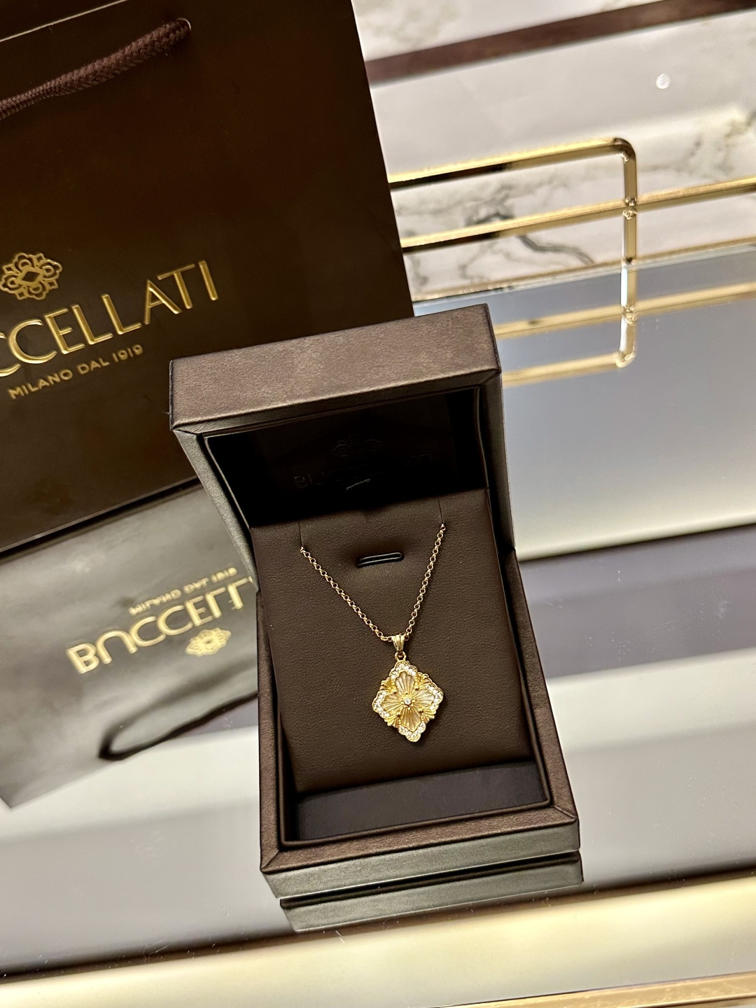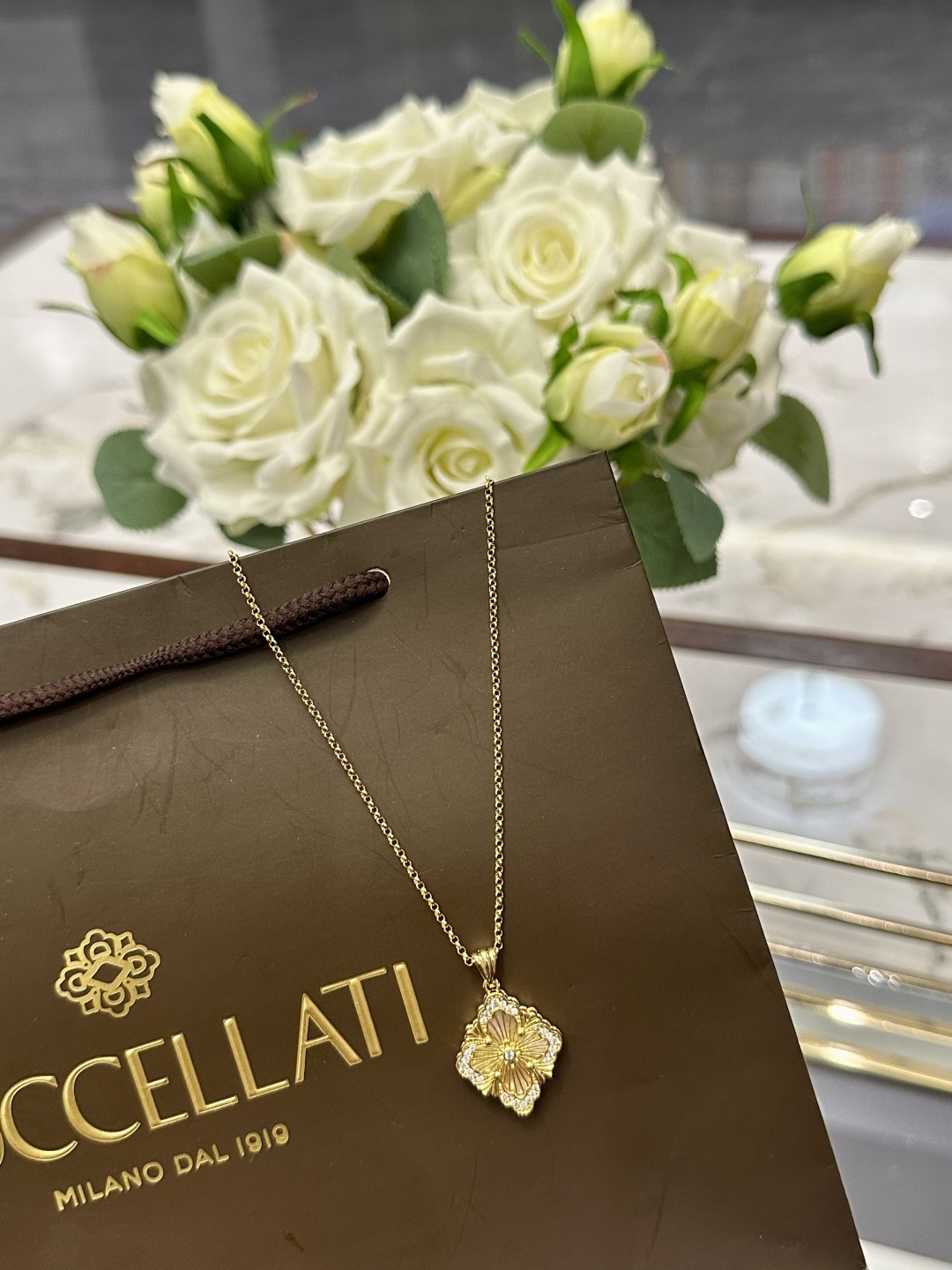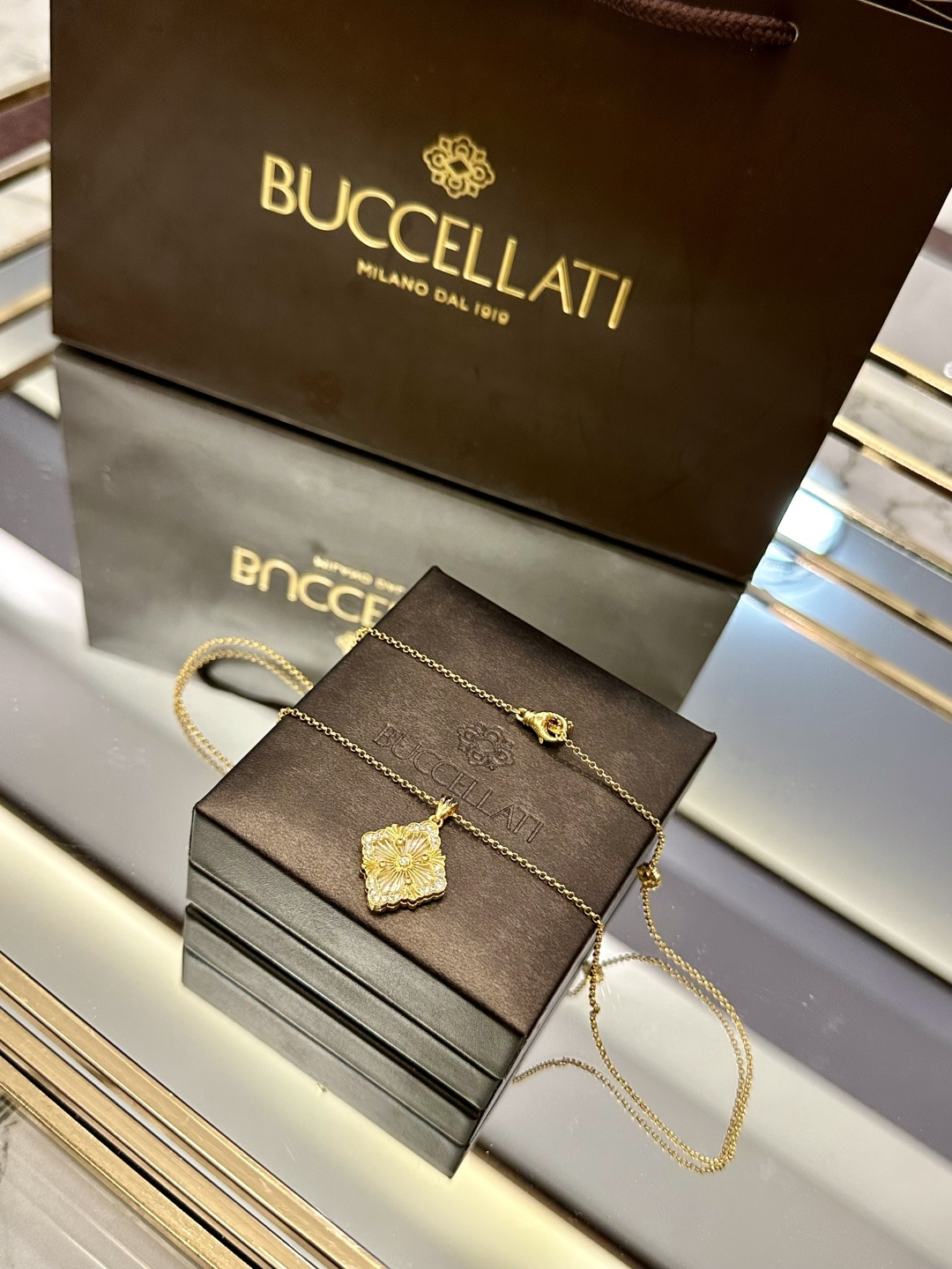 这款首饰是AAAAA 1:1 质量 (非常棒). 使用了和原版一模一样的材料. 商标部分也保持了和Buccellati一样. 图片拍摄是实物首饰拍摄, 您所收到的实物保证和我们图片一模一样.