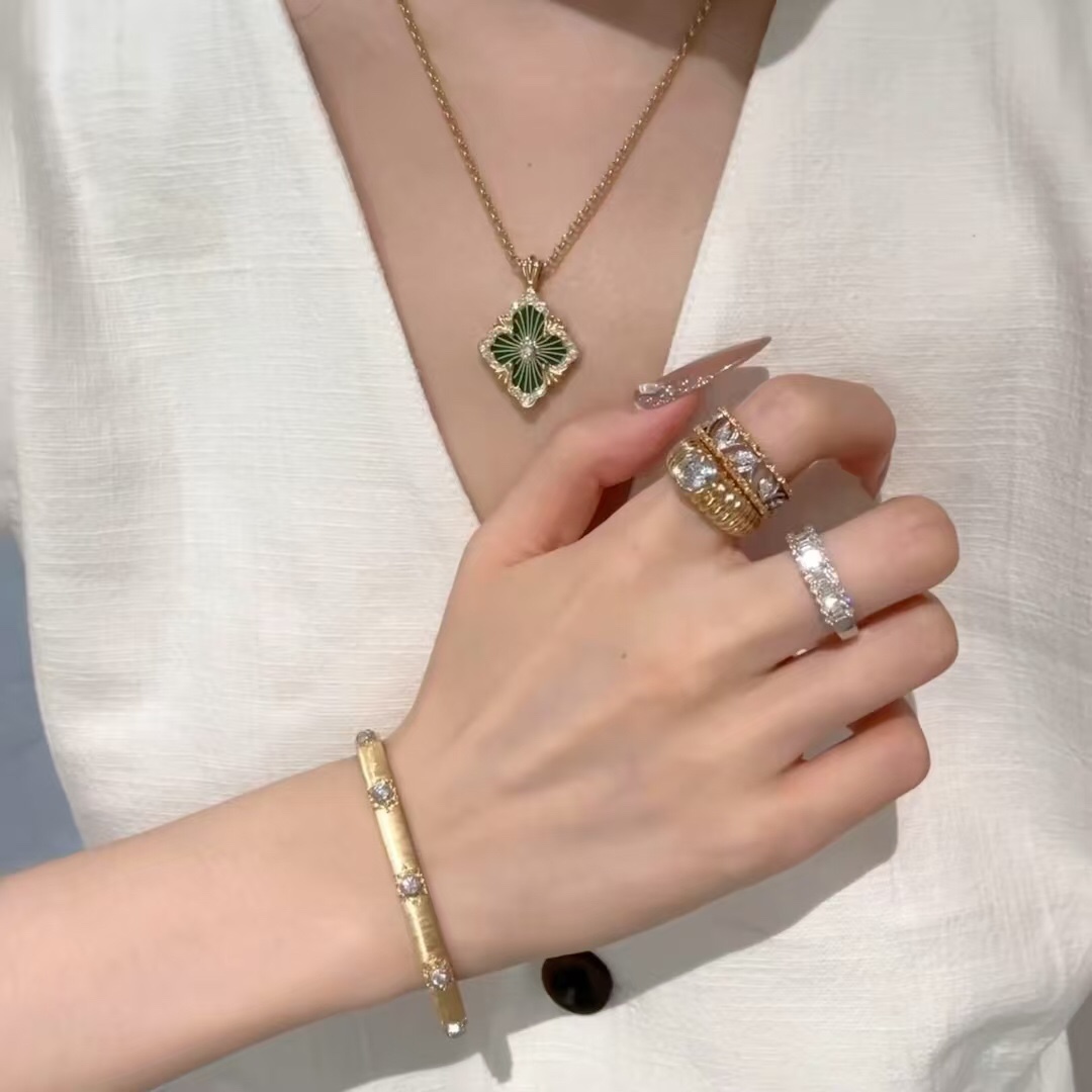 这款首饰是AAAAA 1:1 质量 (非常棒). 使用了和原版一模一样的材料. 商标部分也保持了和Buccellati一样. 图片拍摄是实物首饰拍摄, 您所收到的实物保证和我们图片一模一样.