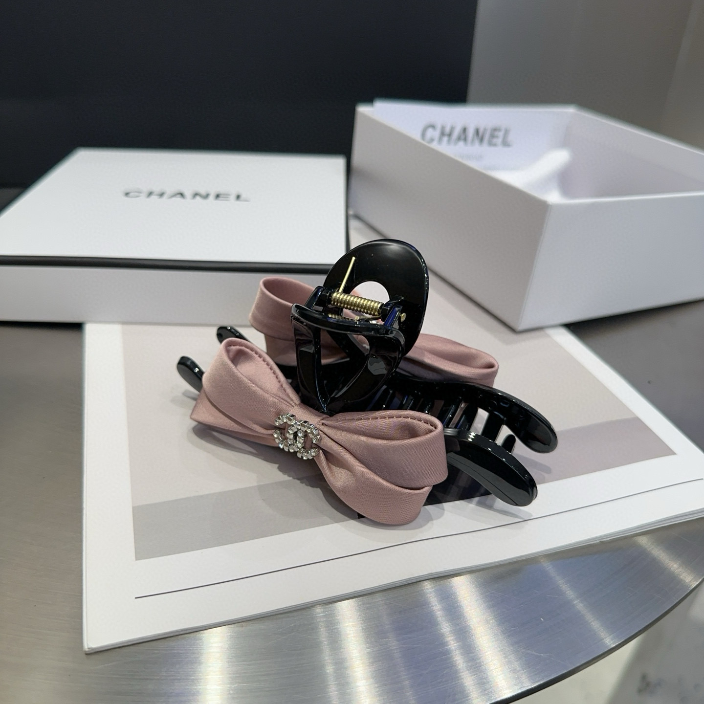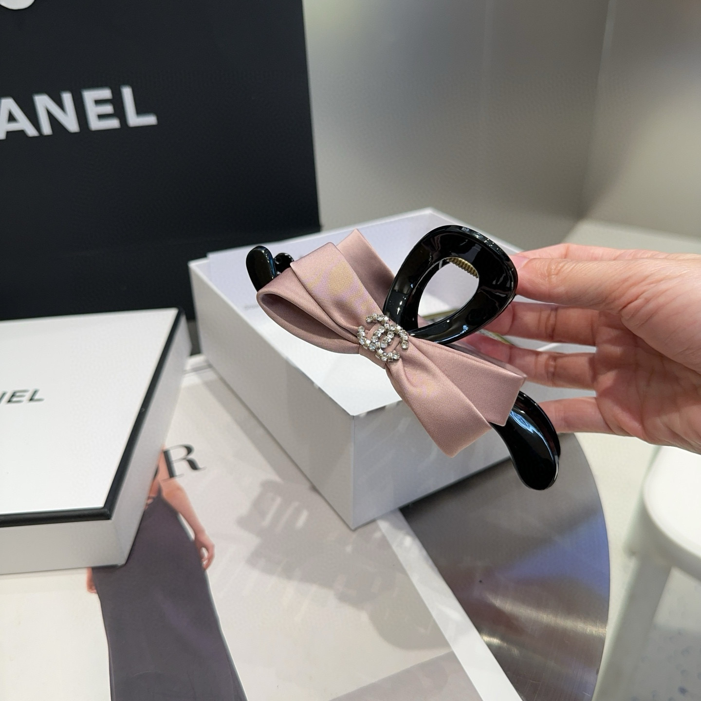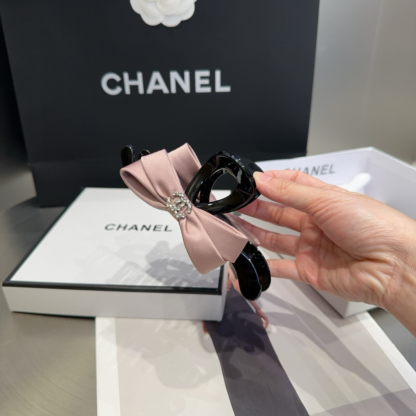 这款hair accessories是AAAAA 1:1 质量 (非常棒). 使用了和原版一模一样的材料. 商标部分也保持了和香奈儿/Chanel一样. 图片拍摄是实物hair accessories拍摄, 您所收到的实物保证和我们图片一模一样.