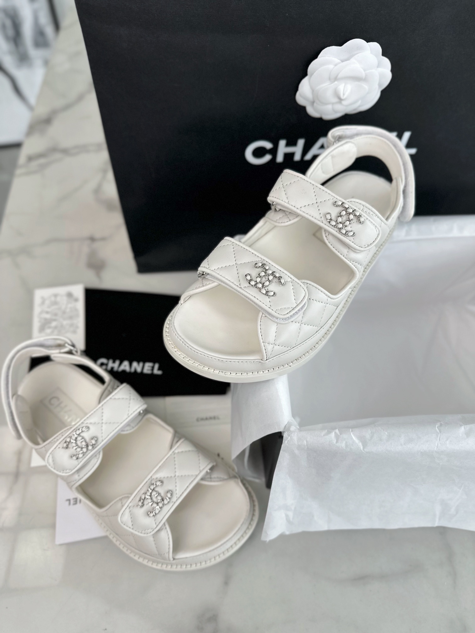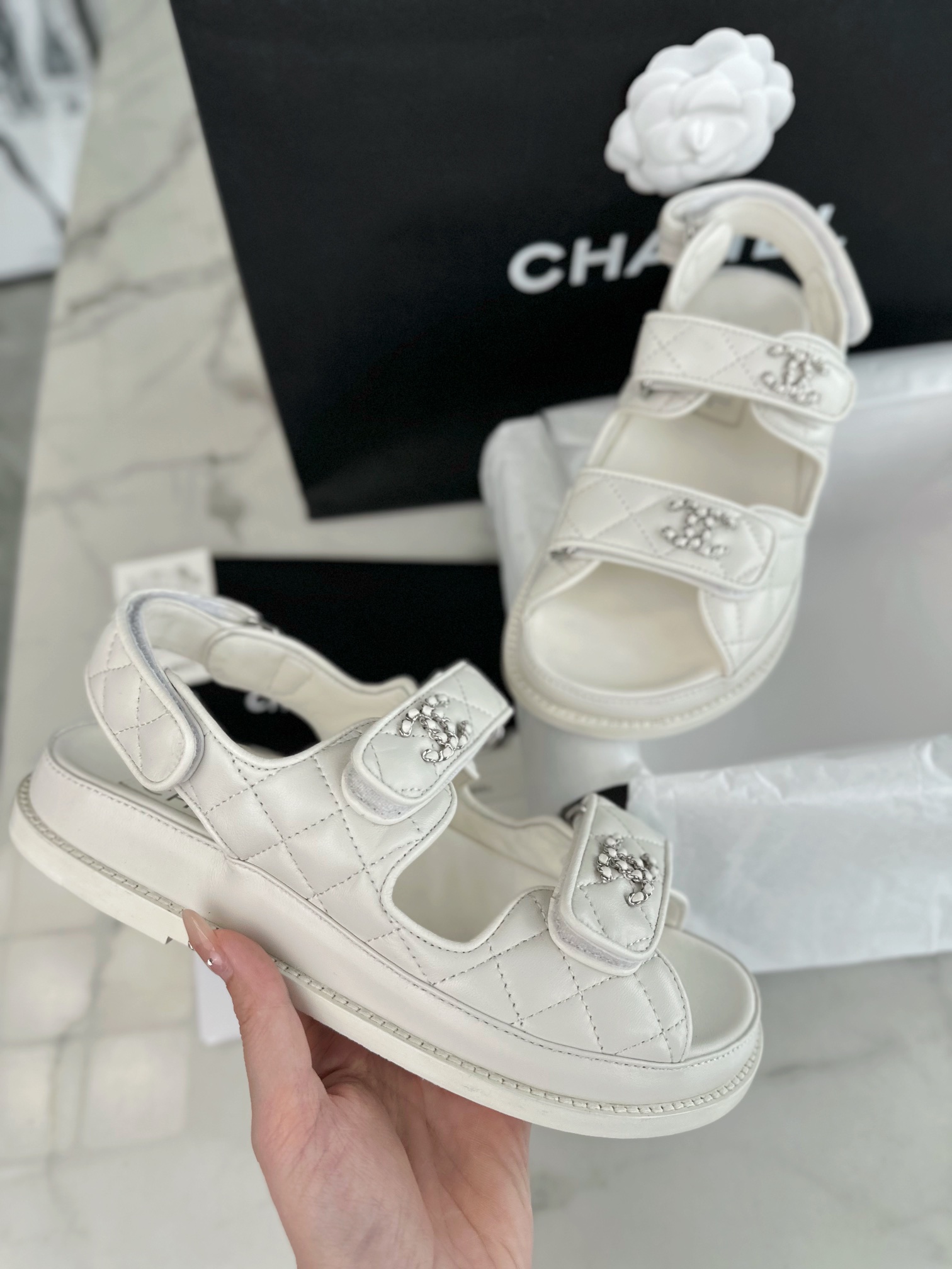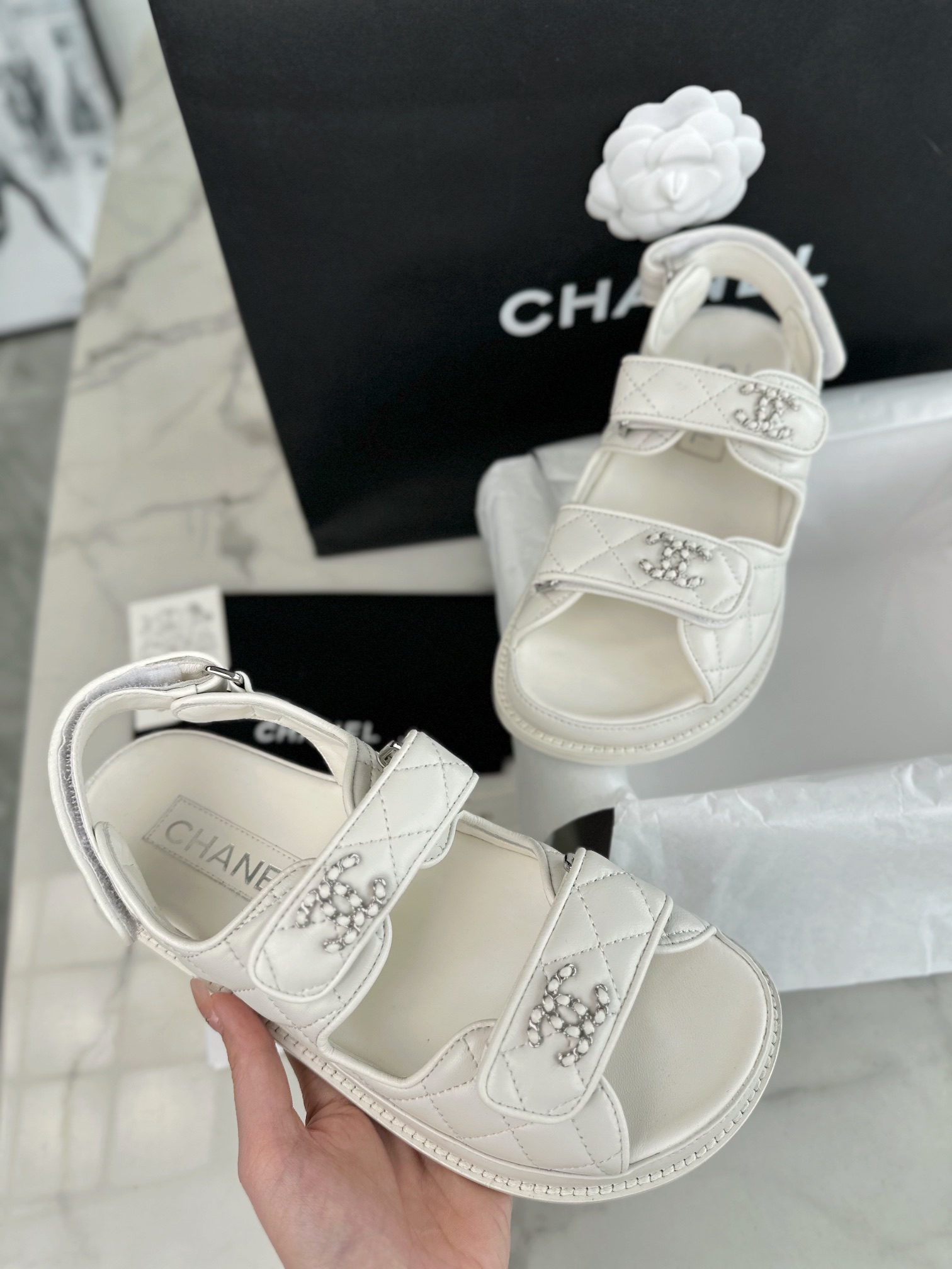 这款鞋子是AAAAA 1:1 质量 (非常棒). 使用了和原版一模一样的材料. 商标部分也保持了和香奈儿/Chanel一样. 图片拍摄是实物鞋子拍摄, 您所收到的实物保证和我们图片一模一样.