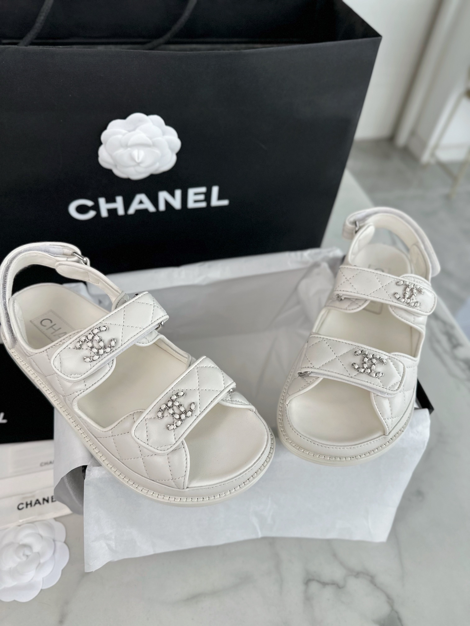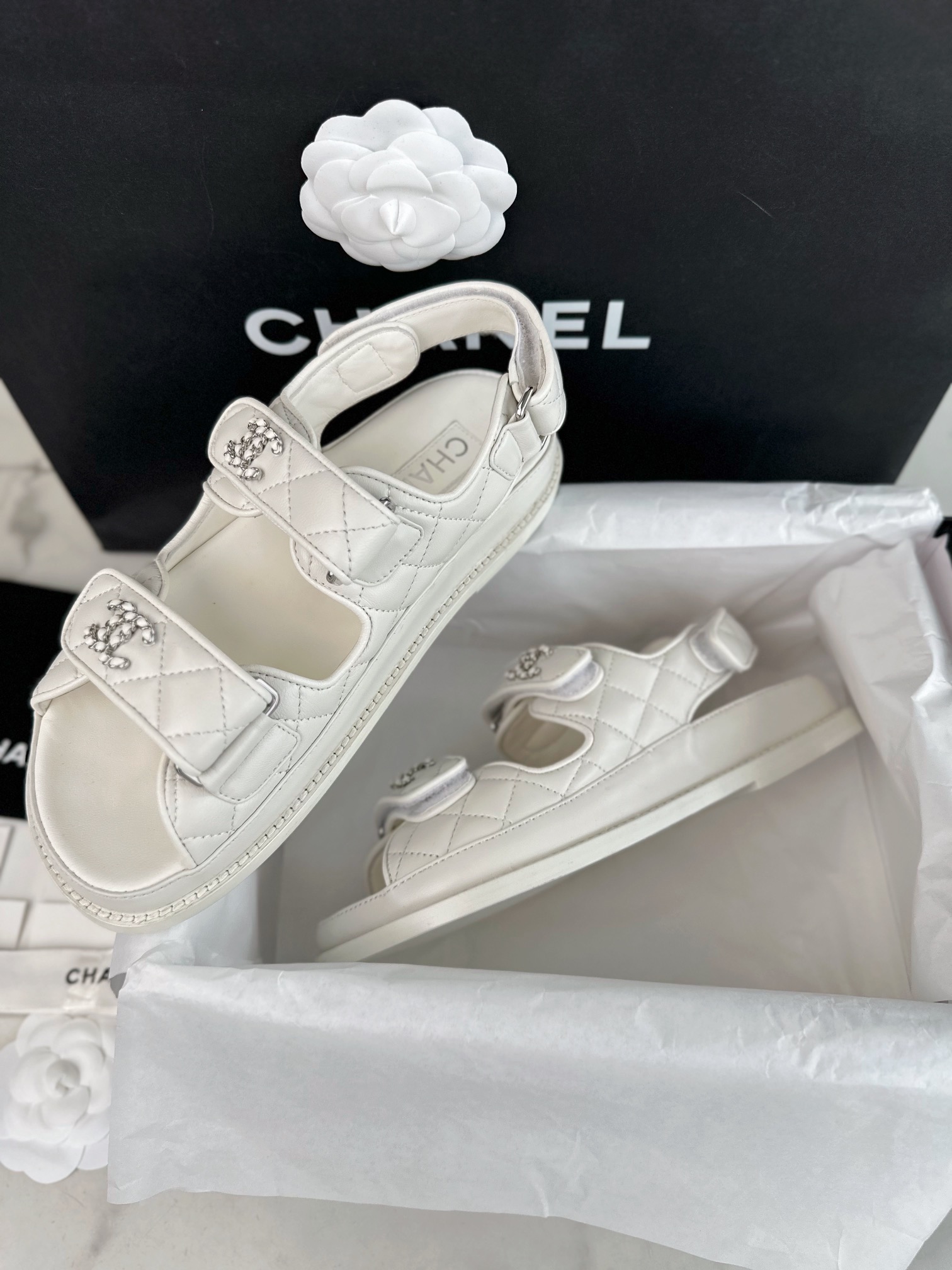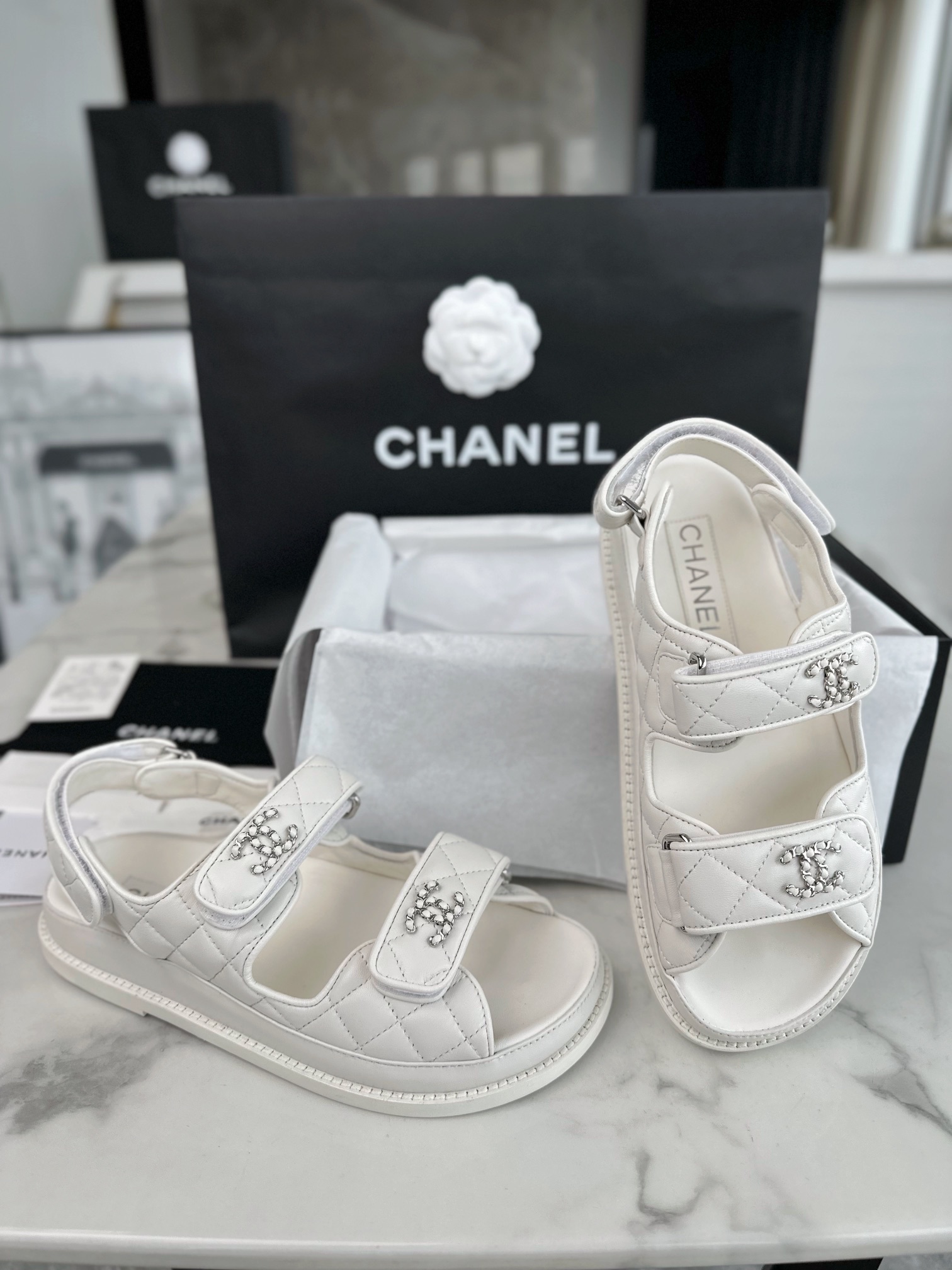 这款鞋子是AAAAA 1:1 质量 (非常棒). 使用了和原版一模一样的材料. 商标部分也保持了和香奈儿/Chanel一样. 图片拍摄是实物鞋子拍摄, 您所收到的实物保证和我们图片一模一样.