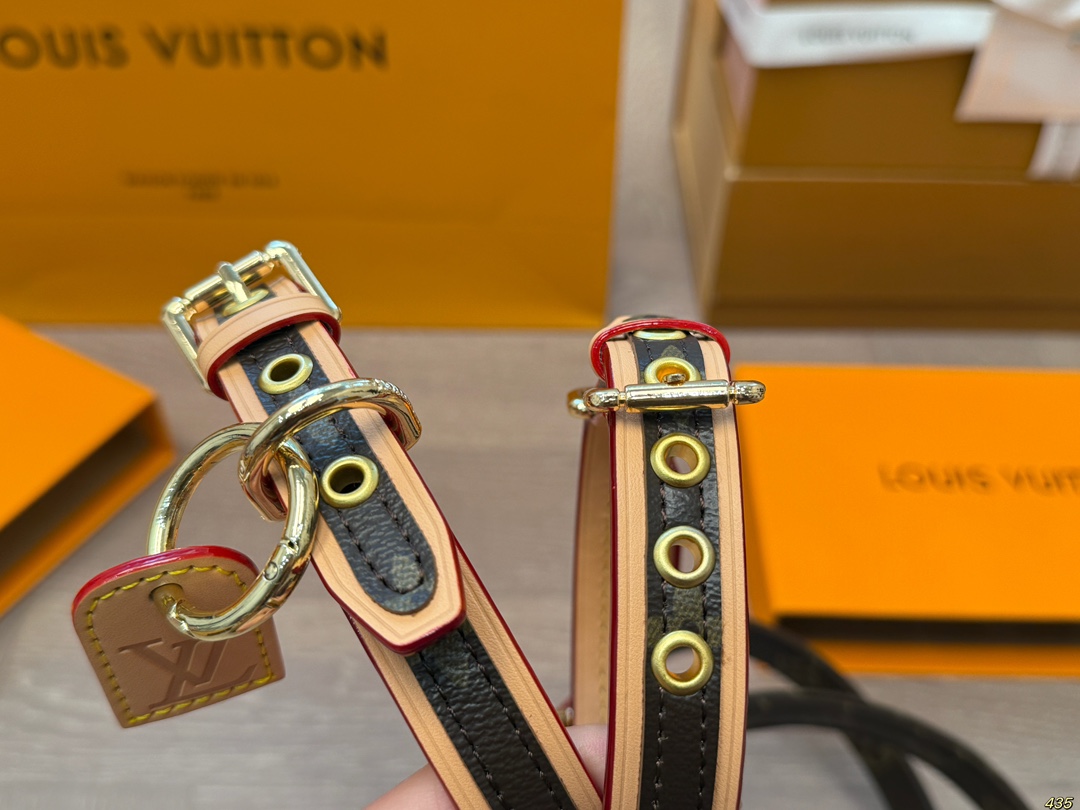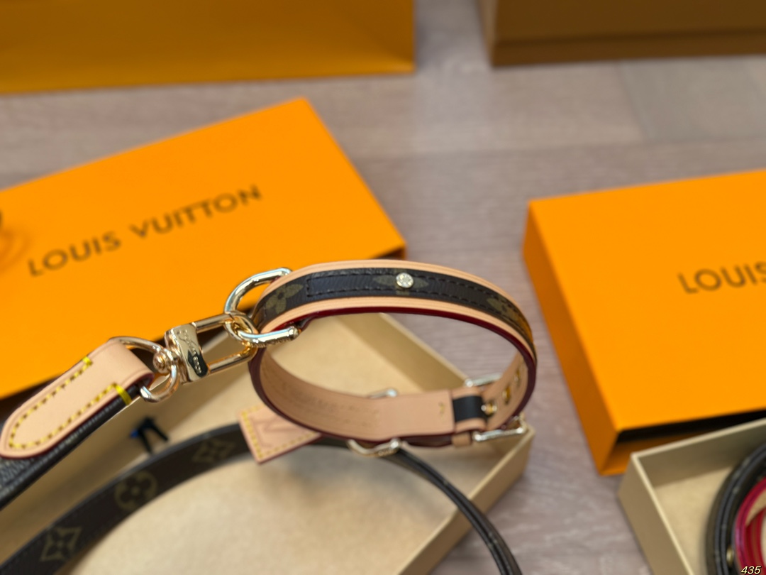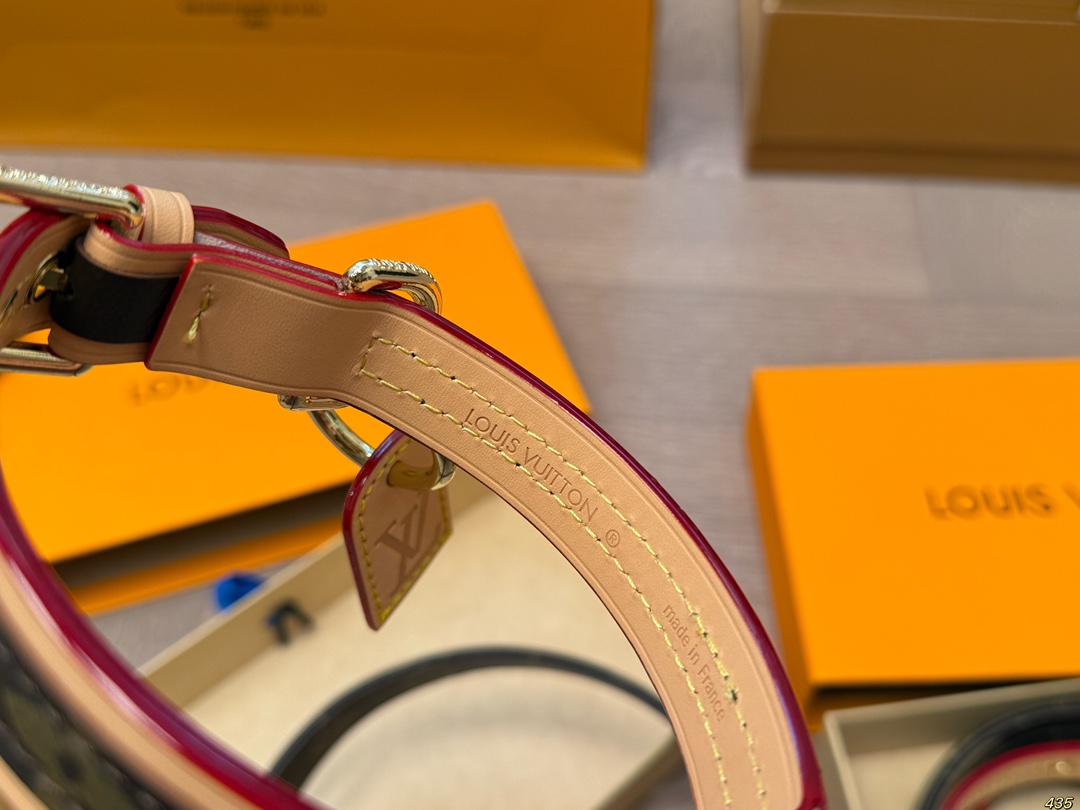 这款pet collars是AAAAA 1:1 质量 (非常棒). 使用了和原版一模一样的材料. 商标部分也保持了和路易威登/Louis Vuitton一样. 图片拍摄是实物pet collars拍摄, 您所收到的实物保证和我们图片一模一样.