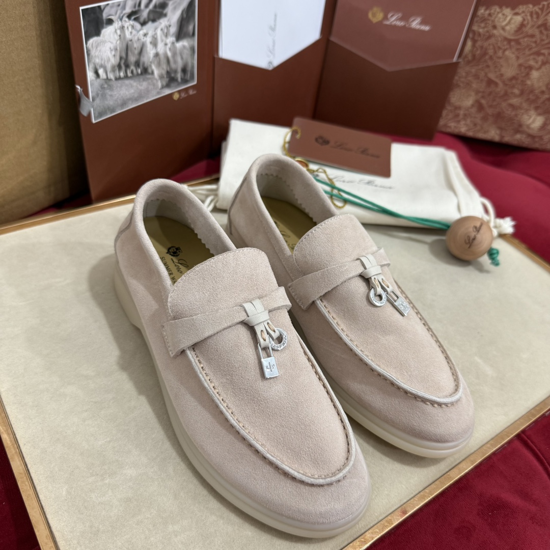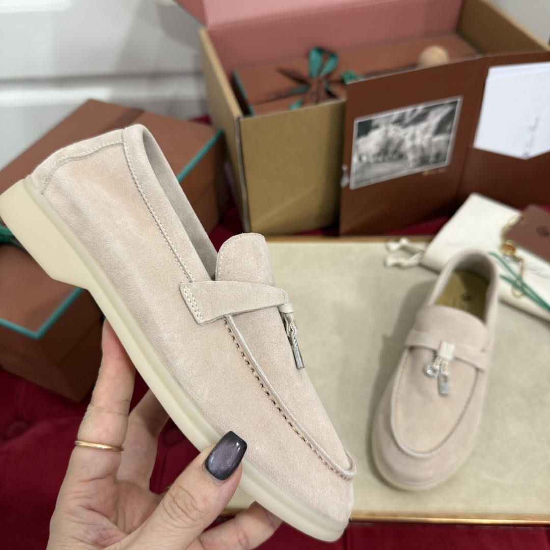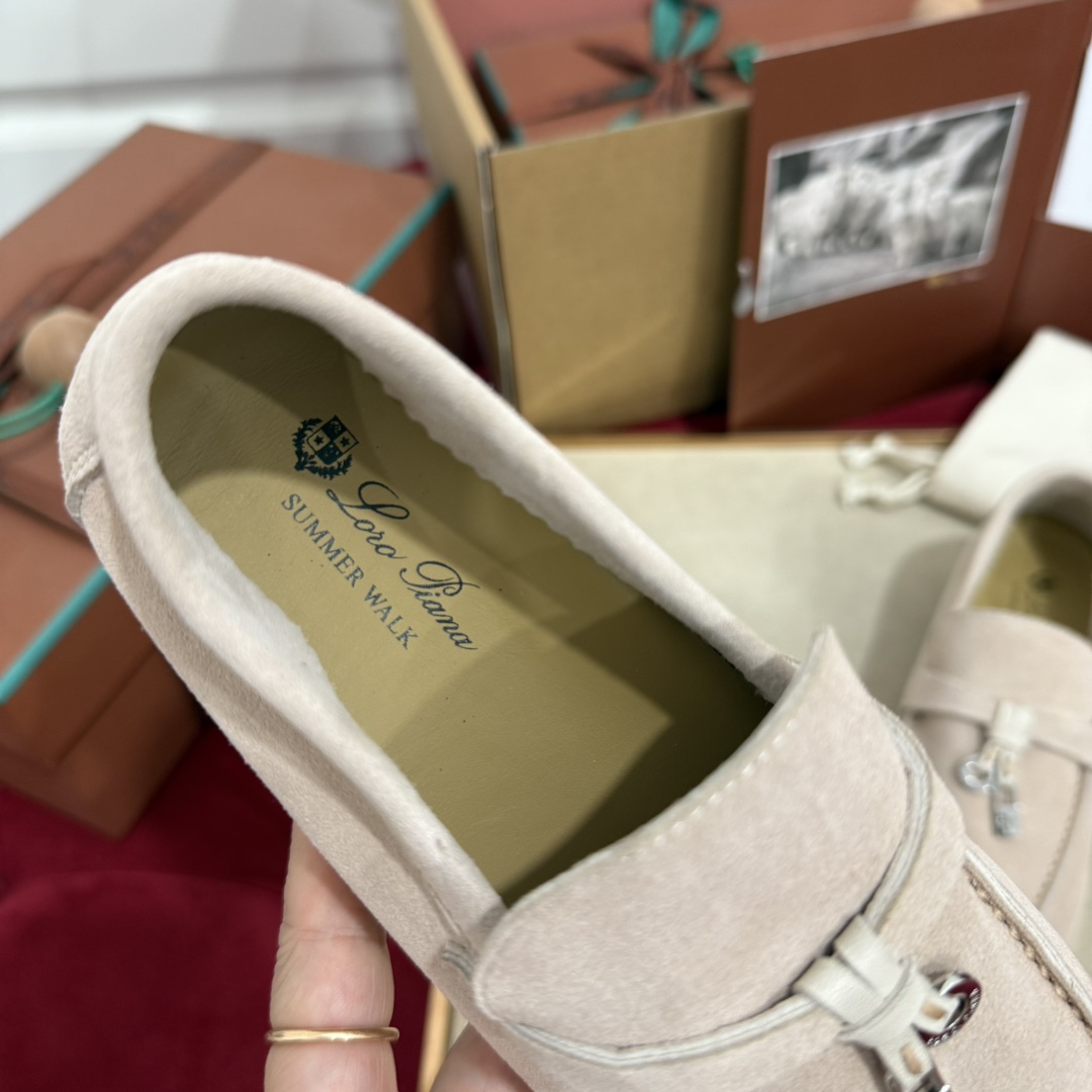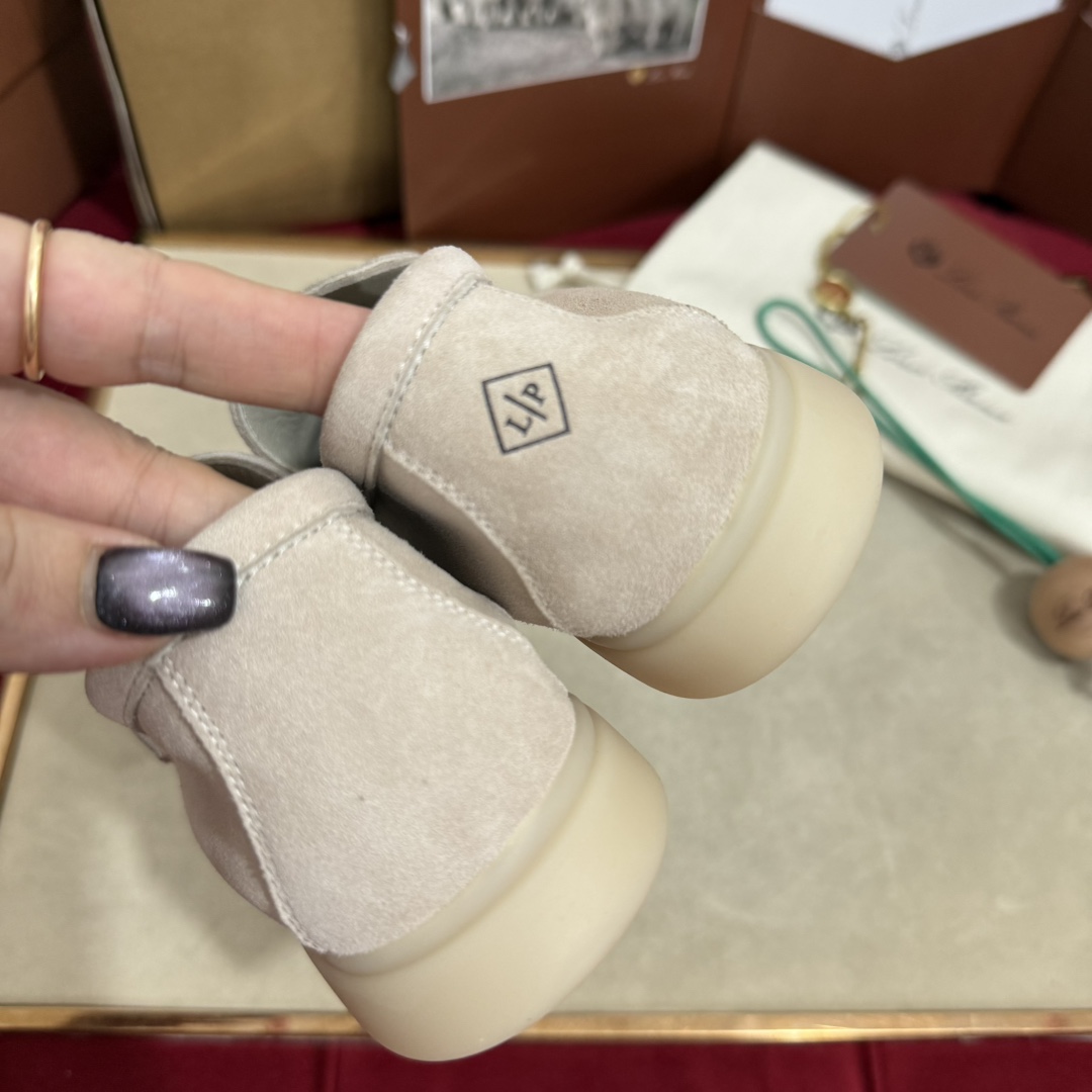 这款兒童鞋是AAAAA 1:1 质量 (非常棒). 使用了和原版一模一样的材料. 商标部分也保持了和洛罗皮亚纳/Loro Piana一样. 图片拍摄是实物兒童鞋拍摄, 您所收到的实物保证和我们图片一模一样.