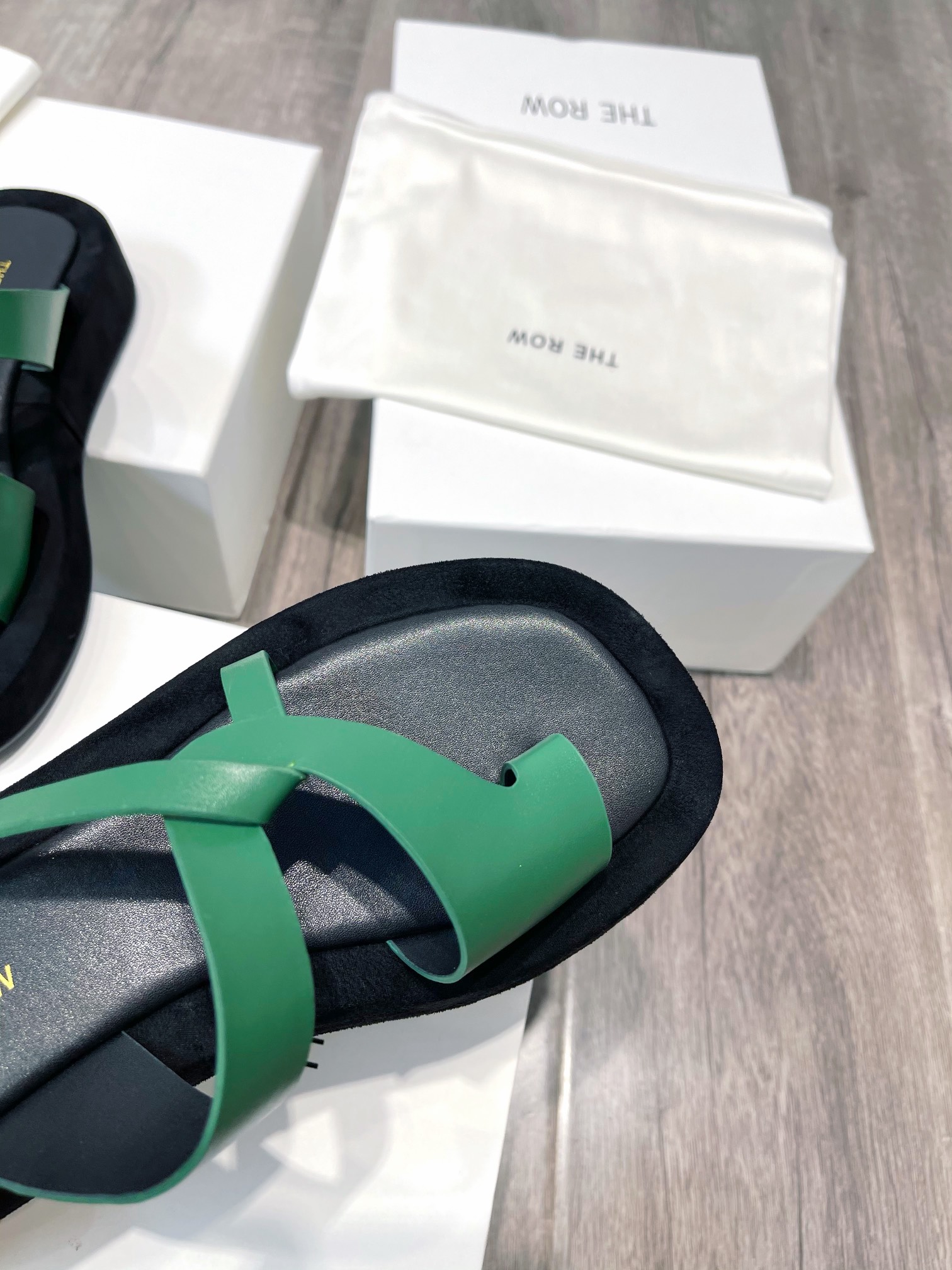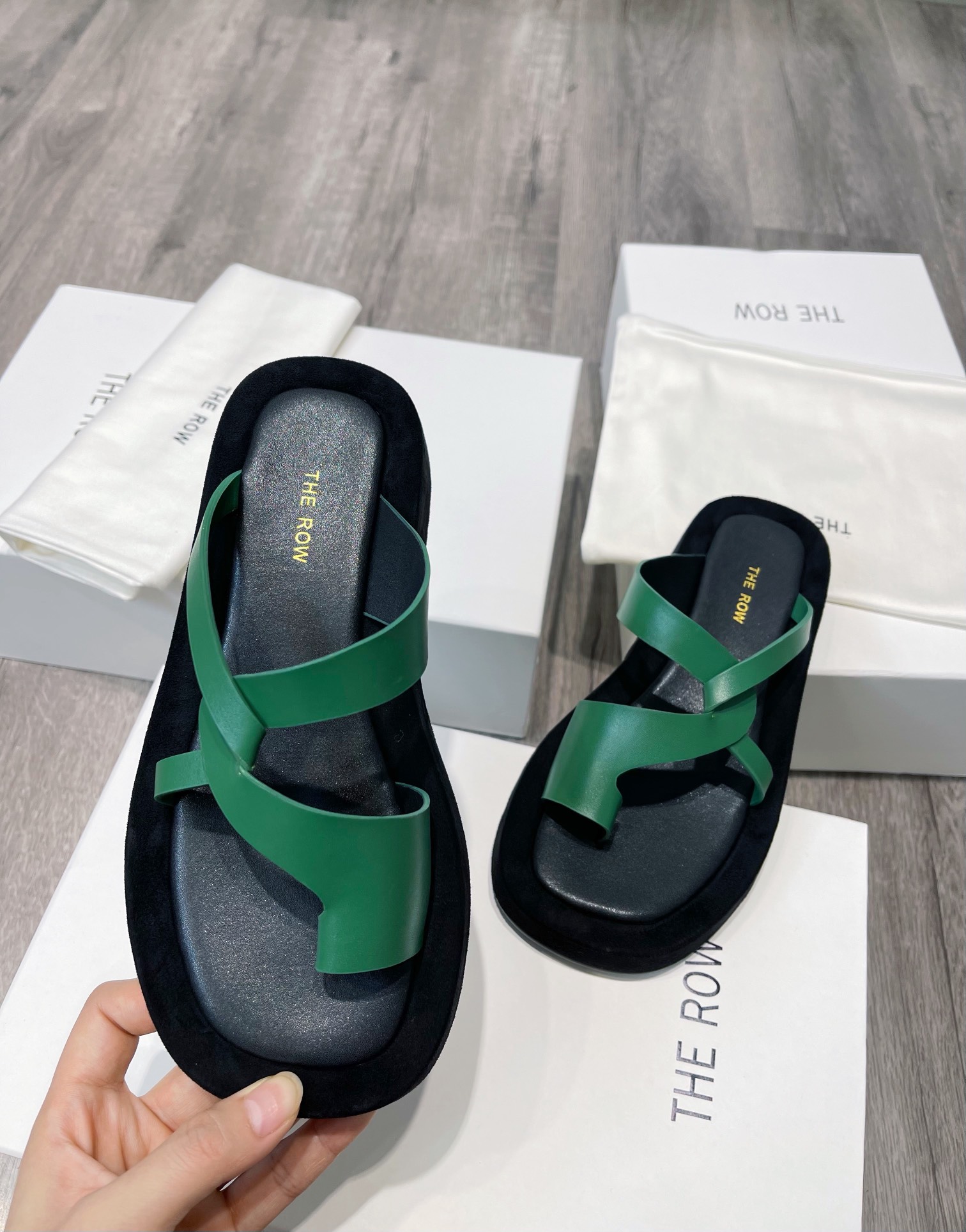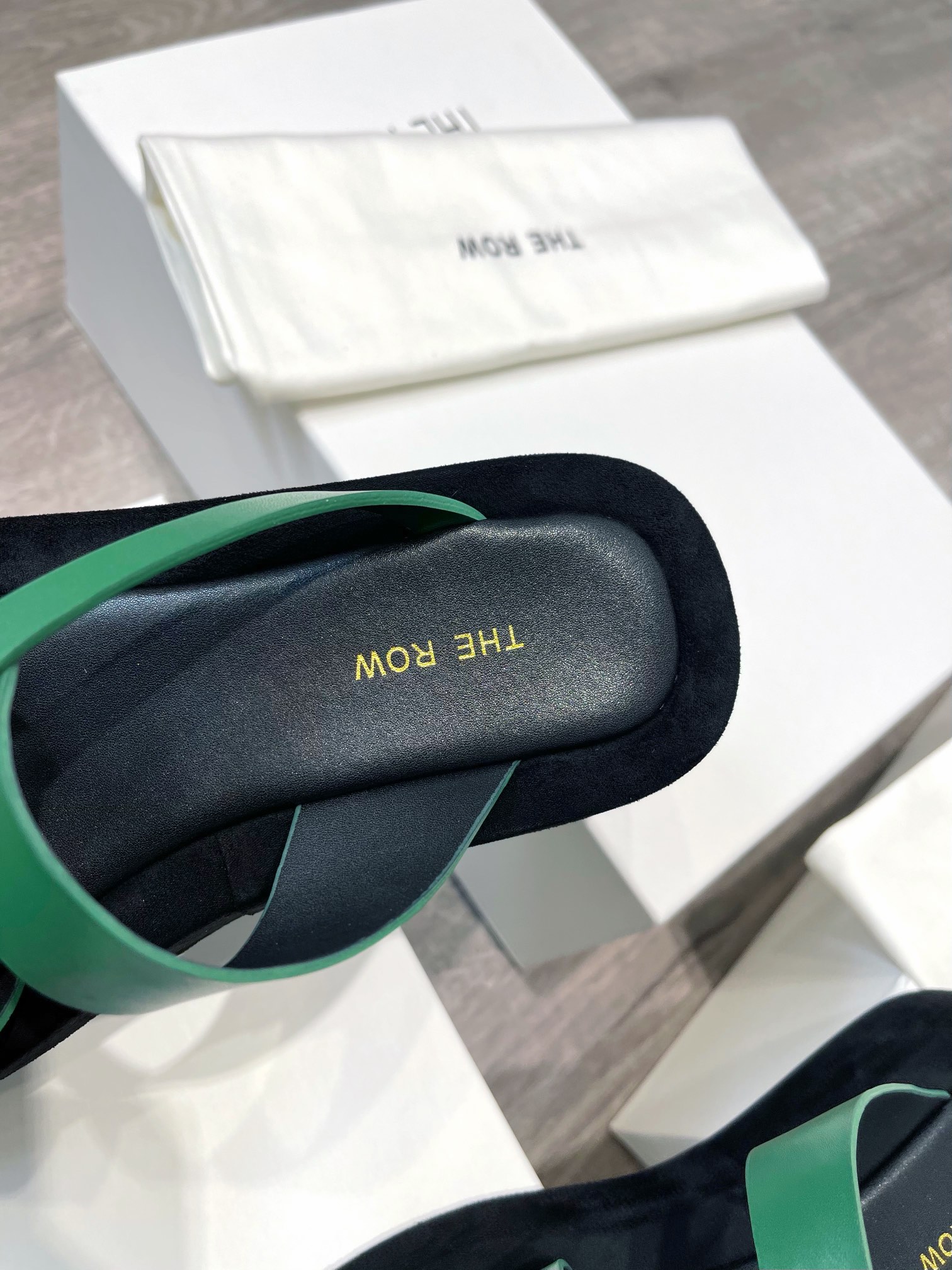 这款鞋子是AAAAA 1:1 质量 (非常棒). 使用了和原版一模一样的材料. 商标部分也保持了和The Row一样. 图片拍摄是实物鞋子拍摄, 您所收到的实物保证和我们图片一模一样.