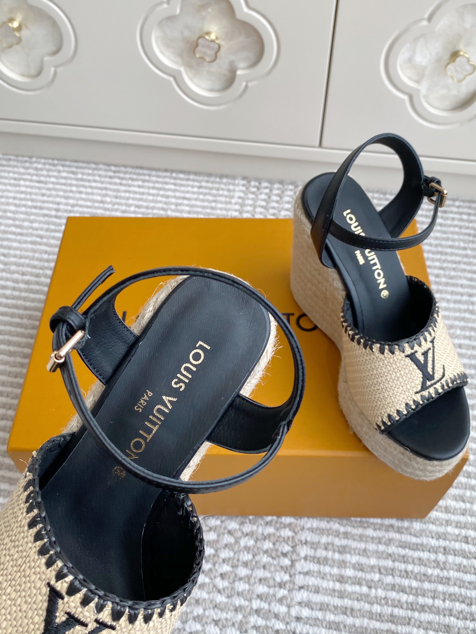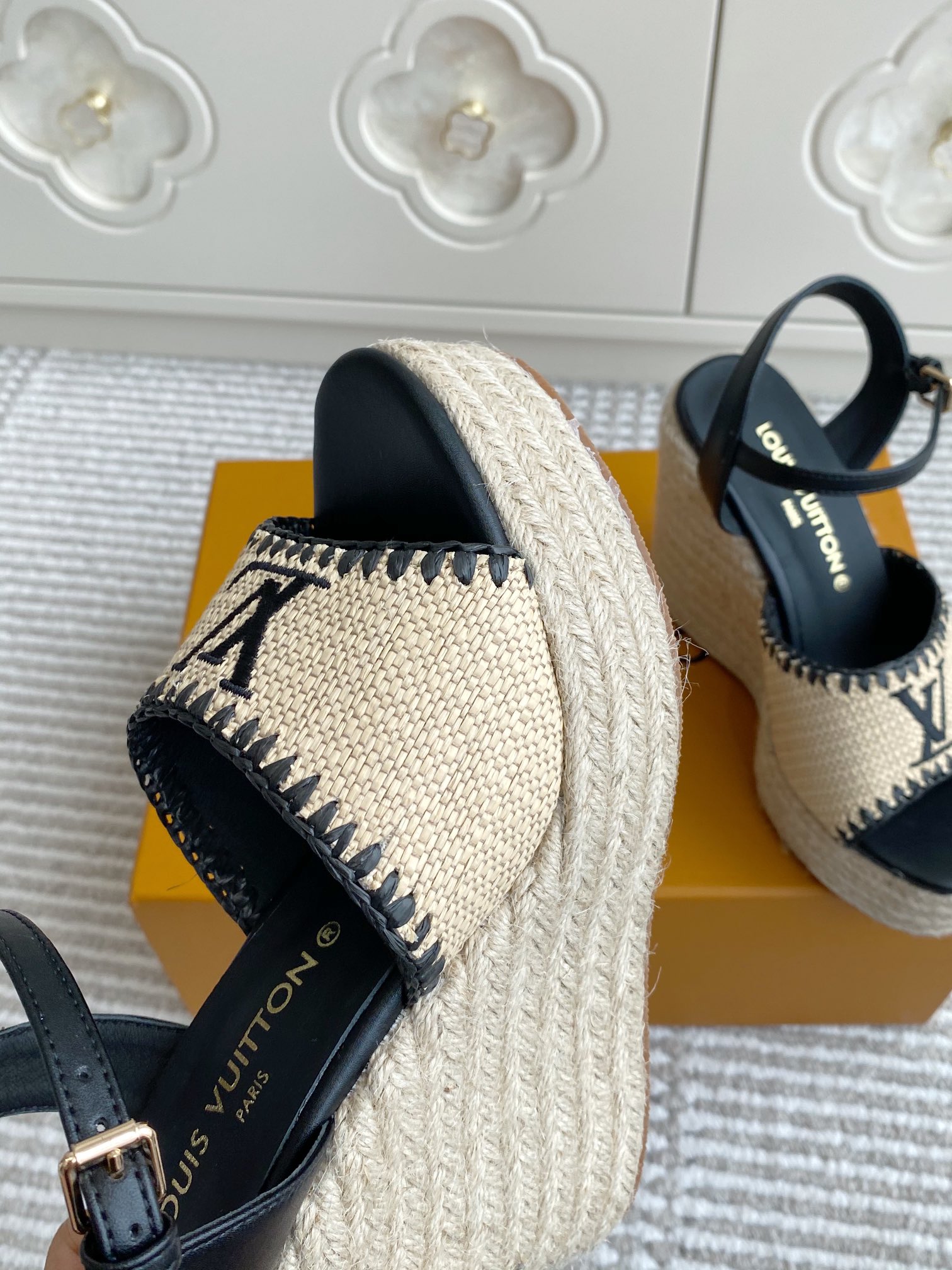 这款鞋子是AAAAA 1:1 质量 (非常棒). 使用了和原版一模一样的材料. 商标部分也保持了和路易威登/Louis Vuitton一样. 图片拍摄是实物鞋子拍摄, 您所收到的实物保证和我们图片一模一样.