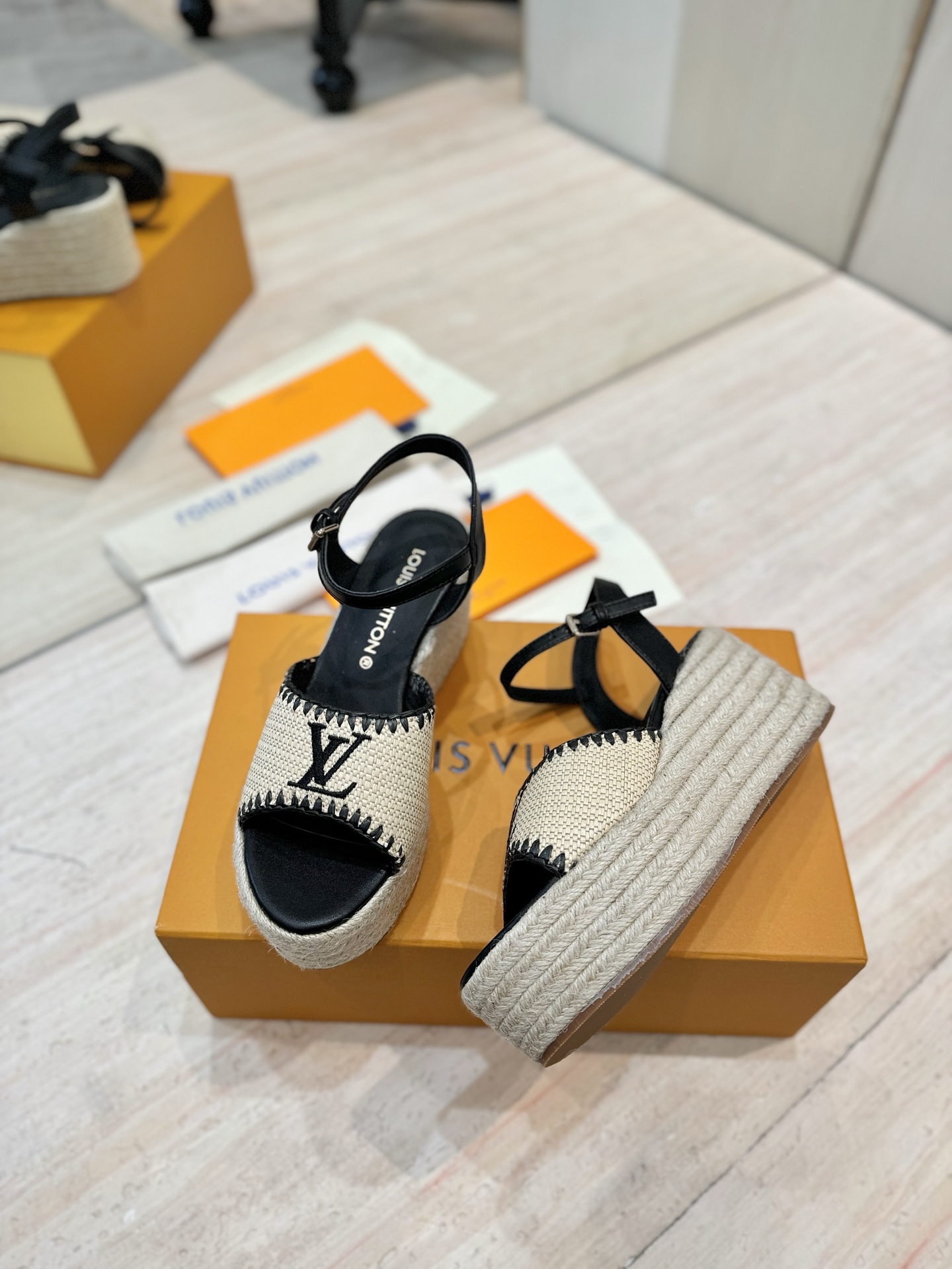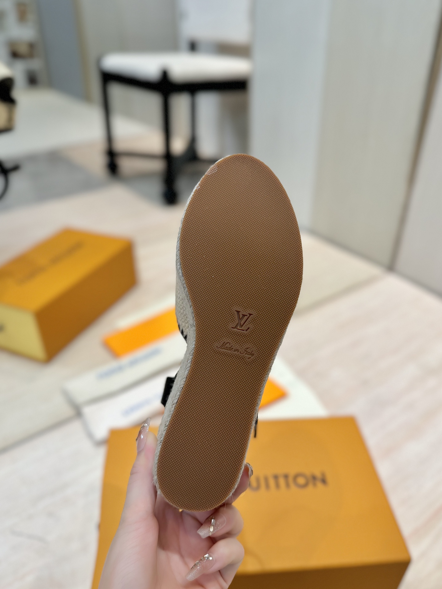 这款鞋子是AAAAA 1:1 质量 (非常棒). 使用了和原版一模一样的材料. 商标部分也保持了和路易威登/Louis Vuitton一样. 图片拍摄是实物鞋子拍摄, 您所收到的实物保证和我们图片一模一样.