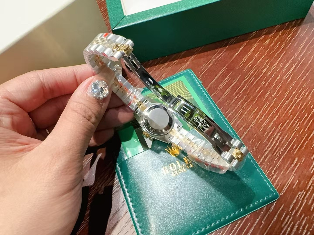 这款手表是AAAAA 1:1 质量 (非常棒). 使用了和原版一模一样的材料. 商标部分也保持了和劳力士/Rolex一样. 图片拍摄是实物手表拍摄, 您所收到的实物保证和我们图片一模一样.