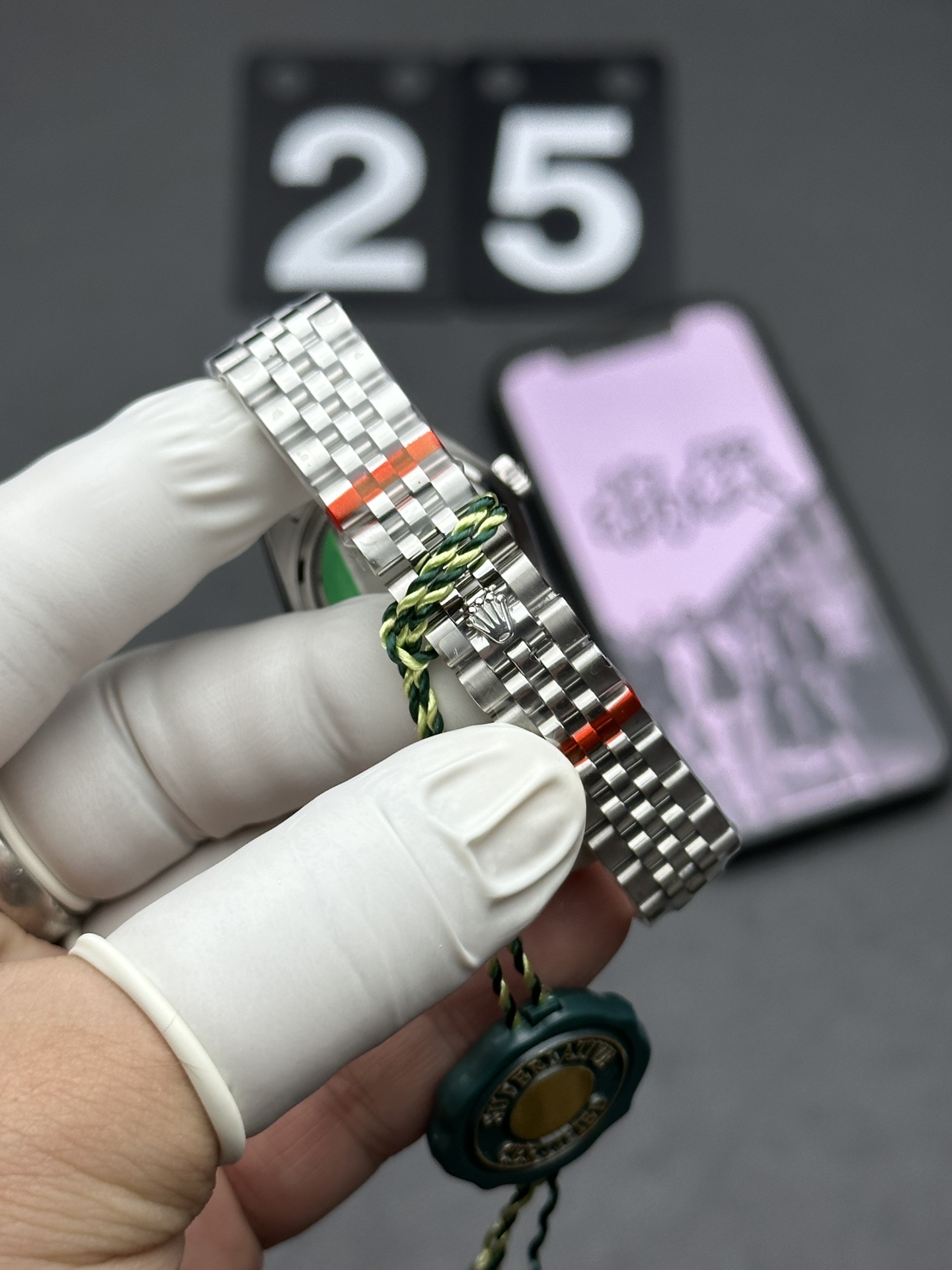 这款手表是AAAAA 1:1 质量 (非常棒). 使用了和原版一模一样的材料. 商标部分也保持了和劳力士/Rolex一样. 图片拍摄是实物手表拍摄, 您所收到的实物保证和我们图片一模一样.