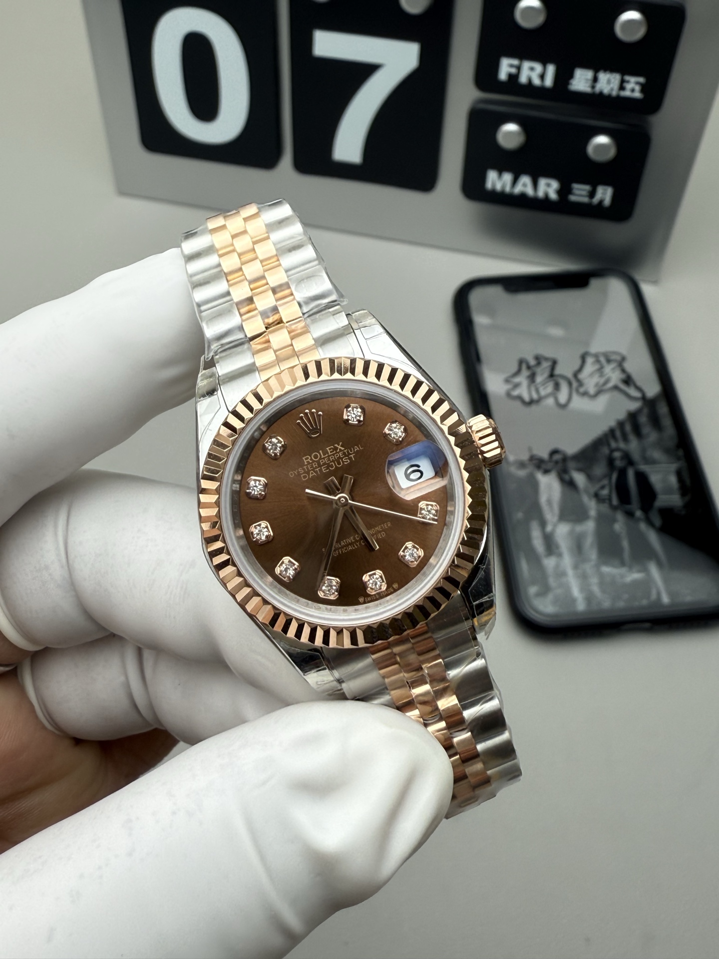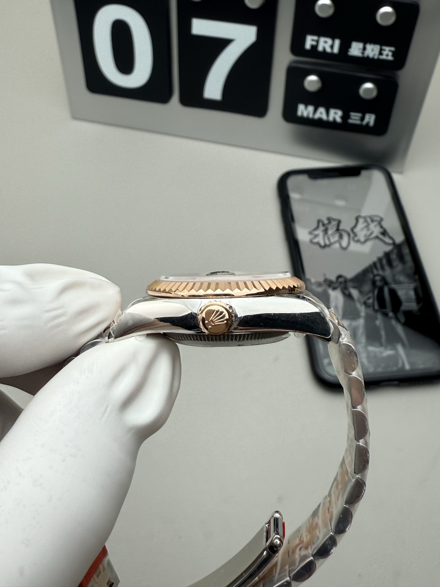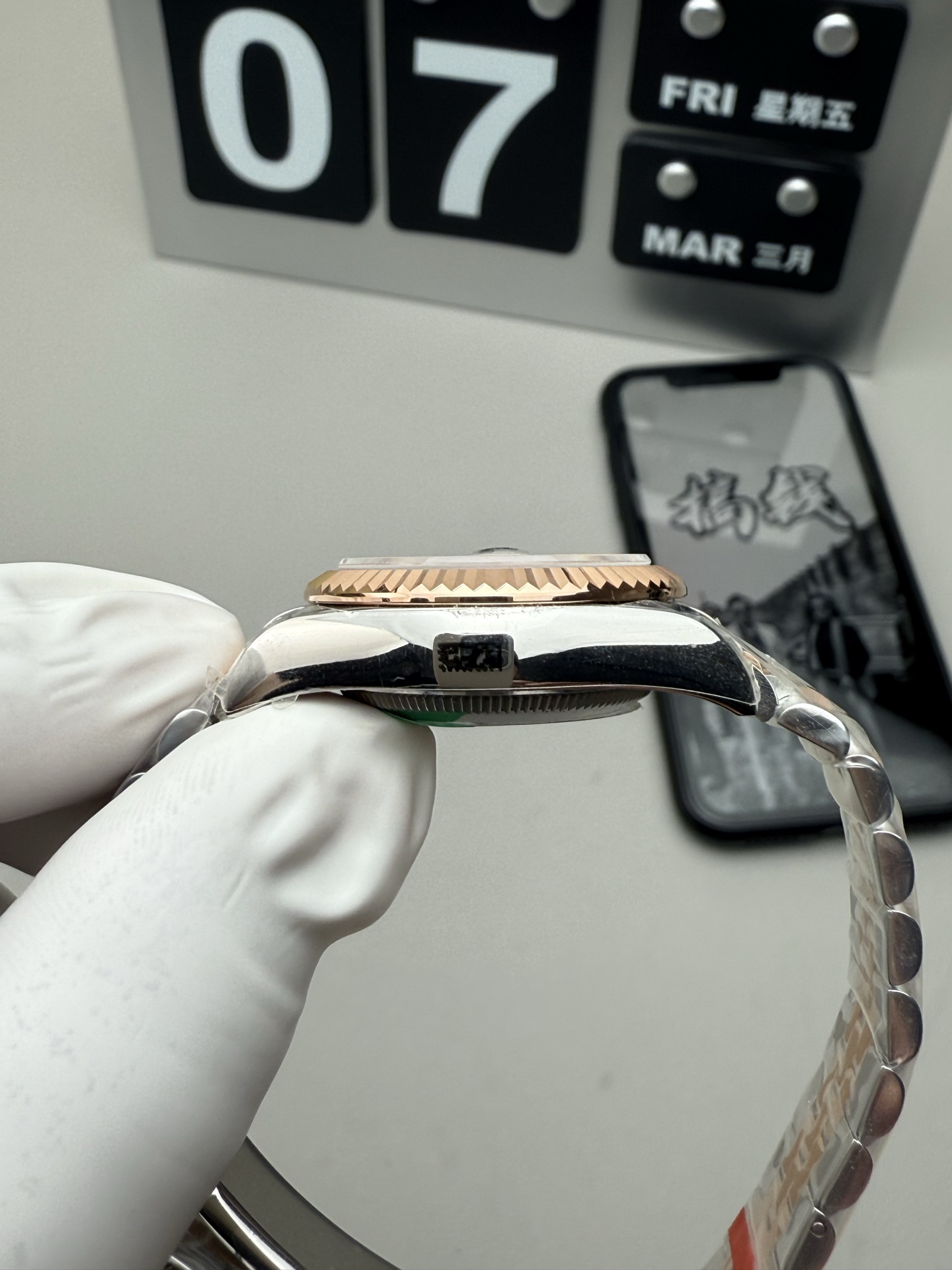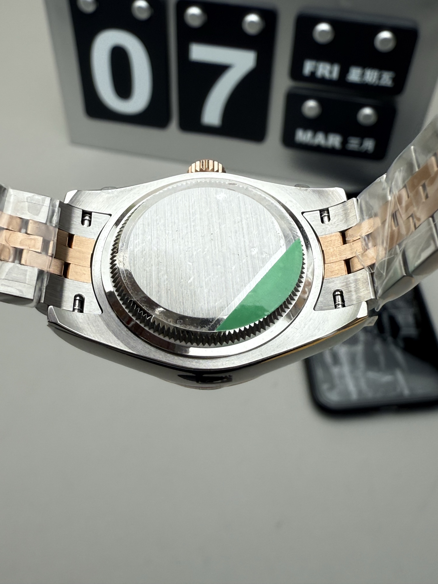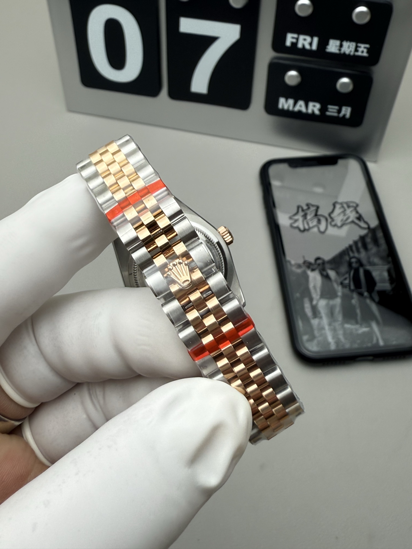 这款手表是AAAAA 1:1 质量 (非常棒). 使用了和原版一模一样的材料. 商标部分也保持了和劳力士/Rolex一样. 图片拍摄是实物手表拍摄, 您所收到的实物保证和我们图片一模一样.