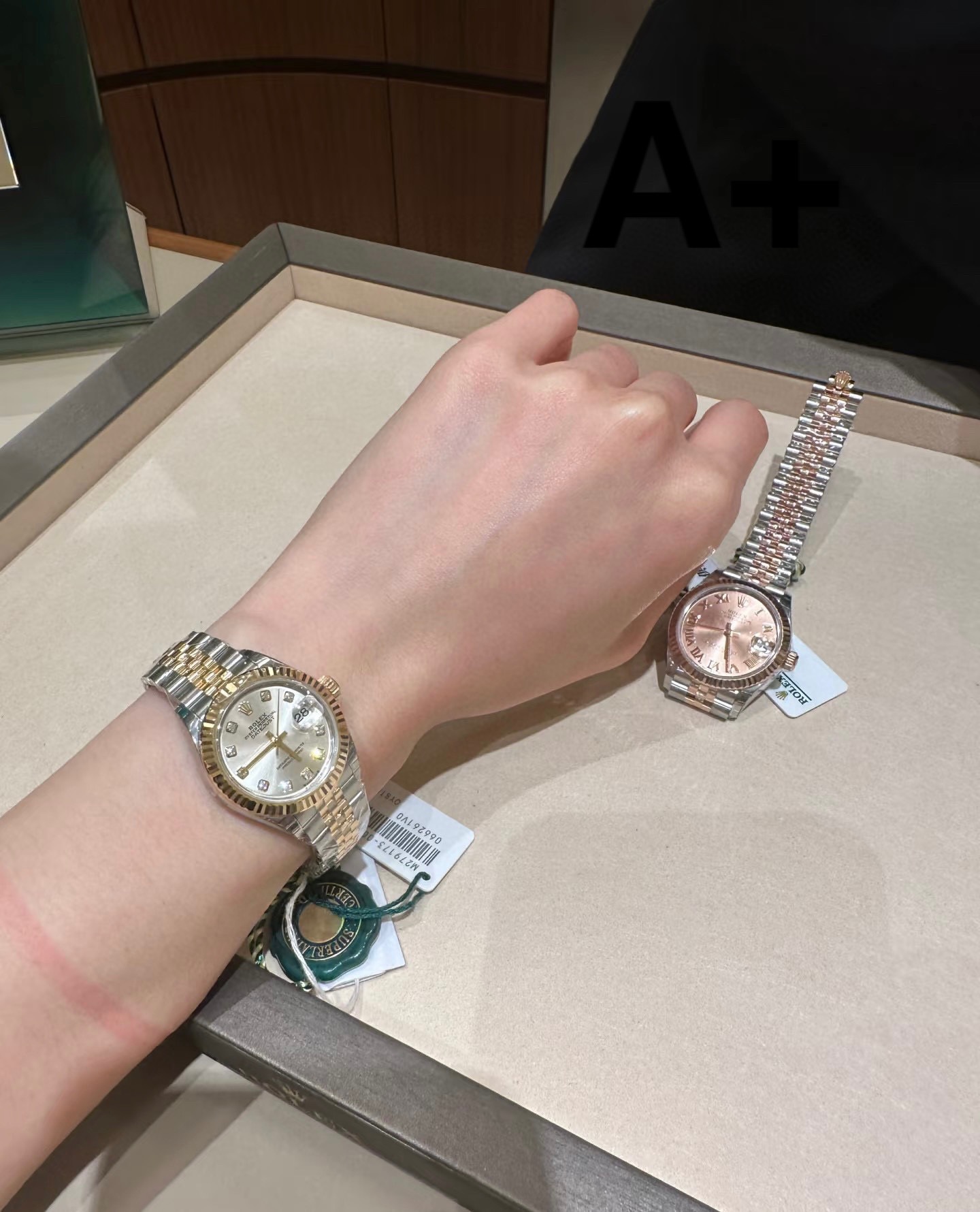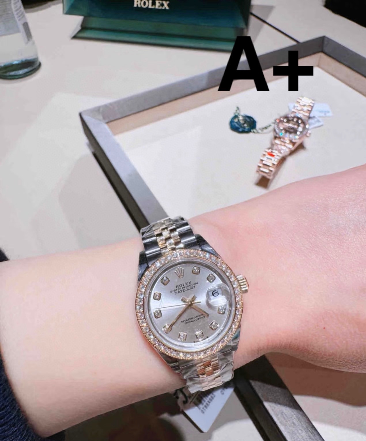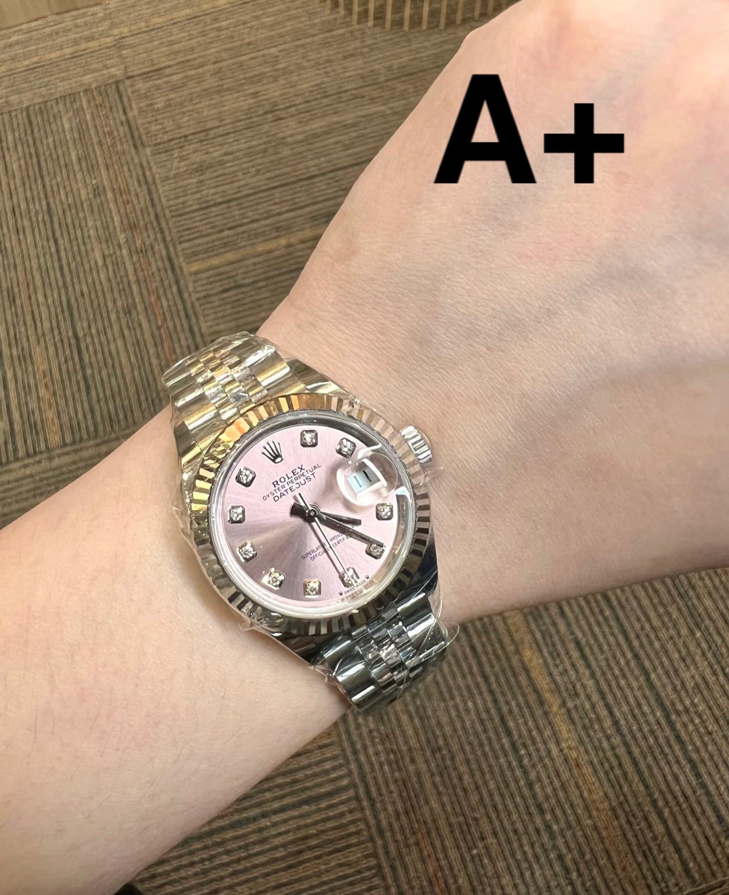 这款手表是AAAAA 1:1 质量 (非常棒). 使用了和原版一模一样的材料. 商标部分也保持了和劳力士/Rolex一样. 图片拍摄是实物手表拍摄, 您所收到的实物保证和我们图片一模一样.