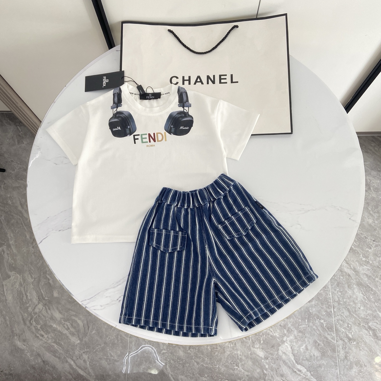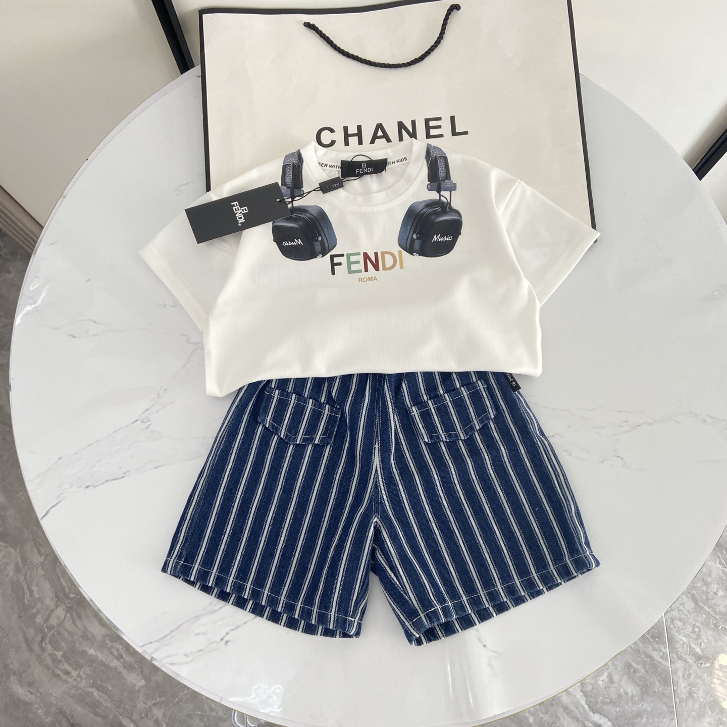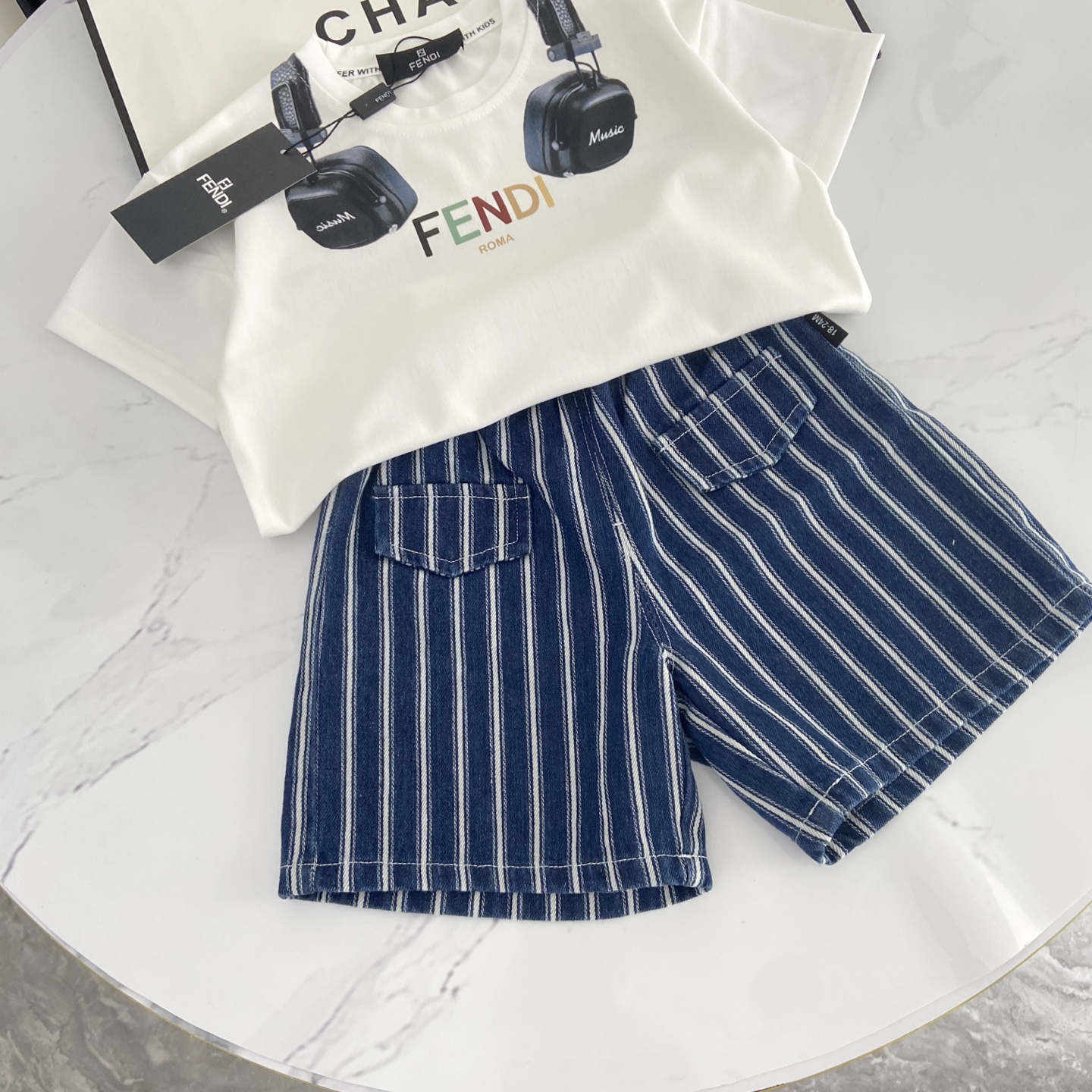 这款children's clothes是AAAAA 1:1 质量 (非常棒). 使用了和原版一模一样的材料. 商标部分也保持了和芬迪/Fendi一样. 图片拍摄是实物children's clothes拍摄, 您所收到的实物保证和我们图片一模一样.