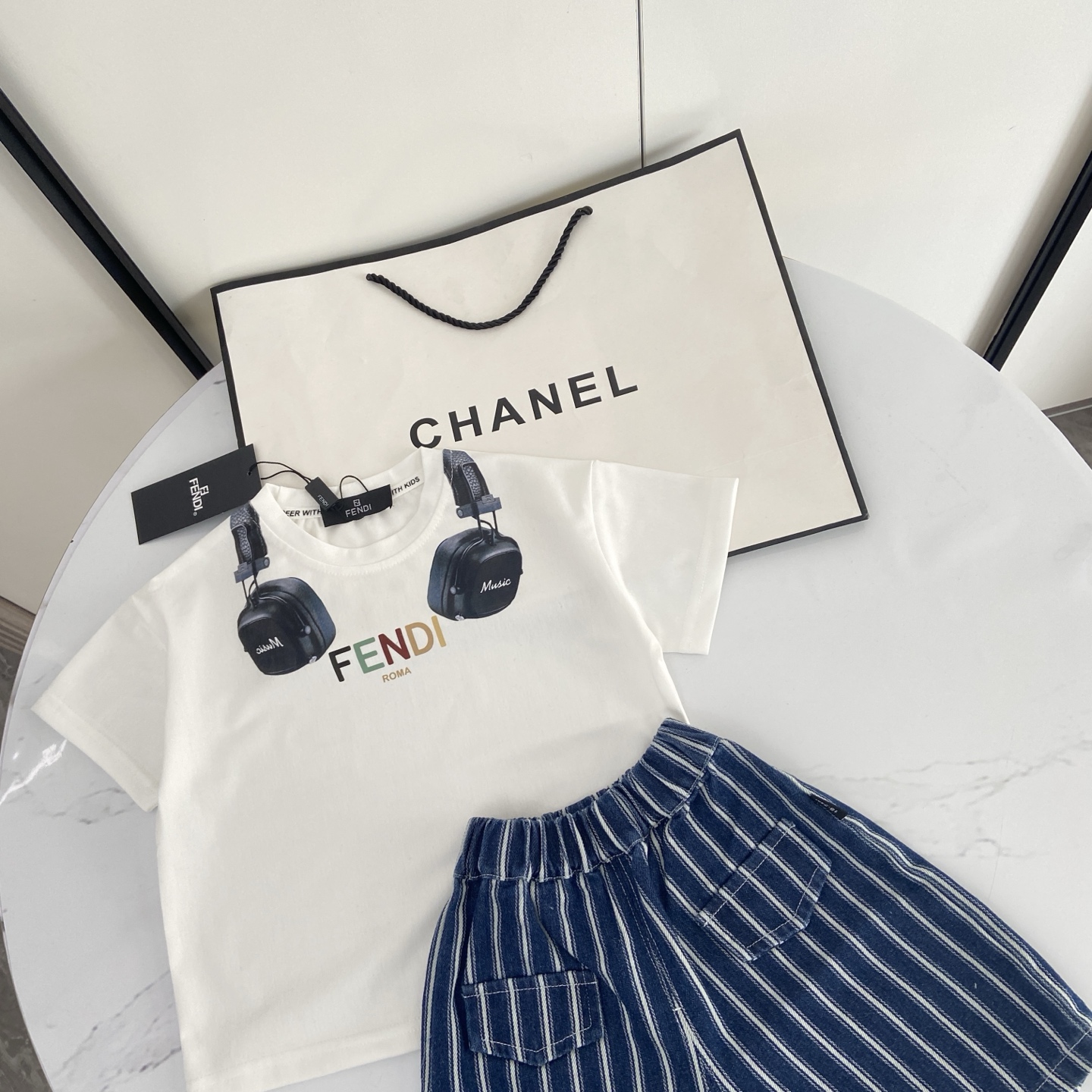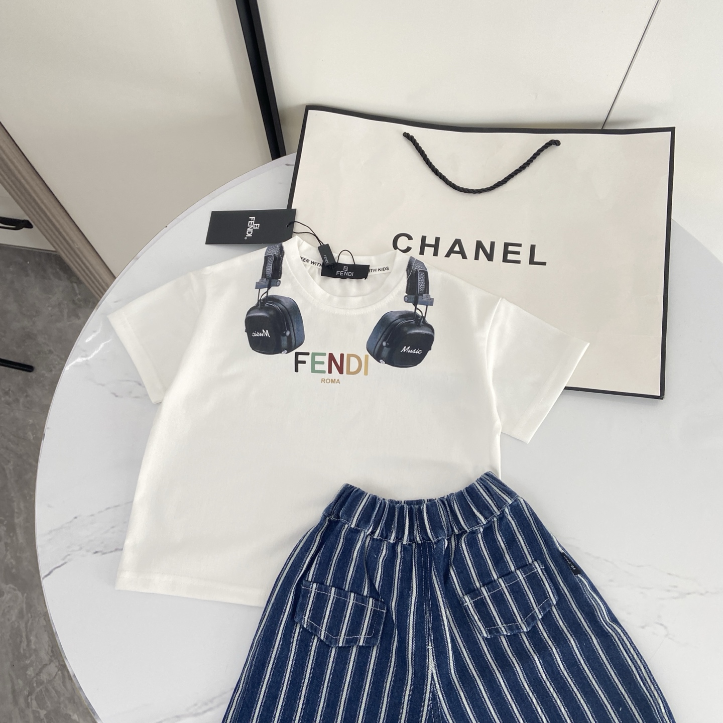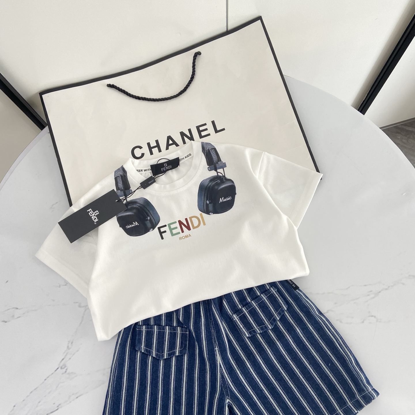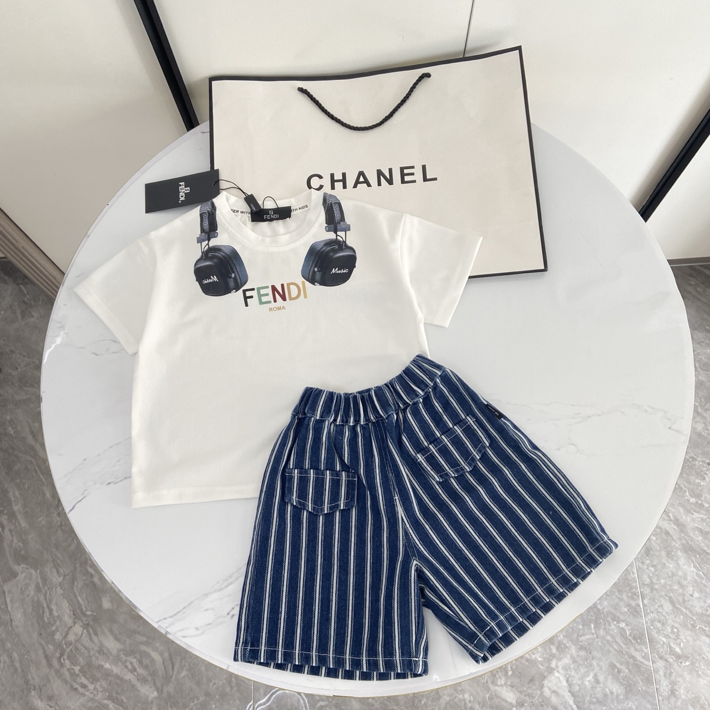 这款children's clothes是AAAAA 1:1 质量 (非常棒). 使用了和原版一模一样的材料. 商标部分也保持了和芬迪/Fendi一样. 图片拍摄是实物children's clothes拍摄, 您所收到的实物保证和我们图片一模一样.
