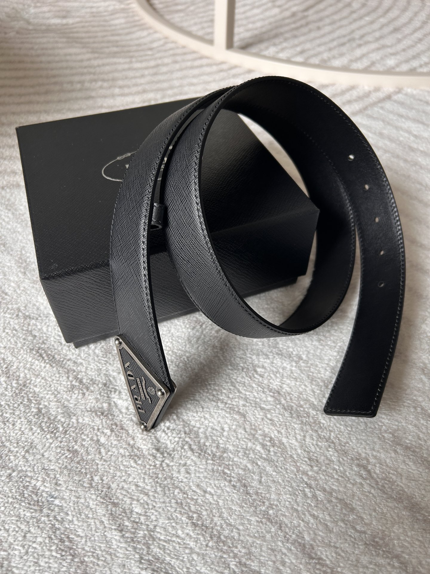这款皮带是AAAAA 1:1 质量 (非常棒). 使用了和原版一模一样的材料. 商标部分也保持了和普拉达/Prada一样. 图片拍摄是实物皮带拍摄, 您所收到的实物保证和我们图片一模一样.