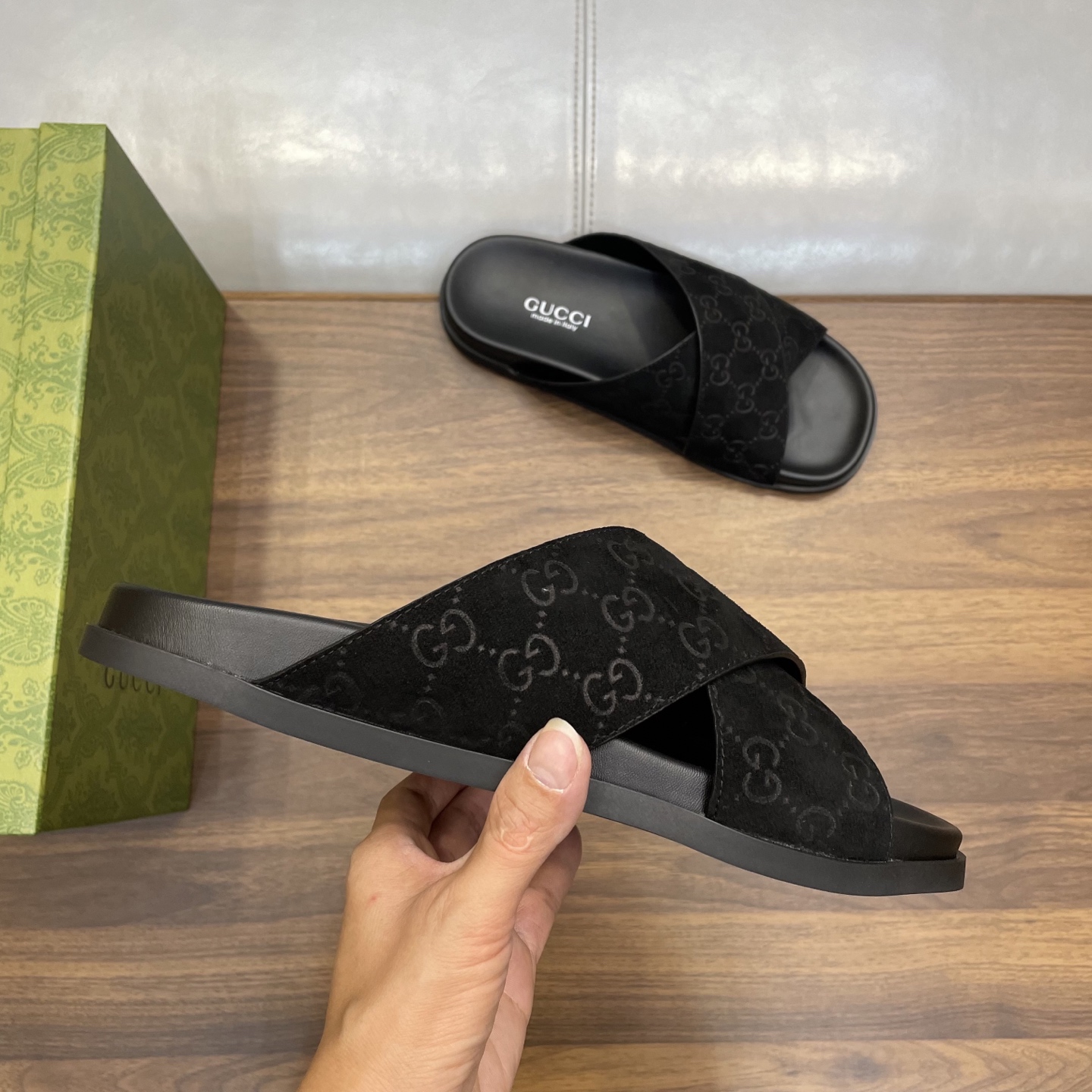 这款鞋子是AAAAA 1:1 质量 (非常棒). 使用了和原版一模一样的材料. 商标部分也保持了和古奇/Gucci一样. 图片拍摄是实物鞋子拍摄, 您所收到的实物保证和我们图片一模一样.