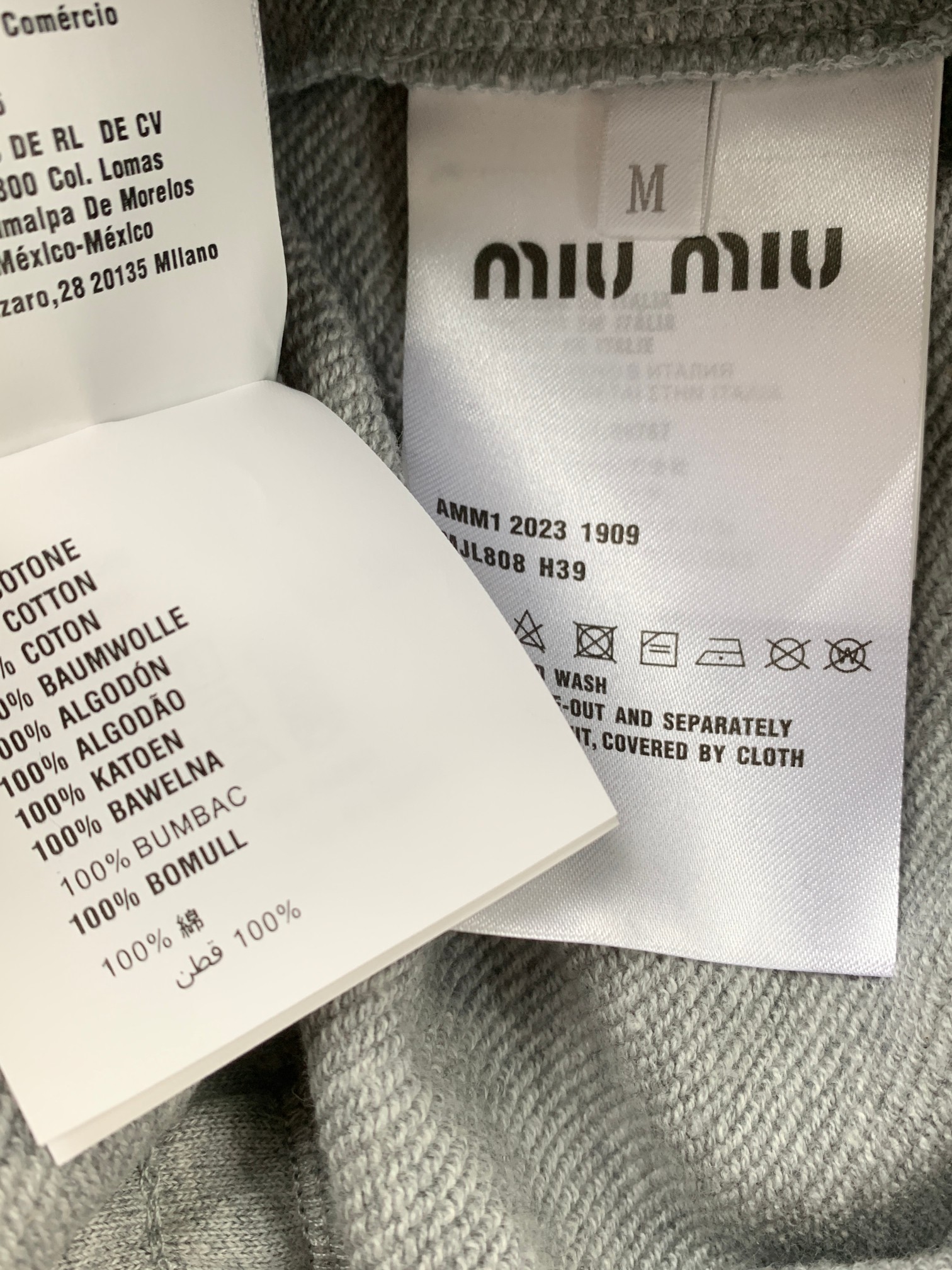 这款衣服是AAAAA 1:1 质量 (非常棒). 使用了和原版一模一样的材料. 商标部分也保持了和缪缪/Miu Miu一样. 图片拍摄是实物衣服拍摄, 您所收到的实物保证和我们图片一模一样.