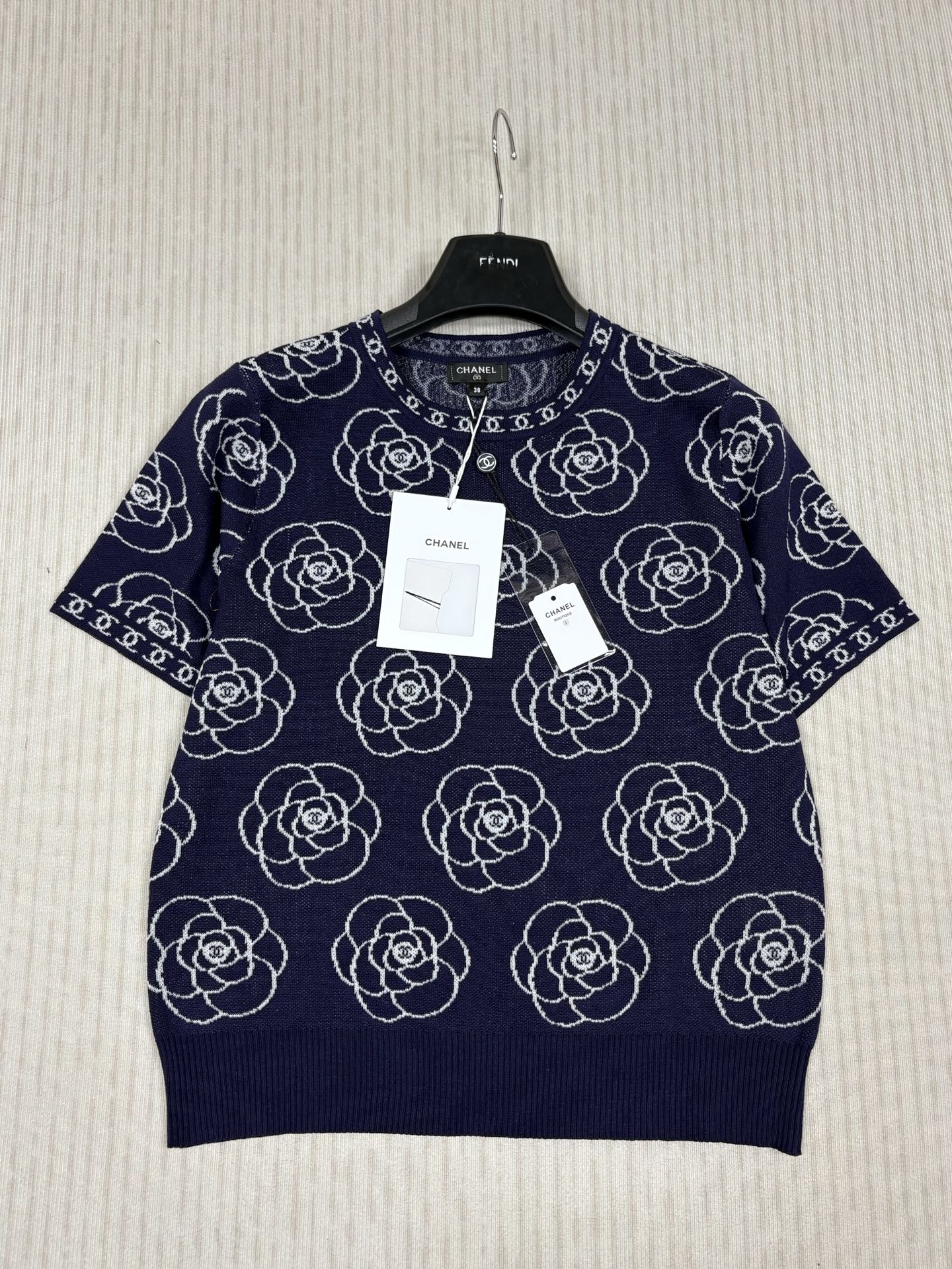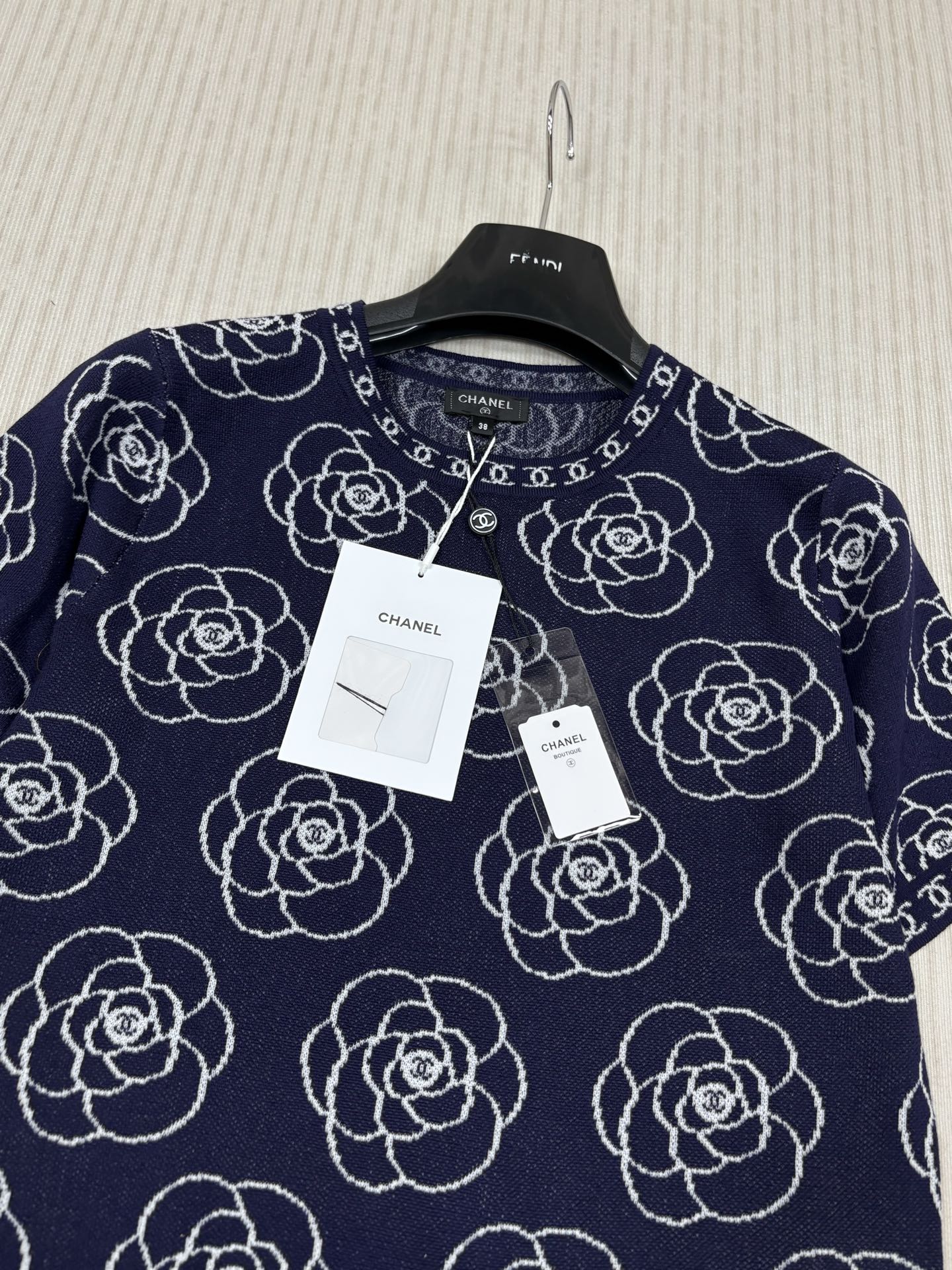 这款衣服是AAAAA 1:1 质量 (非常棒). 使用了和原版一模一样的材料. 商标部分也保持了和香奈儿/Chanel一样. 图片拍摄是实物衣服拍摄, 您所收到的实物保证和我们图片一模一样.