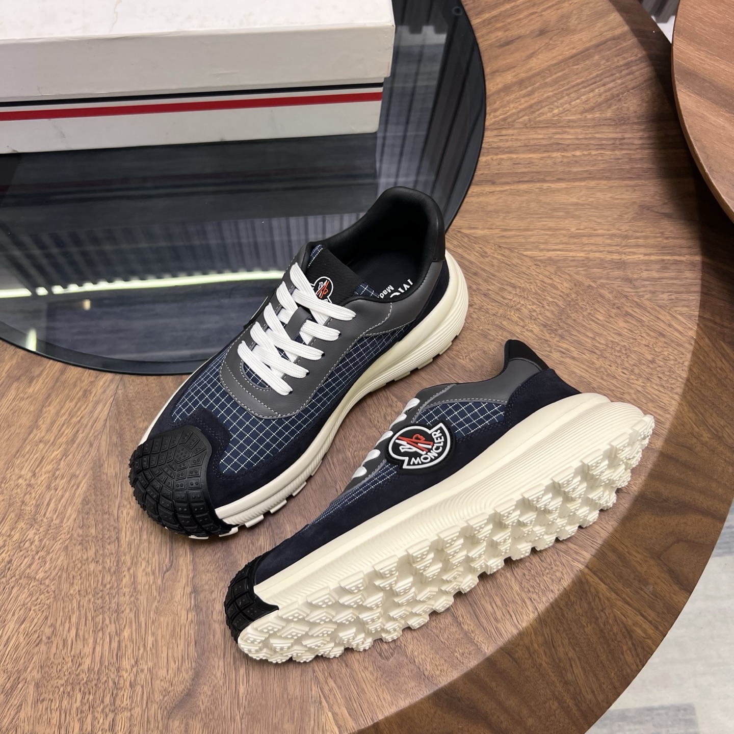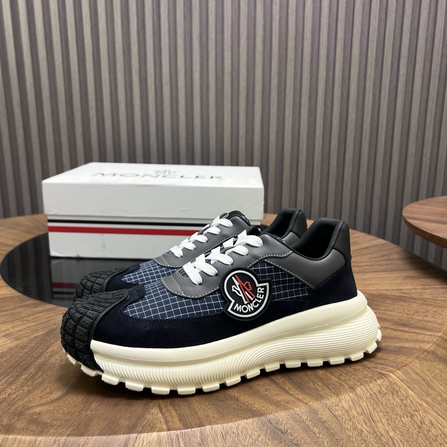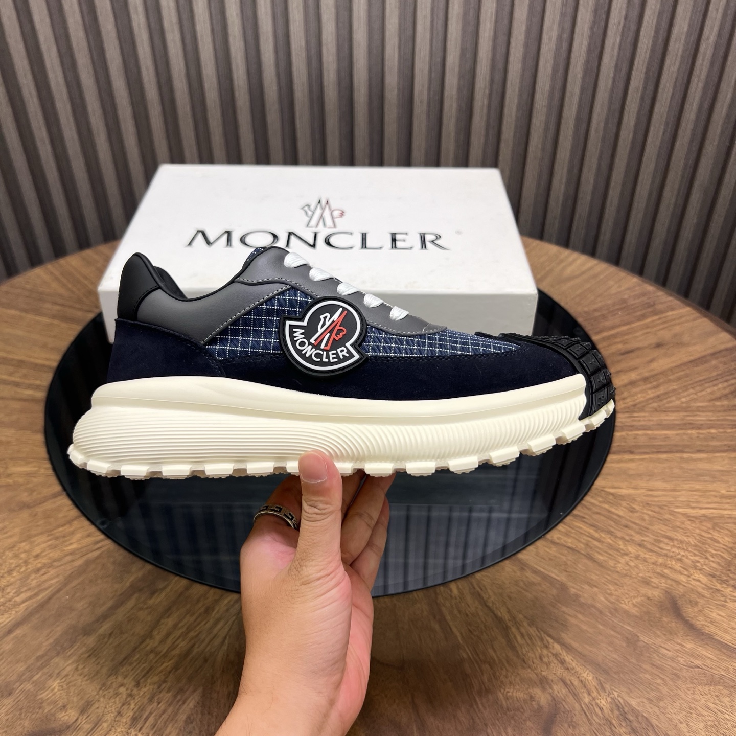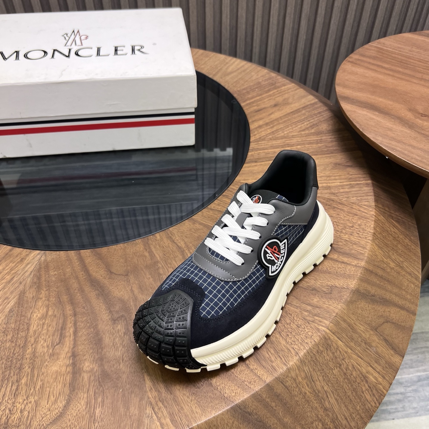 这款鞋子是AAAAA 1:1 质量 (非常棒). 使用了和原版一模一样的材料. 商标部分也保持了和盟可睐/moncler一样. 图片拍摄是实物鞋子拍摄, 您所收到的实物保证和我们图片一模一样.