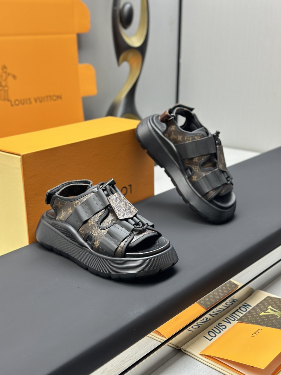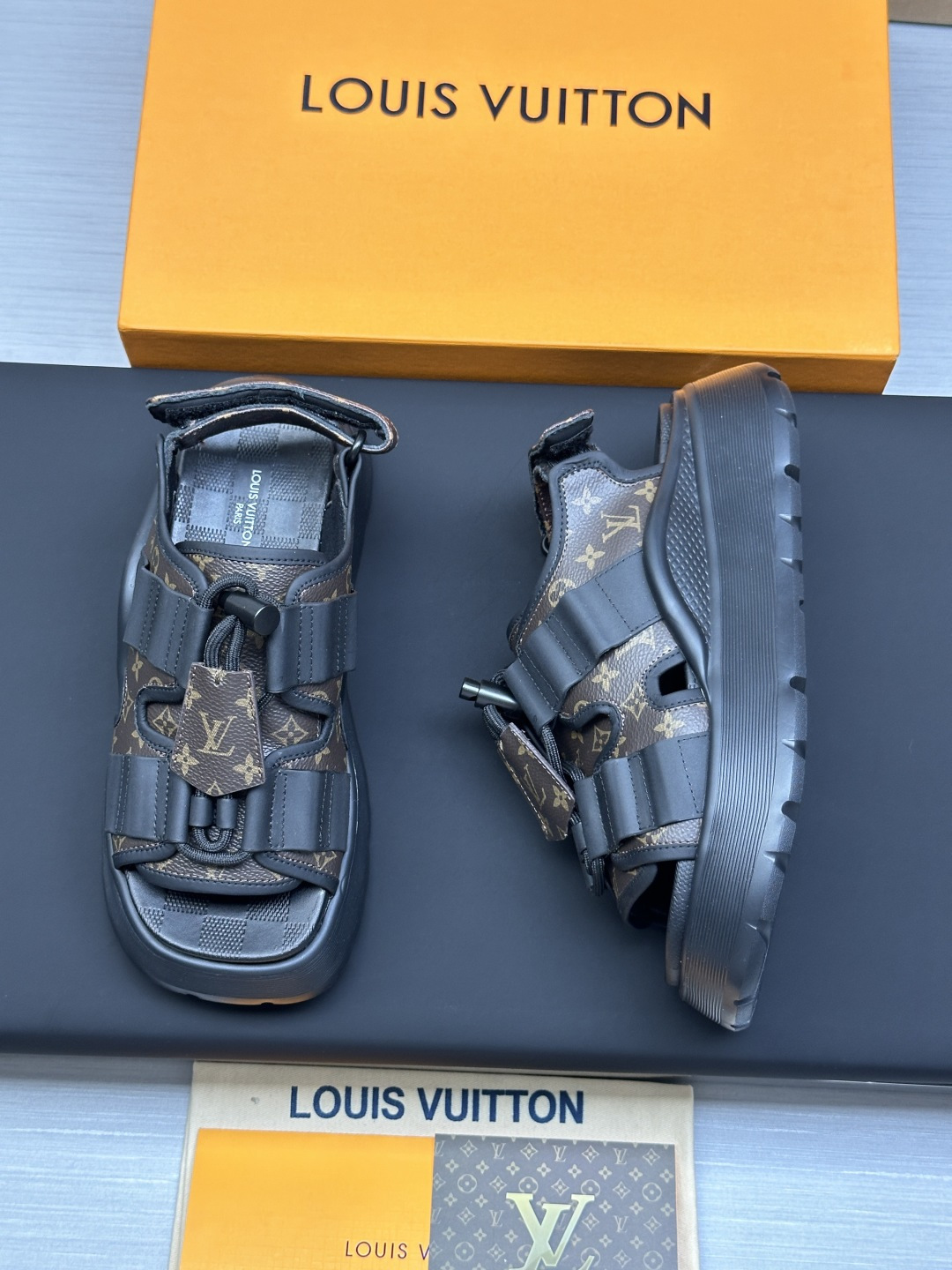 这款鞋子是AAAAA 1:1 质量 (非常棒). 使用了和原版一模一样的材料. 商标部分也保持了和路易威登/Louis Vuitton一样. 图片拍摄是实物鞋子拍摄, 您所收到的实物保证和我们图片一模一样.